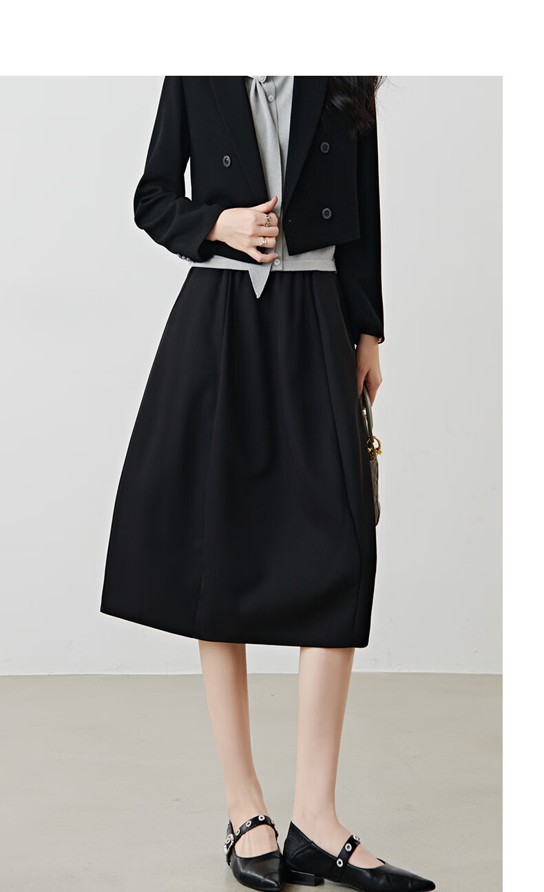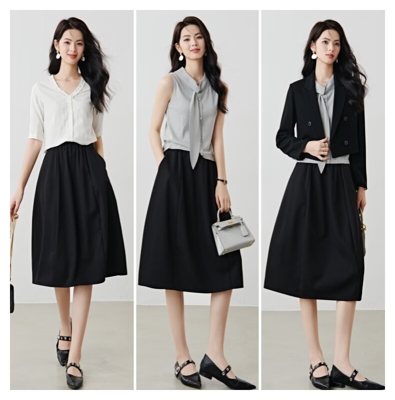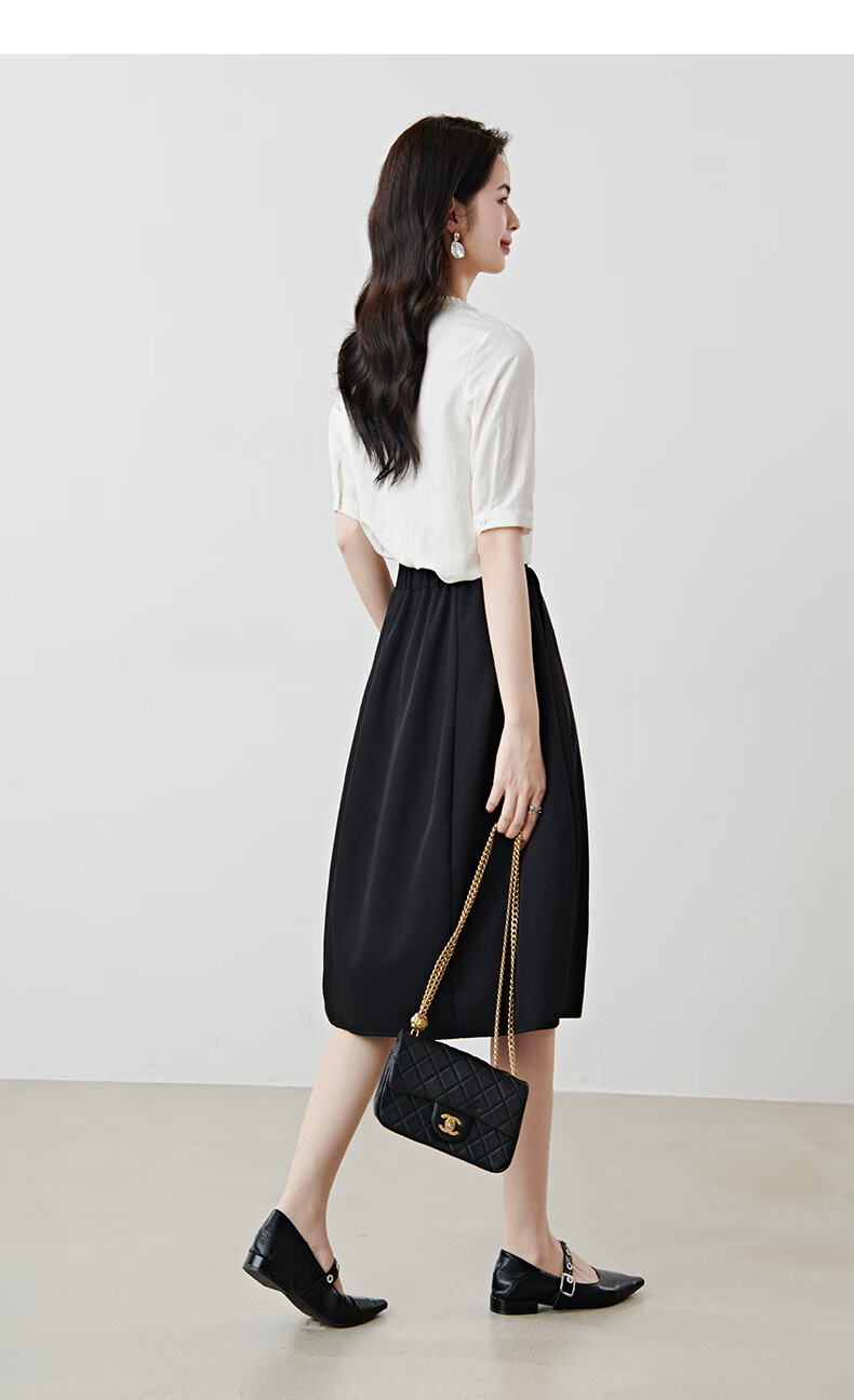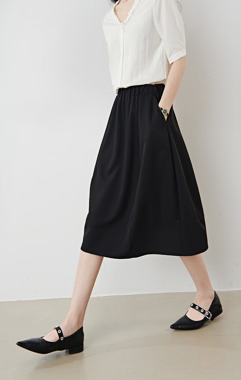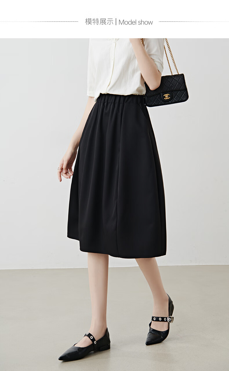 晚白【新品】2026年春款简约气质松紧腰花苞裙遮肉显瘦大摆黑色半身裙 黑色 S