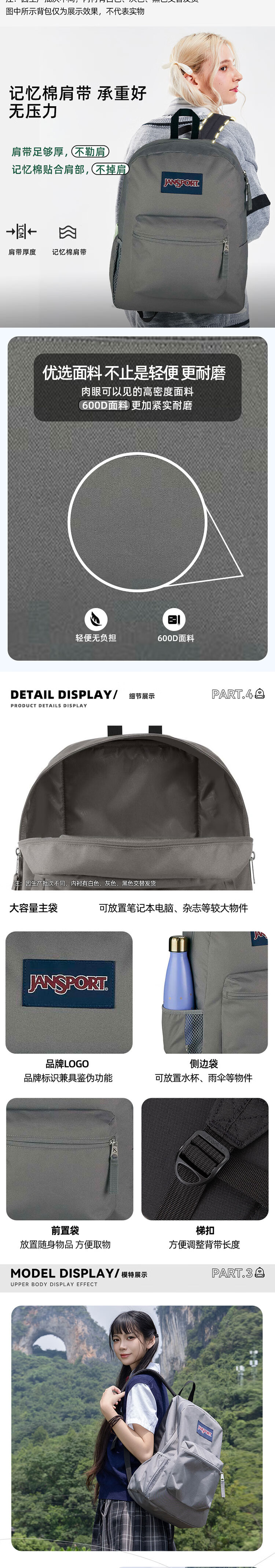 JANSPORT杰斯伯双肩包男背书包女休闲学生校园电脑包 47LW7H6 雾灰