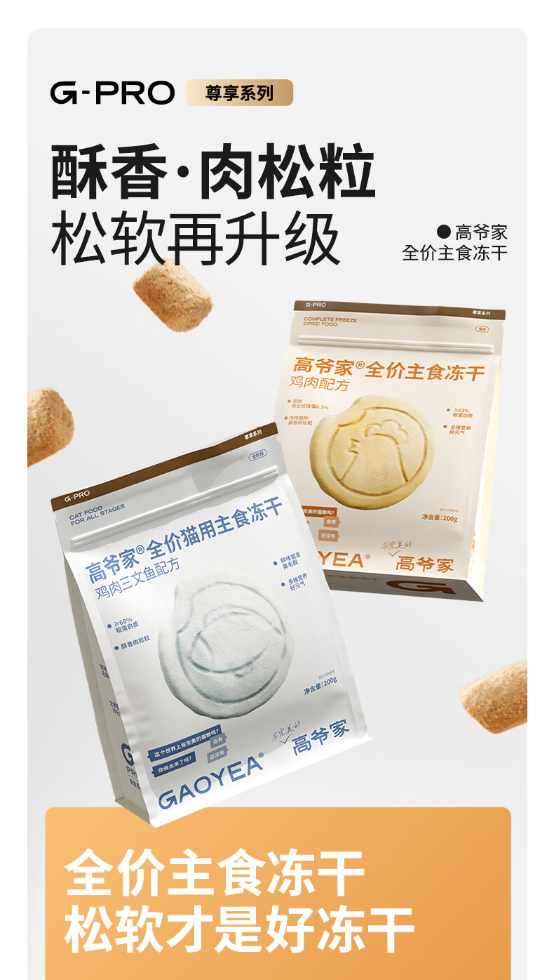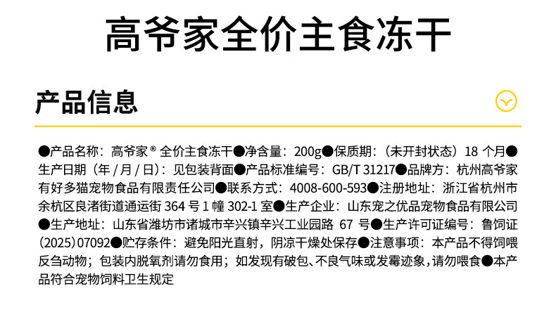 高爷家全价主食生骨肉冻干猫粮鸡肉鱼肉成猫幼猫粮营养冻干200g/袋 鸡肉每日冻干200g