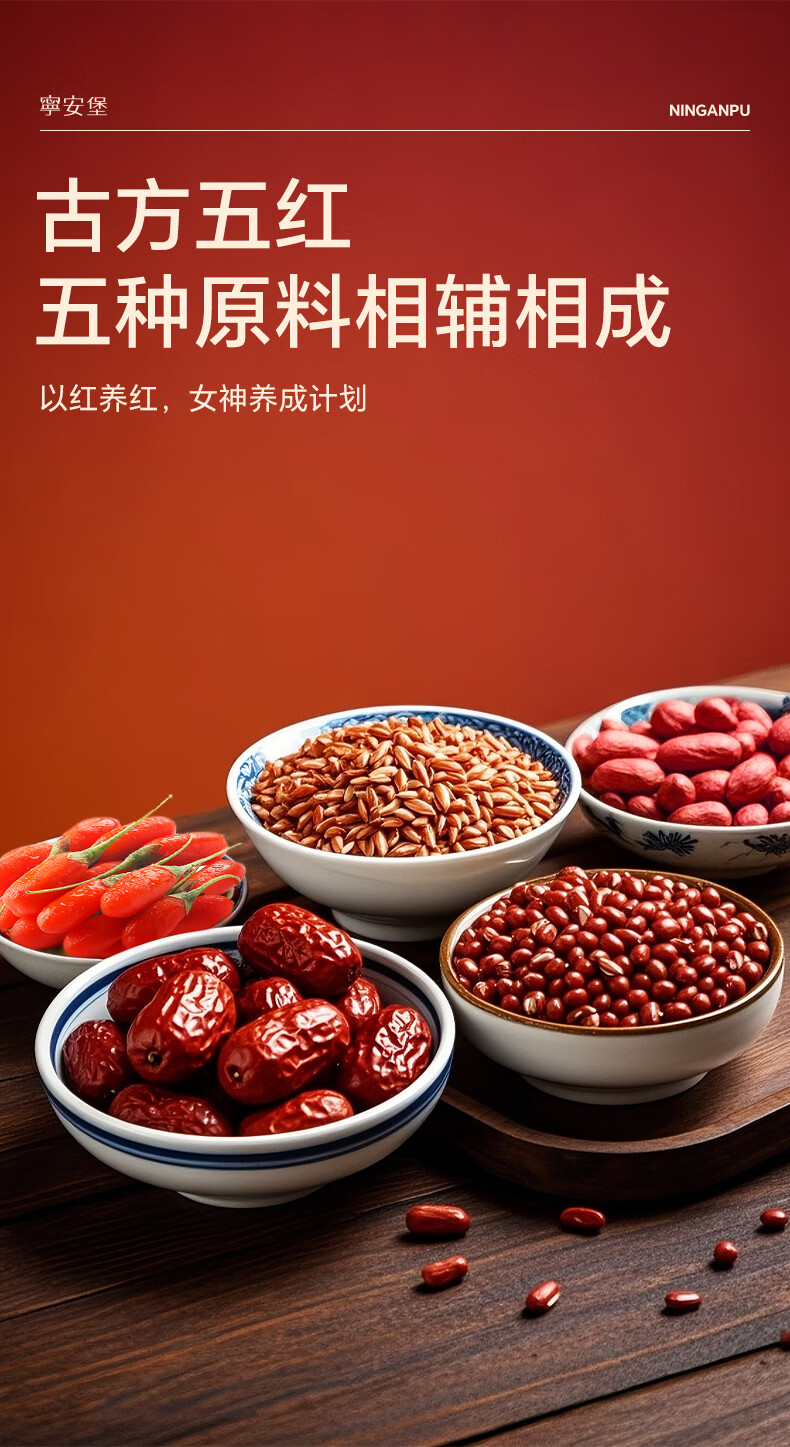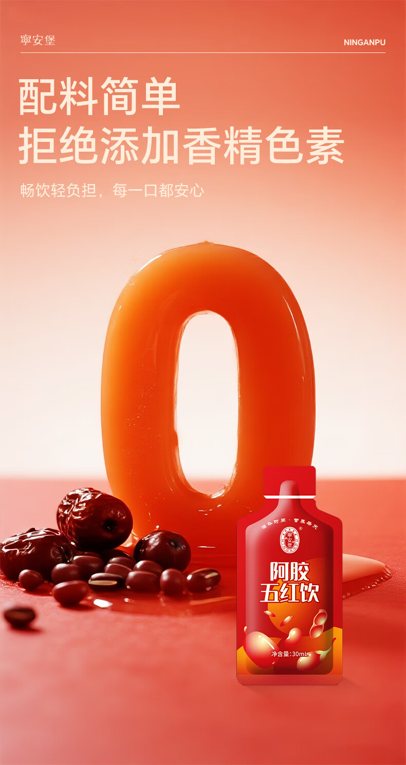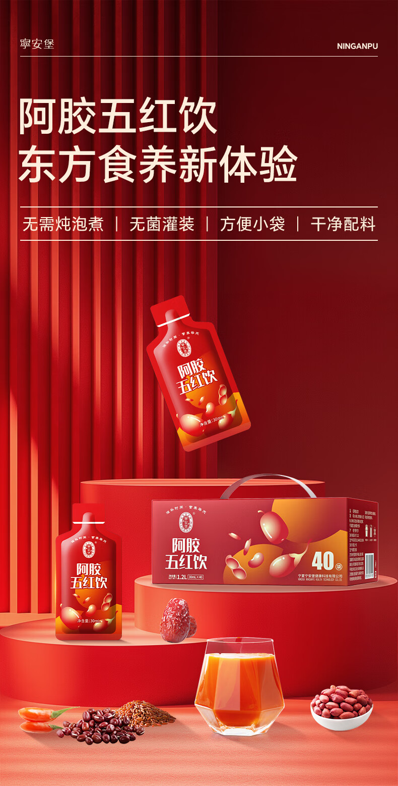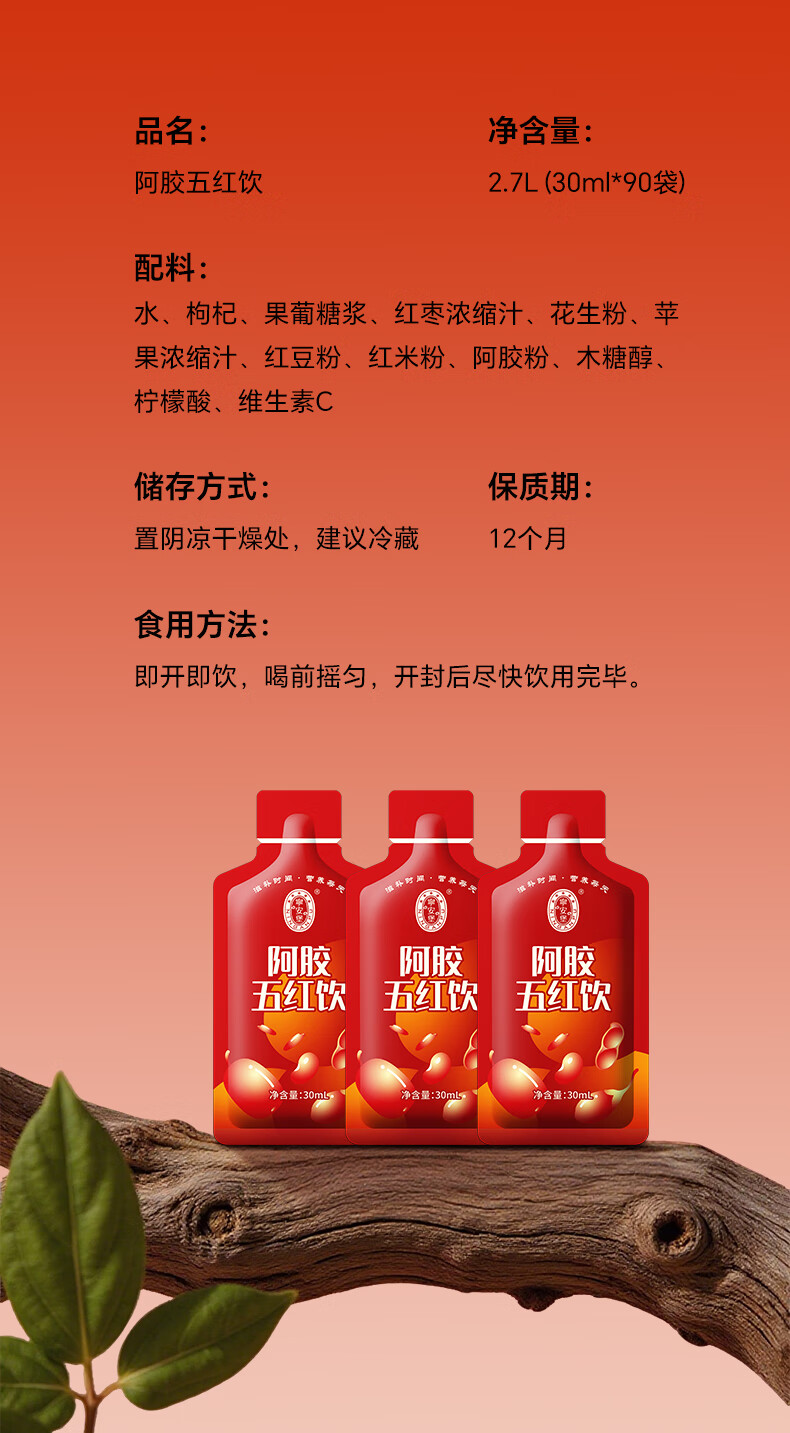 宁安堡枸杞红枣桂圆饮 元气养生茶 阿胶五红饮女神茶中秋送礼 阿胶五红饮【90袋*30ml】