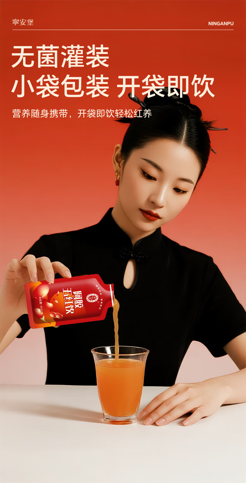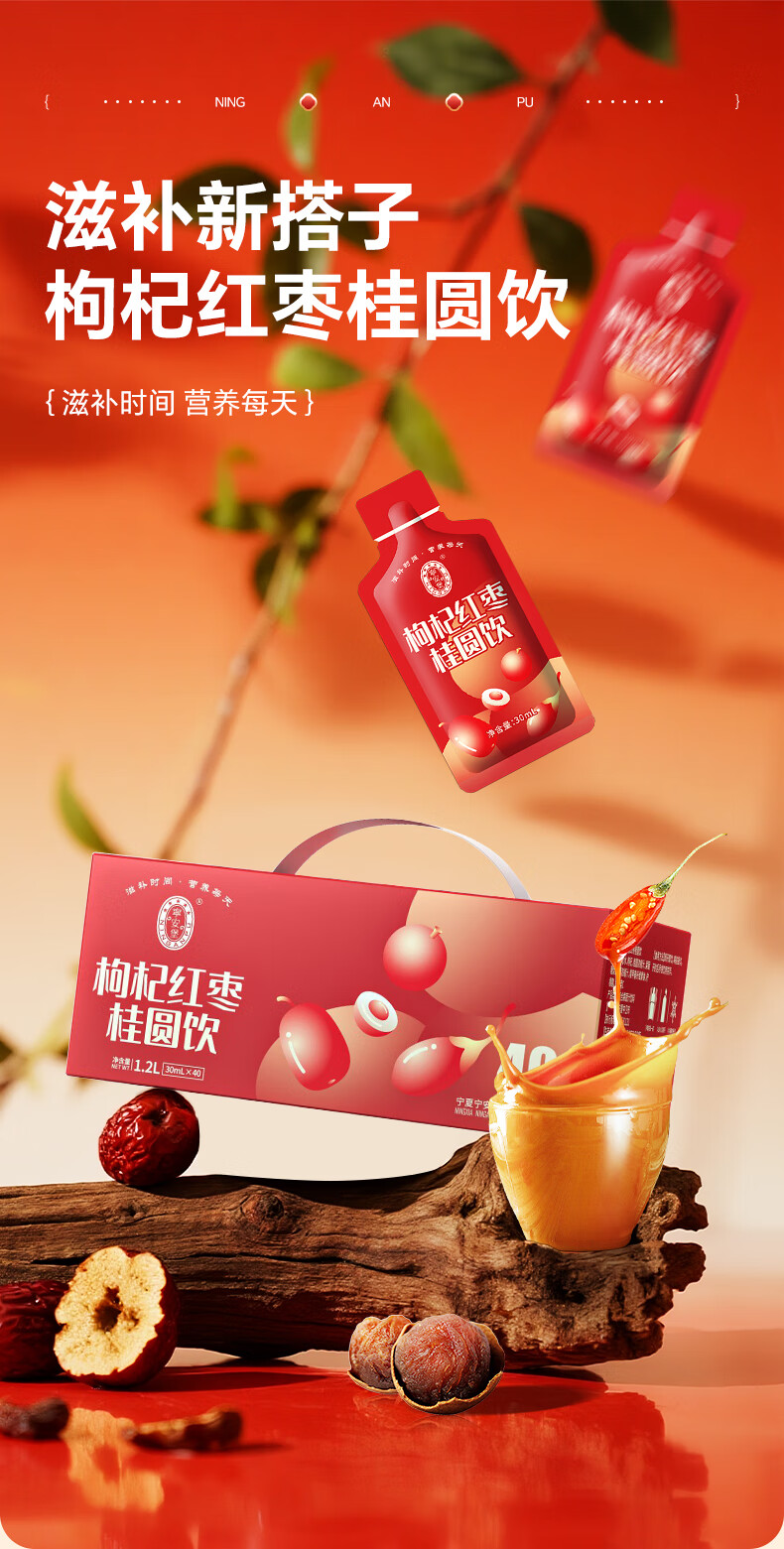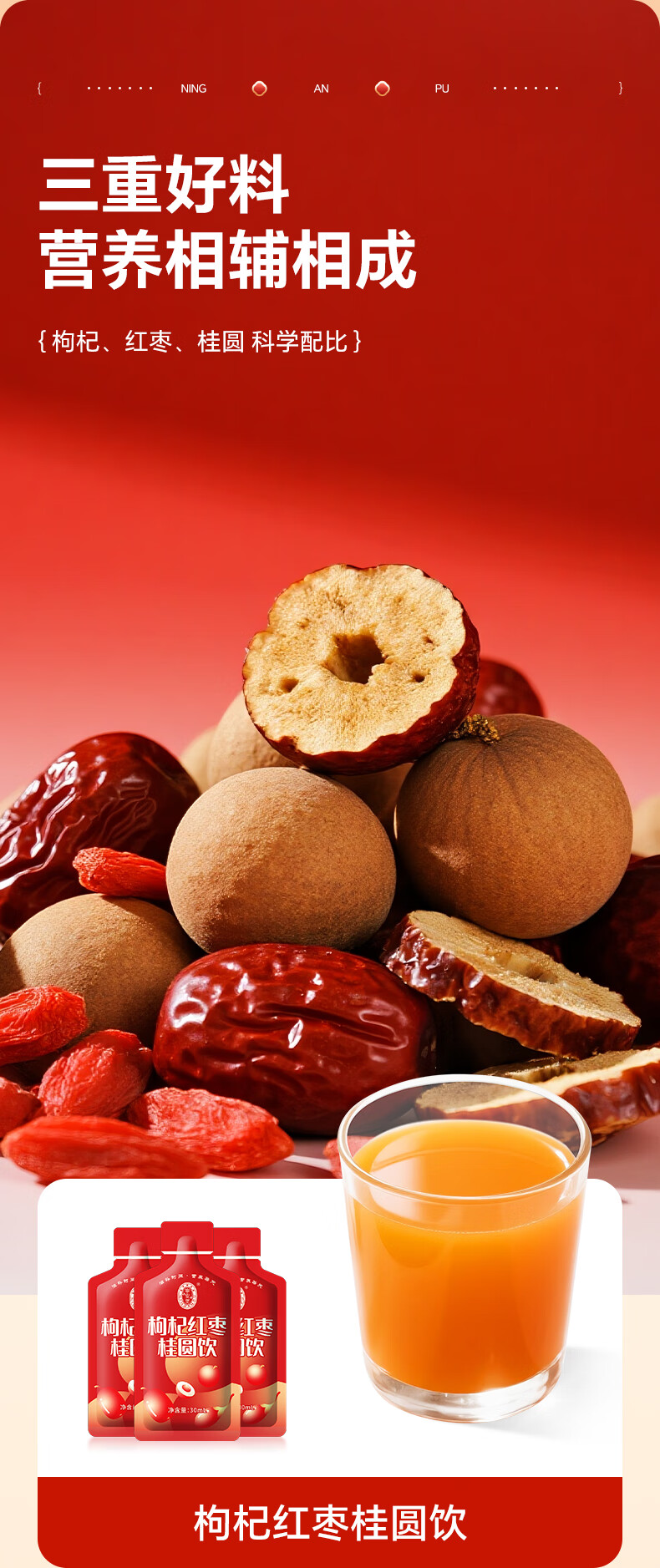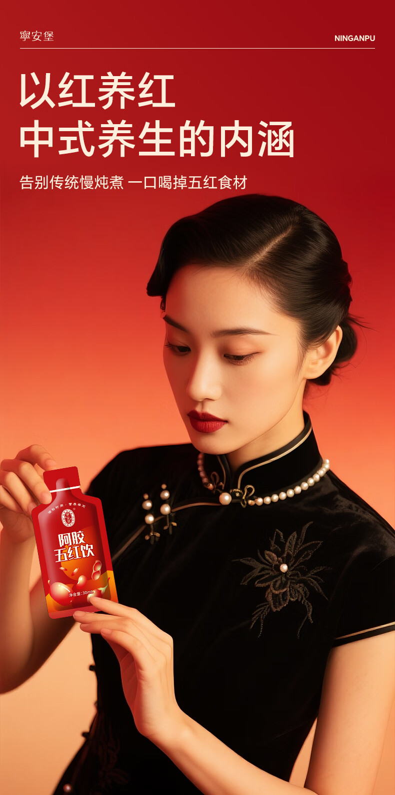 宁安堡枸杞红枣桂圆饮 元气养生茶 阿胶五红饮女神茶中秋送礼 阿胶五红饮【90袋*30ml】