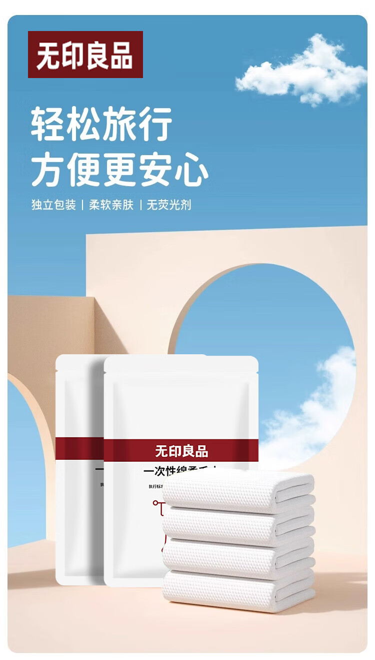 无印良品旅行压缩毛巾一次性洗脸巾旅游加厚加大洁面巾擦脸巾-7包14条装