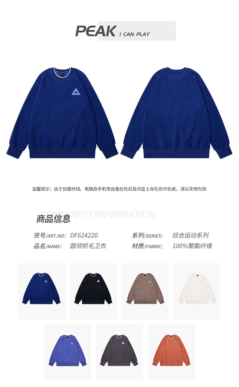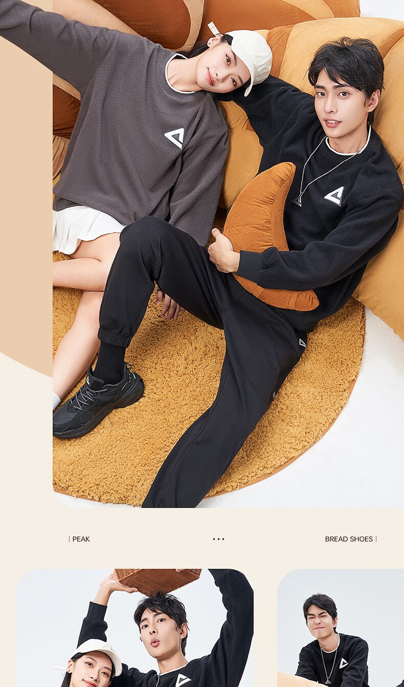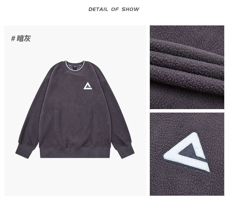 匹克(PEAK)摇粒绒卫衣男宽松舒适保暖学生百搭套头衫 暗灰 L