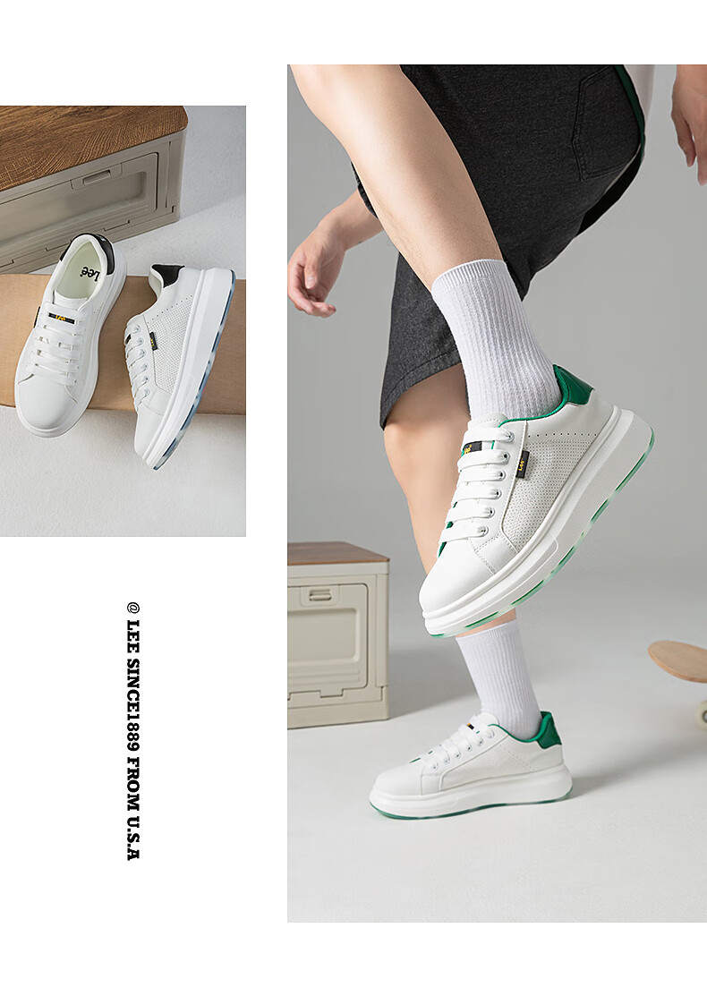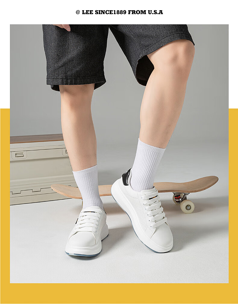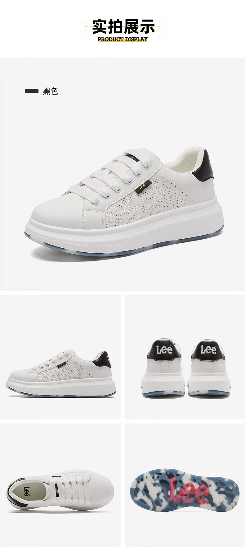 Lee男鞋2025新款休闲鞋男夏季透气小白鞋增高男士板鞋百搭白色鞋子男 黑色 42 【偏大/请拍小一码】
