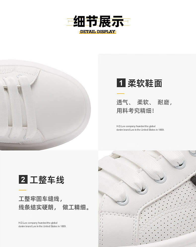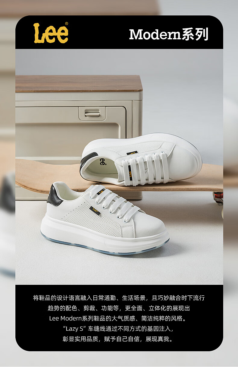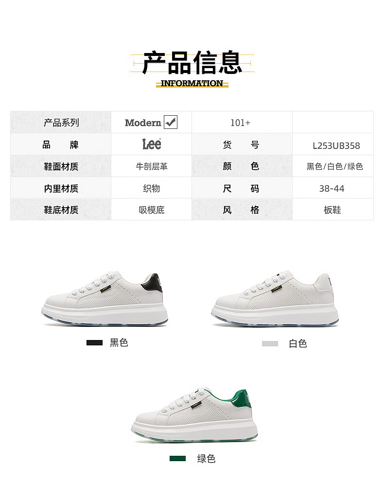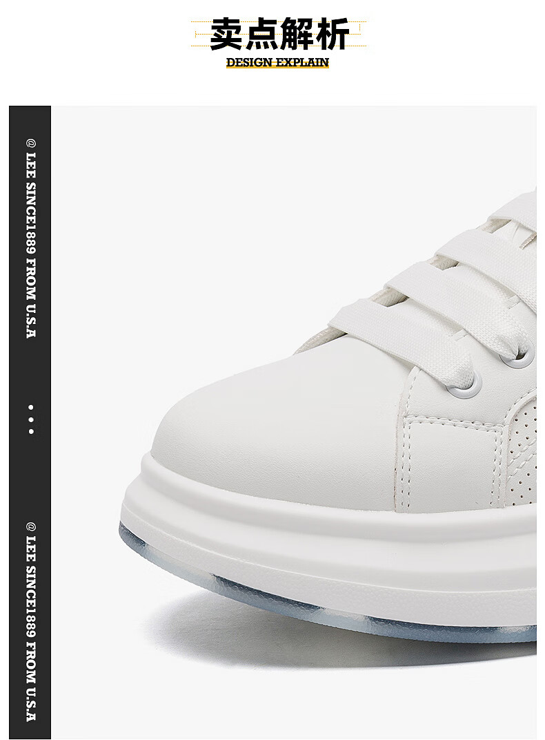 Lee男鞋2025新款休闲鞋男夏季透气小白鞋增高男士板鞋百搭白色鞋子男 黑色 42 【偏大/请拍小一码】