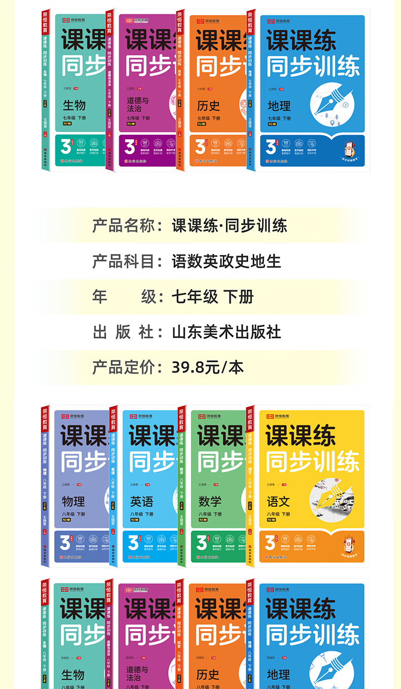 荣恒【初中课课练】七八年级下册人教版语文数学英语物理分类真题 七年级下册 【全7册】语数英政史地生