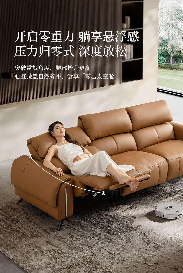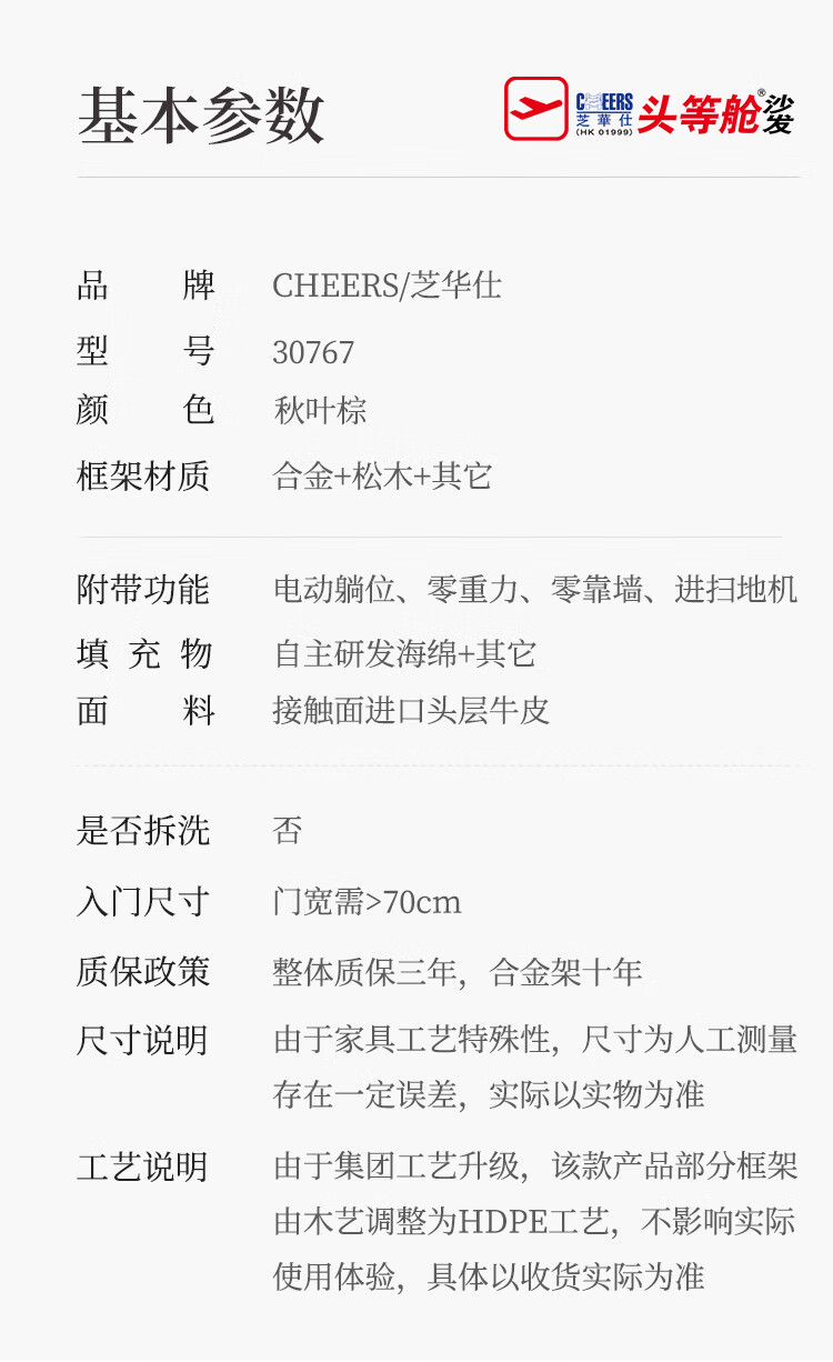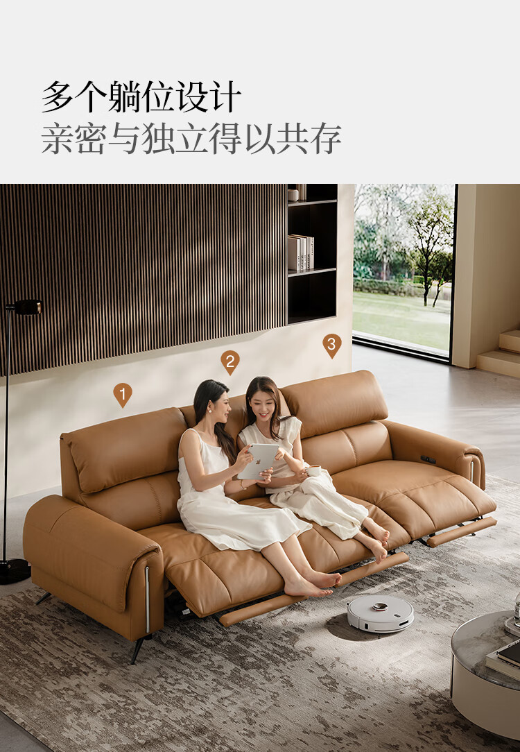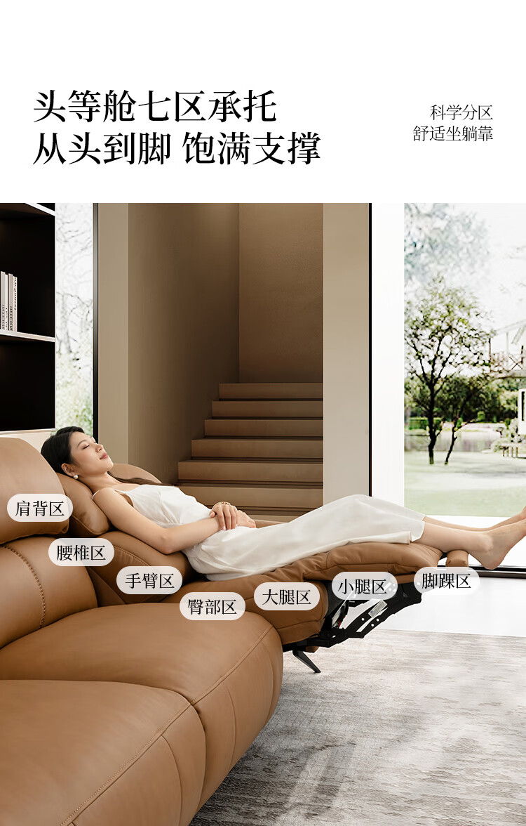 芝华仕(CHEERS)头等舱智能椅真皮沙发半青皮客厅2025新款懒人沙发白月光30767 秋叶棕-三座三电-0重力/半青皮-2.75M 延期发货(详询客服)