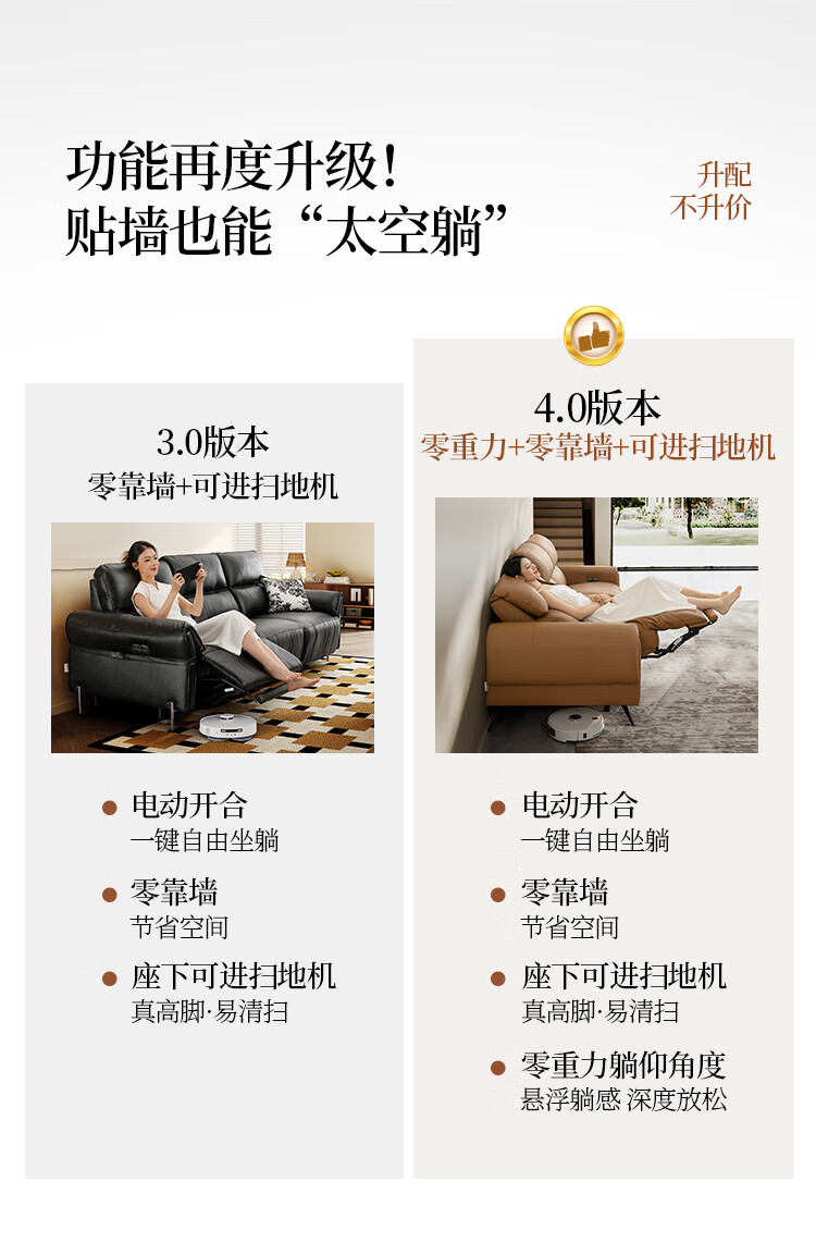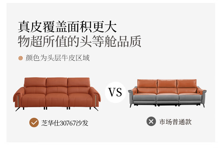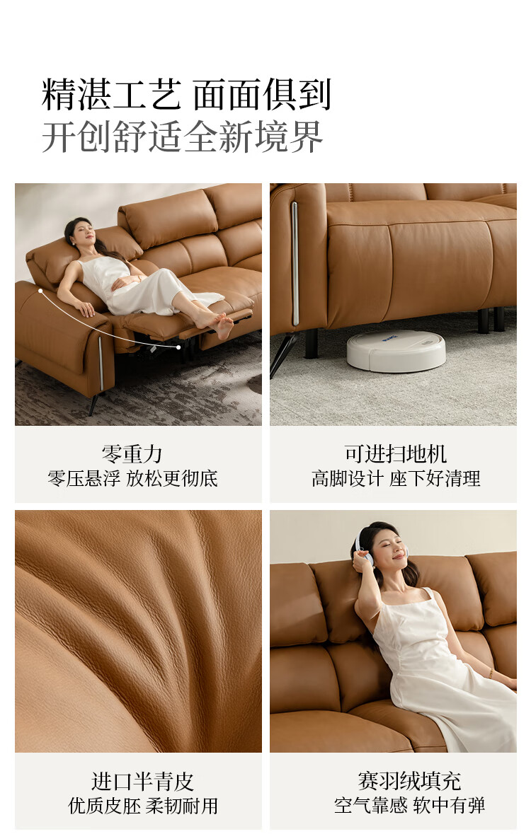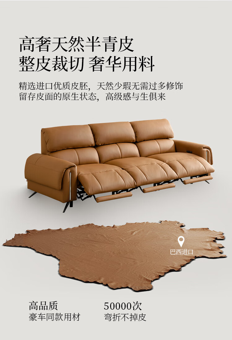 芝华仕(CHEERS)头等舱智能椅真皮沙发半青皮客厅2025新款懒人沙发白月光30767 秋叶棕-三座三电-0重力/半青皮-2.75M 延期发货(详询客服)