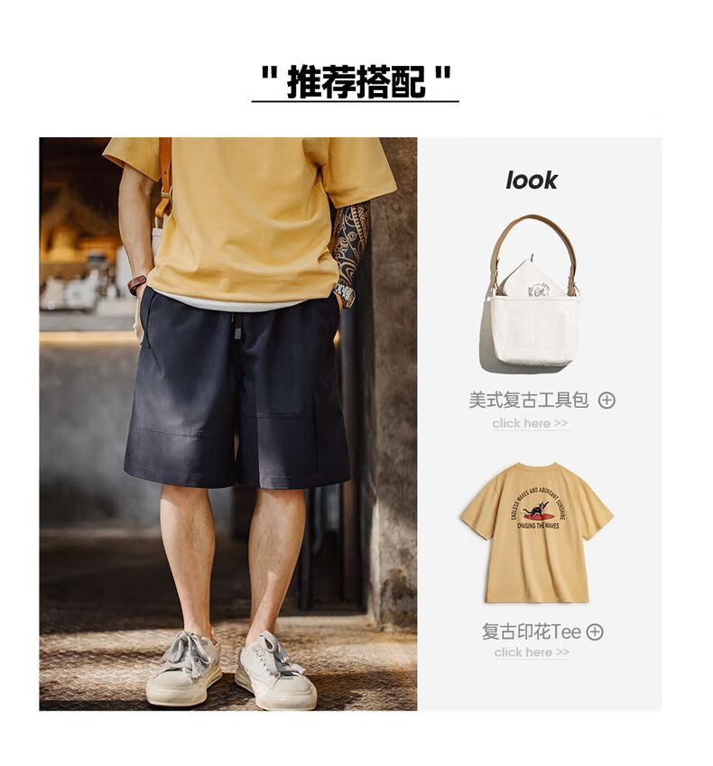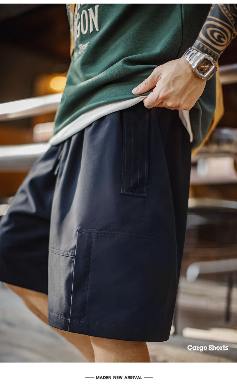 马登工装美式复古直筒短裤男夏季2025新款潮牌外穿宽松男士五分裤子 藏青色 【抗皱透气/休闲大裤衩】 XL