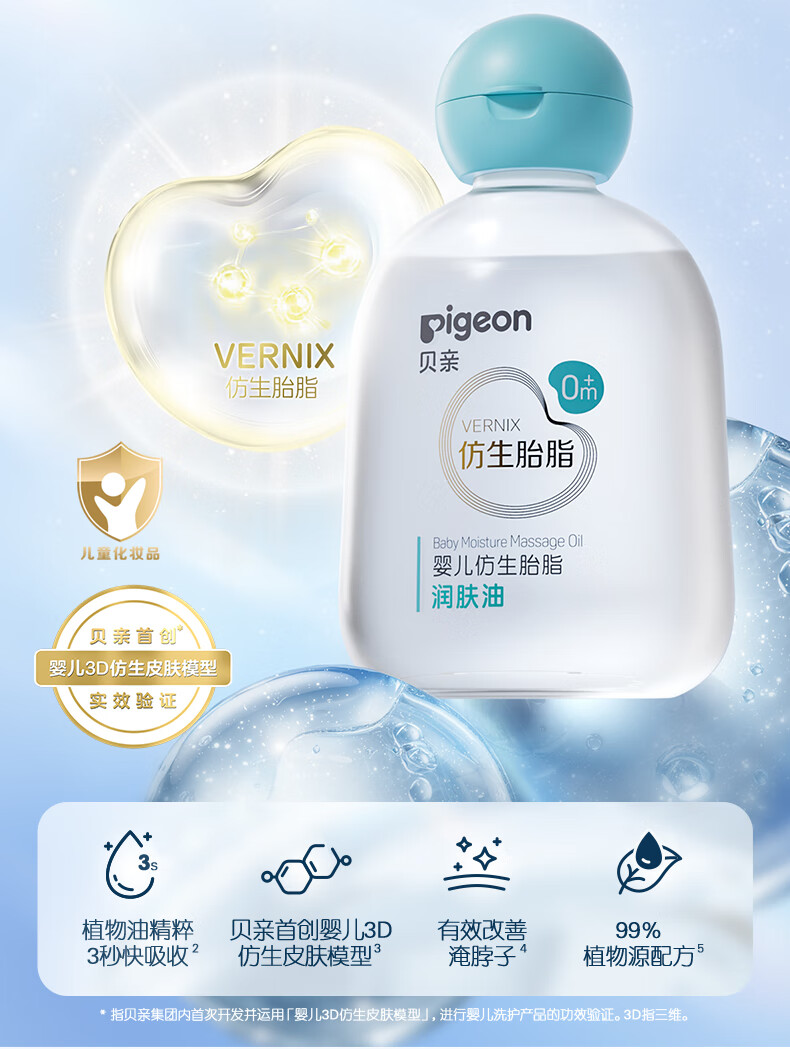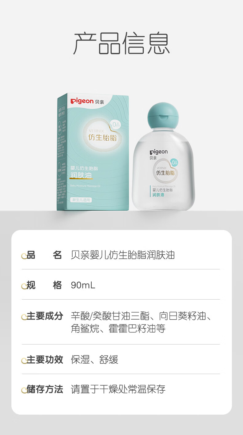 贝亲(Pigeon)婴儿抚触油 新生宝宝身体润肤油 补水保湿婴儿油 润肤油90ml