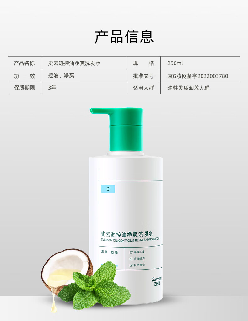史云逊(Svenson)控油净爽洗发水 蓬松强韧防断发洗发露平衡油脂男女C 250ml