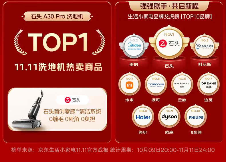 石头A30 Pro洗地机【AI全向助力 0缠毛 90℃除菌超薄躺平】自动清洗吸拖一体拖地扫地机器人