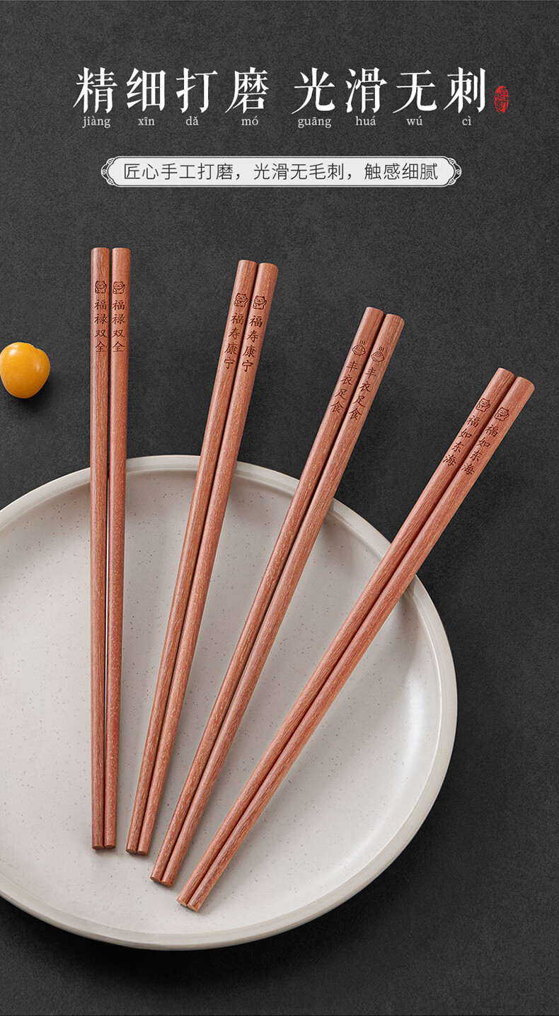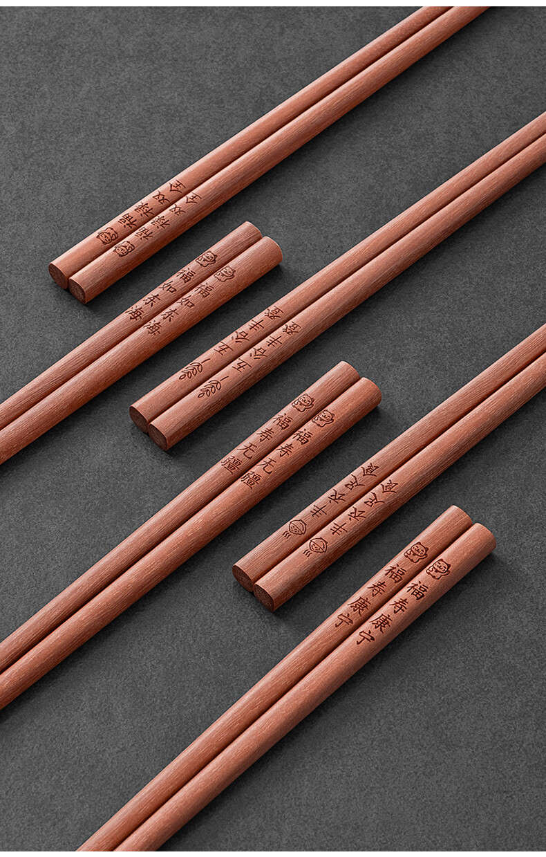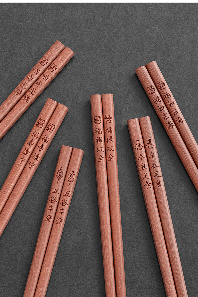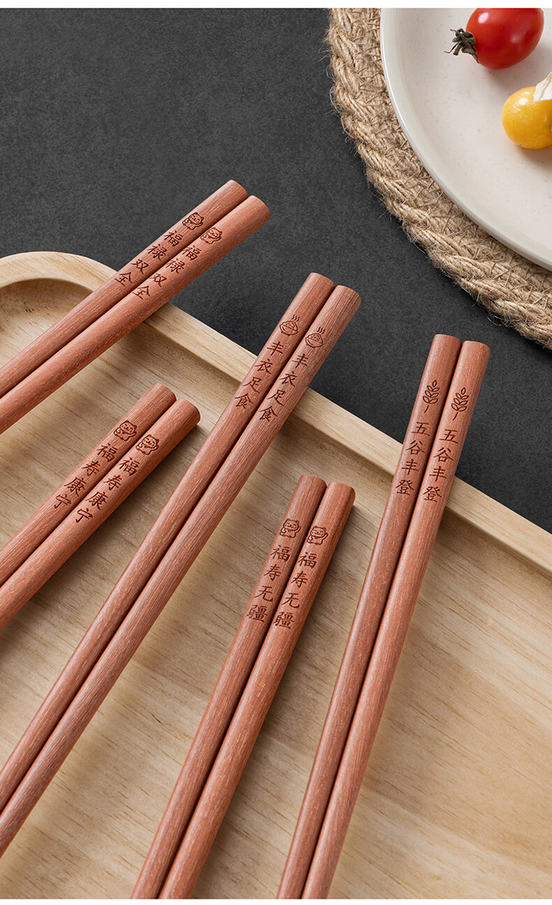 千年恋木家用高档实木质红檀木筷防滑耐高温家庭餐具无漆无蜡餐具 红木平切筷刻福禄双全【10双】