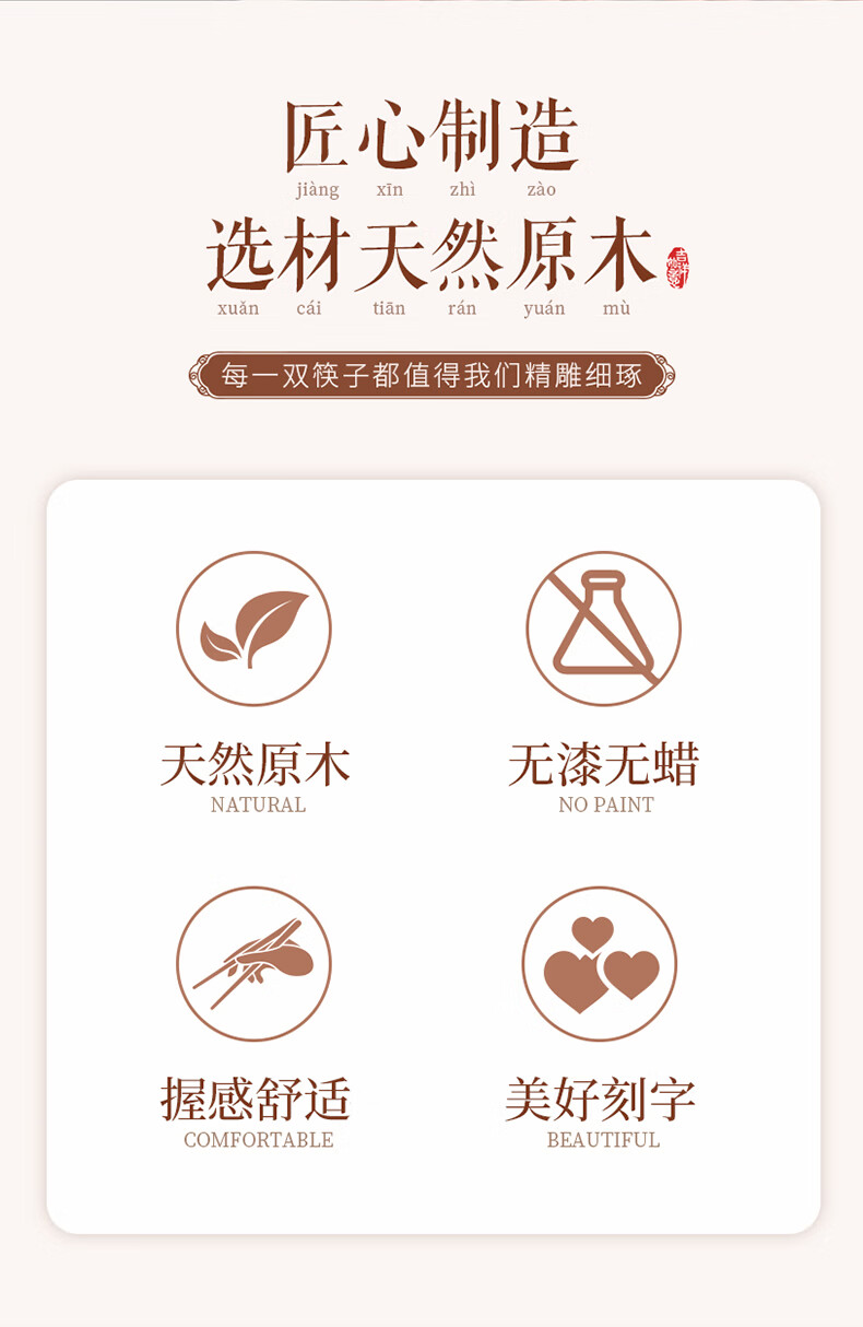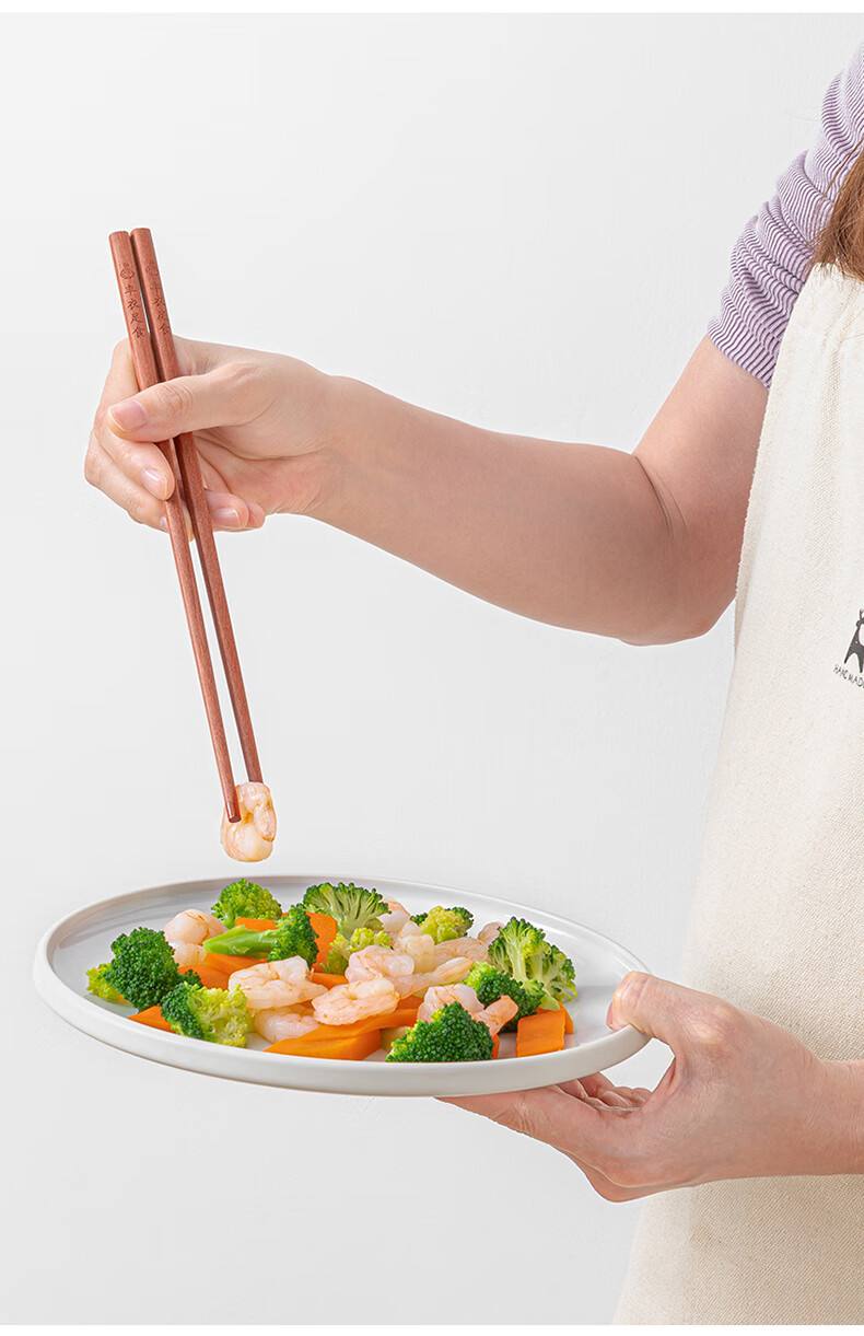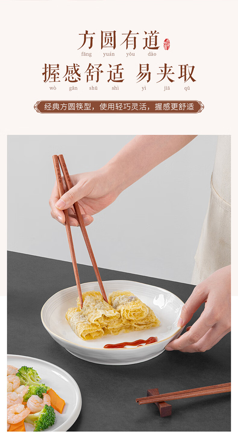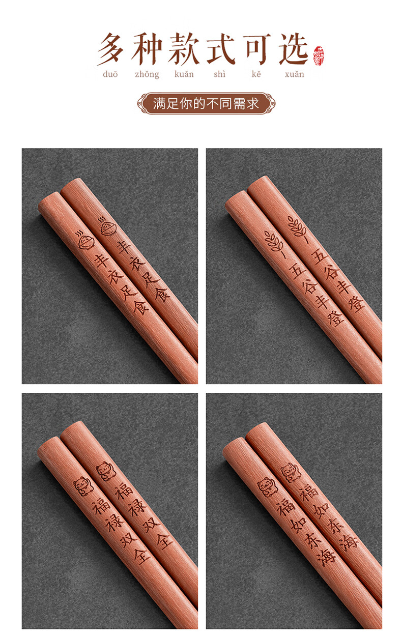 千年恋木家用高档实木质红檀木筷防滑耐高温家庭餐具无漆无蜡餐具 红木平切筷刻福禄双全【10双】