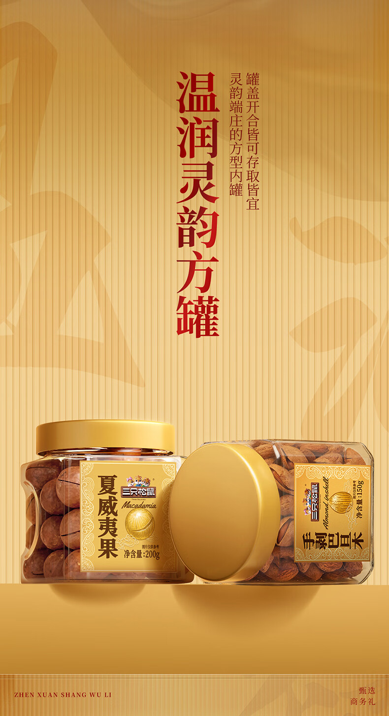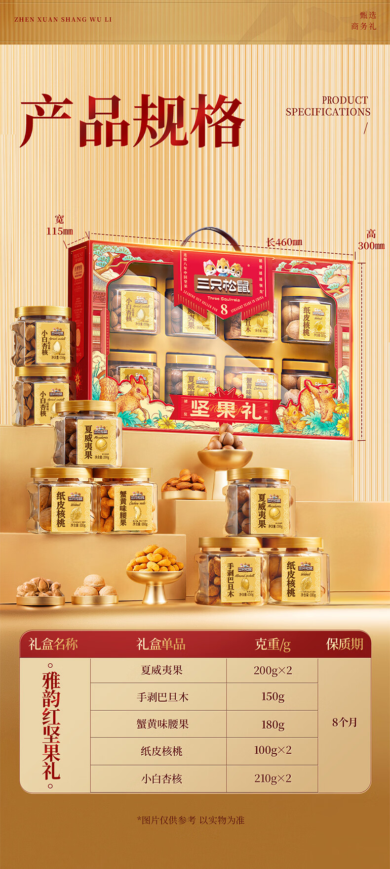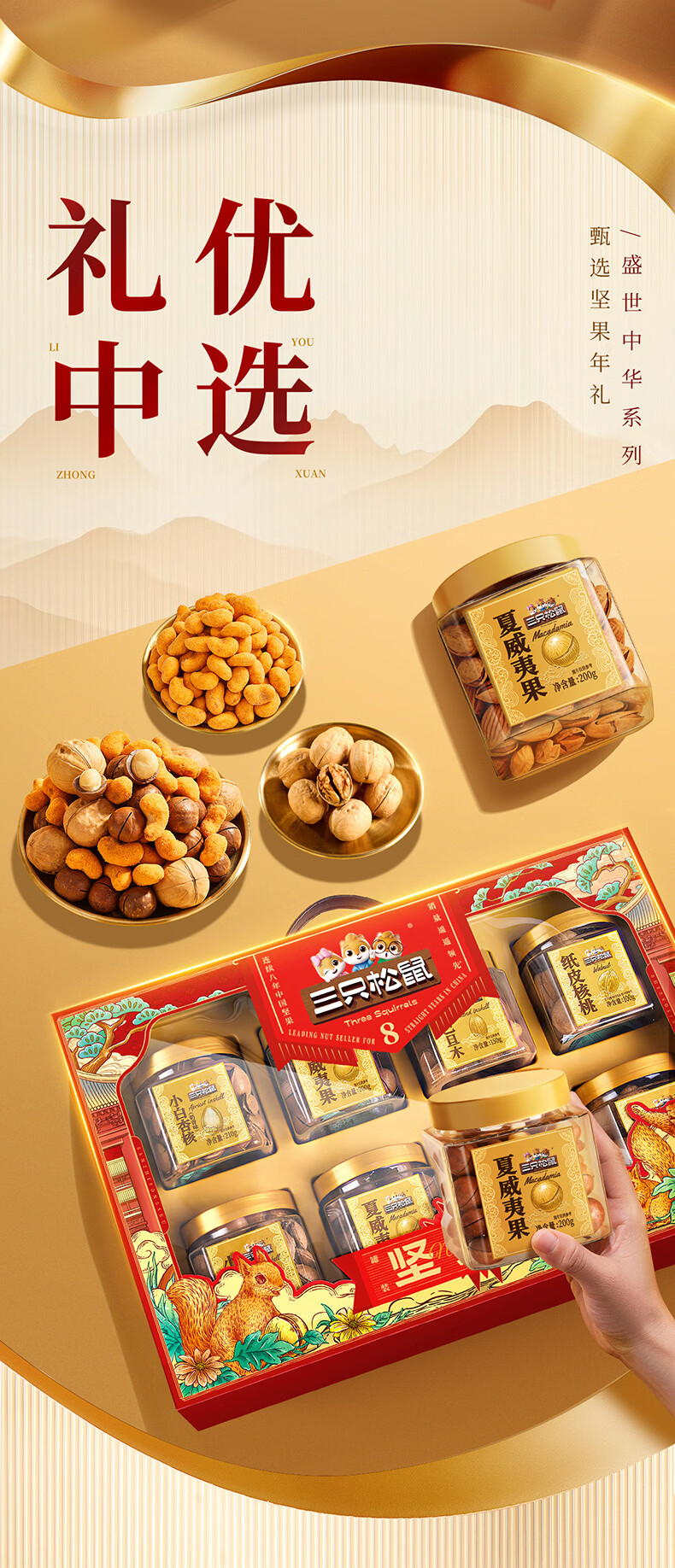 三只松鼠罐装坚果礼盒零食年货节日送礼送长辈坚果干果年货礼盒团购 【8罐坚果】雅韵红罐装坚果礼1350g