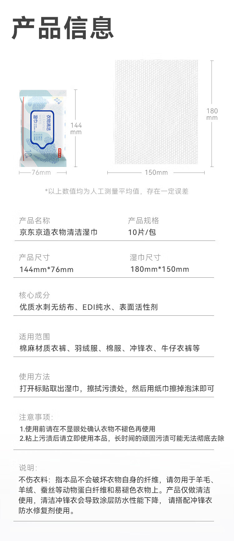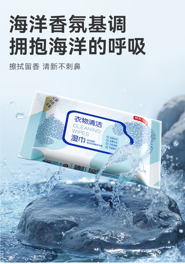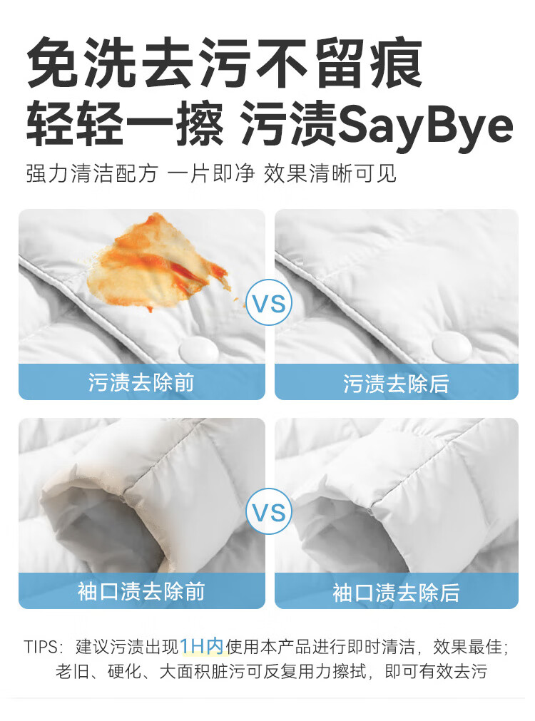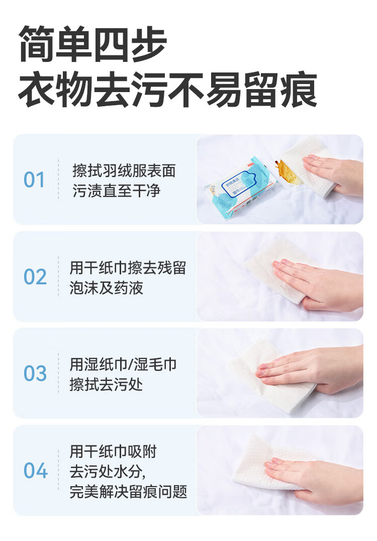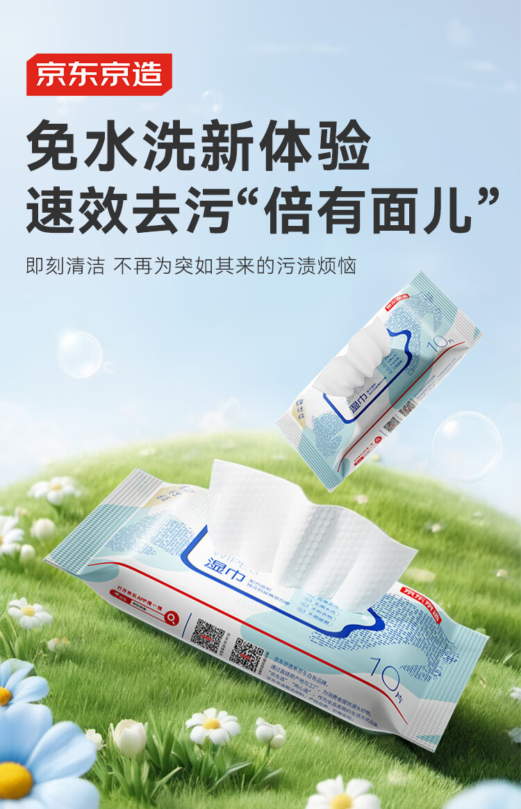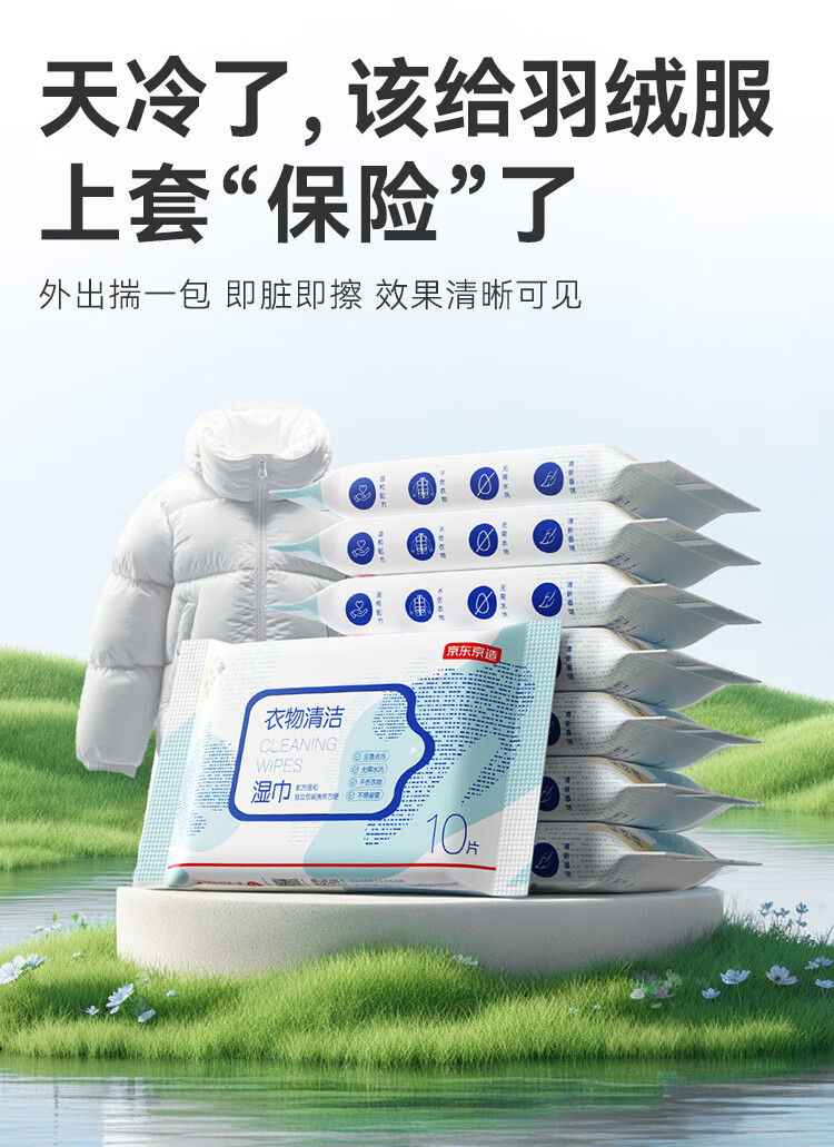京东京造擦羽绒服清洁湿巾10片*8包 去污免水洗无酒精湿纸巾干洗去渍神器