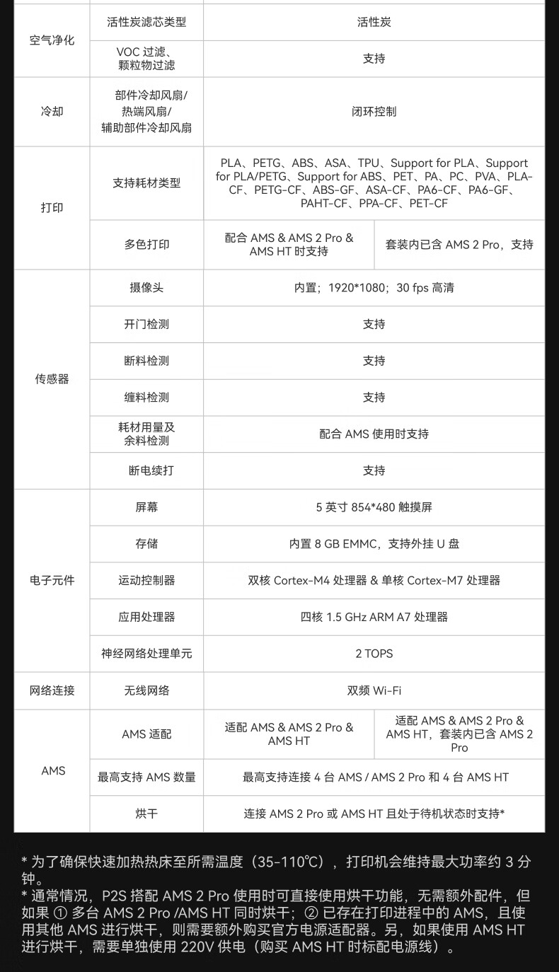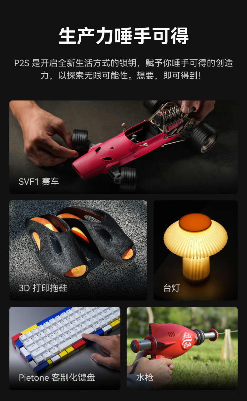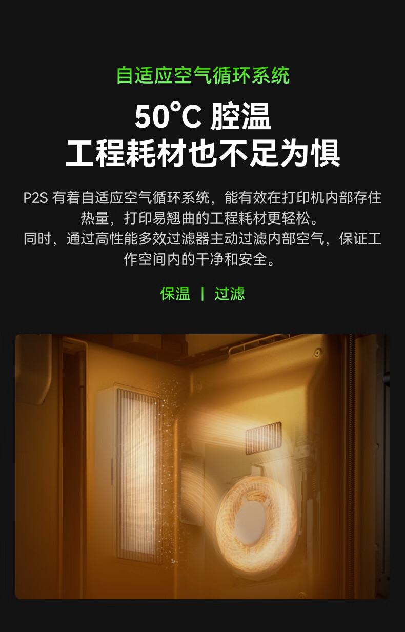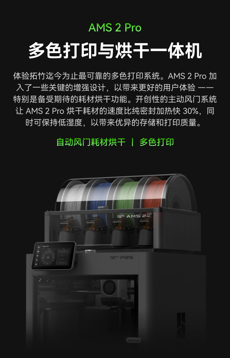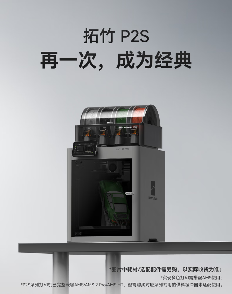 Bambu LabP2SC 3D打印机器大尺寸FDM家用桌面打印机高精度高速AI监测外吸气冷却烘干 P2S 多色套装