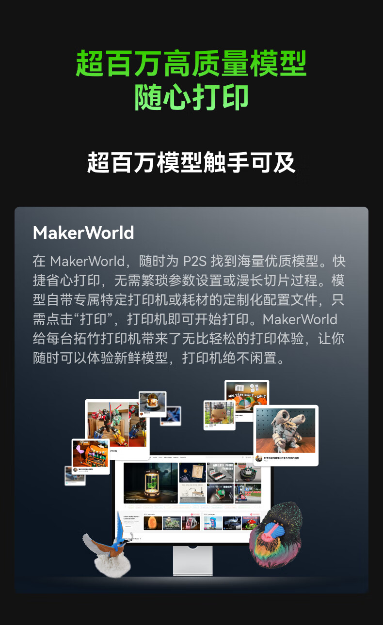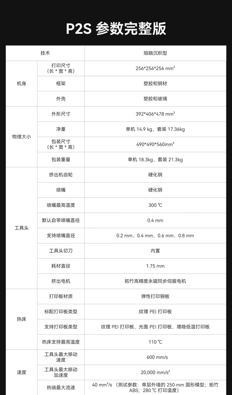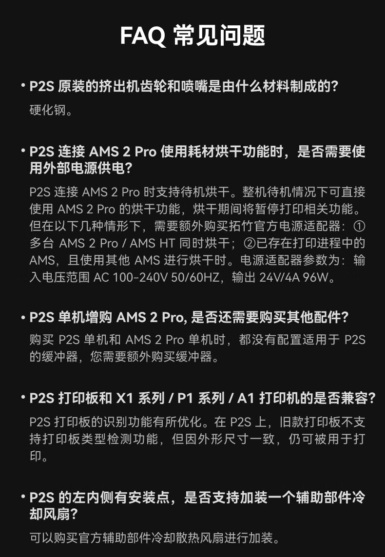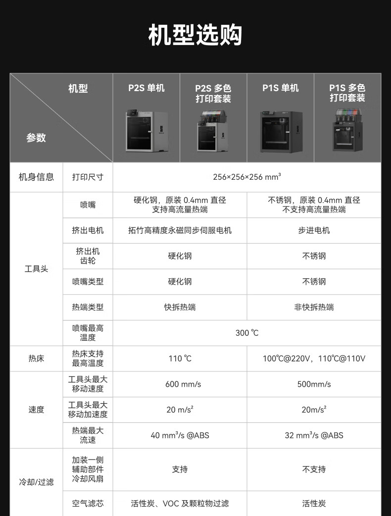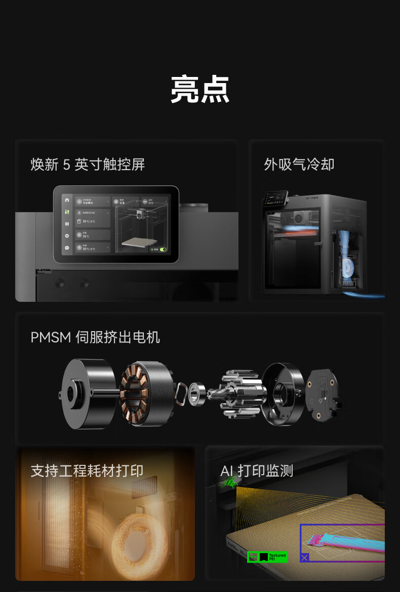 Bambu LabP2SC 3D打印机器大尺寸FDM家用桌面打印机高精度高速AI监测外吸气冷却烘干 P2S 多色套装