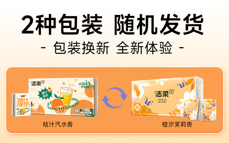 洁柔手帕纸橙夕茉莉层6片*30包纸巾小包便携 精美印花高级香 可湿水