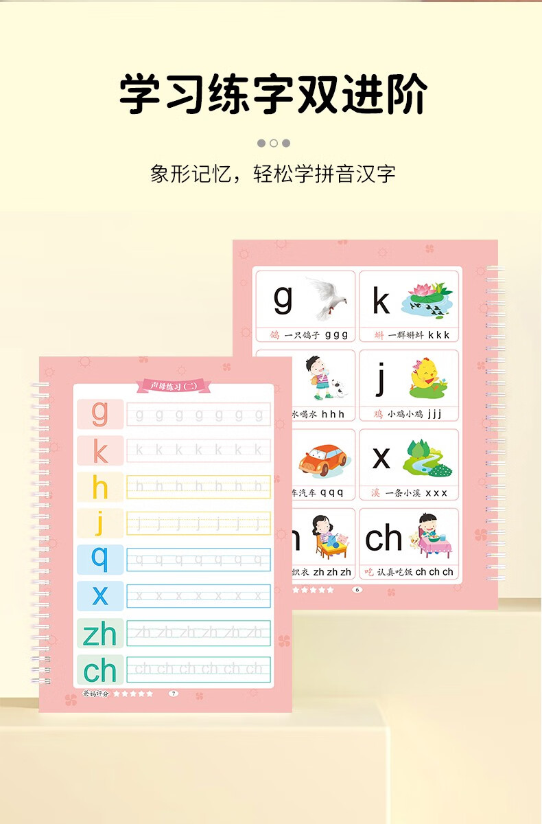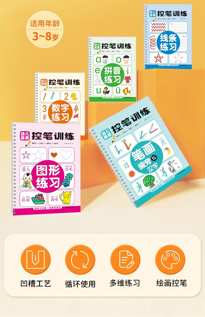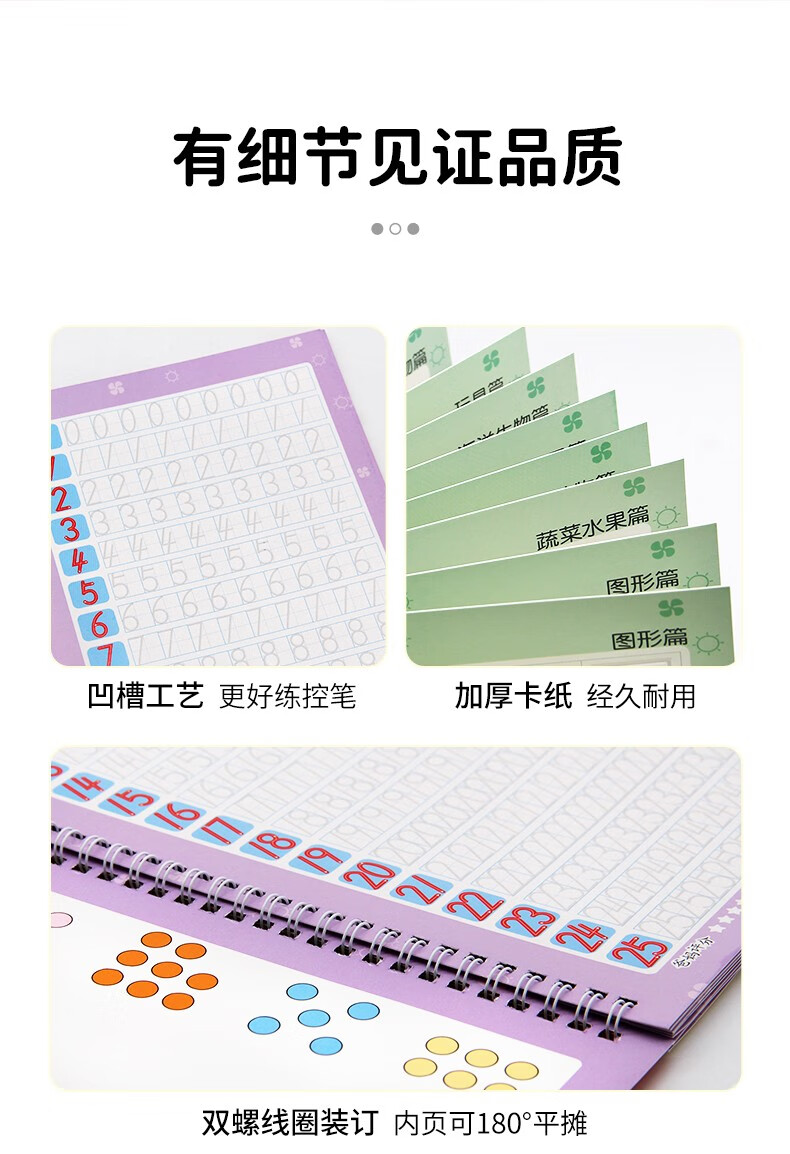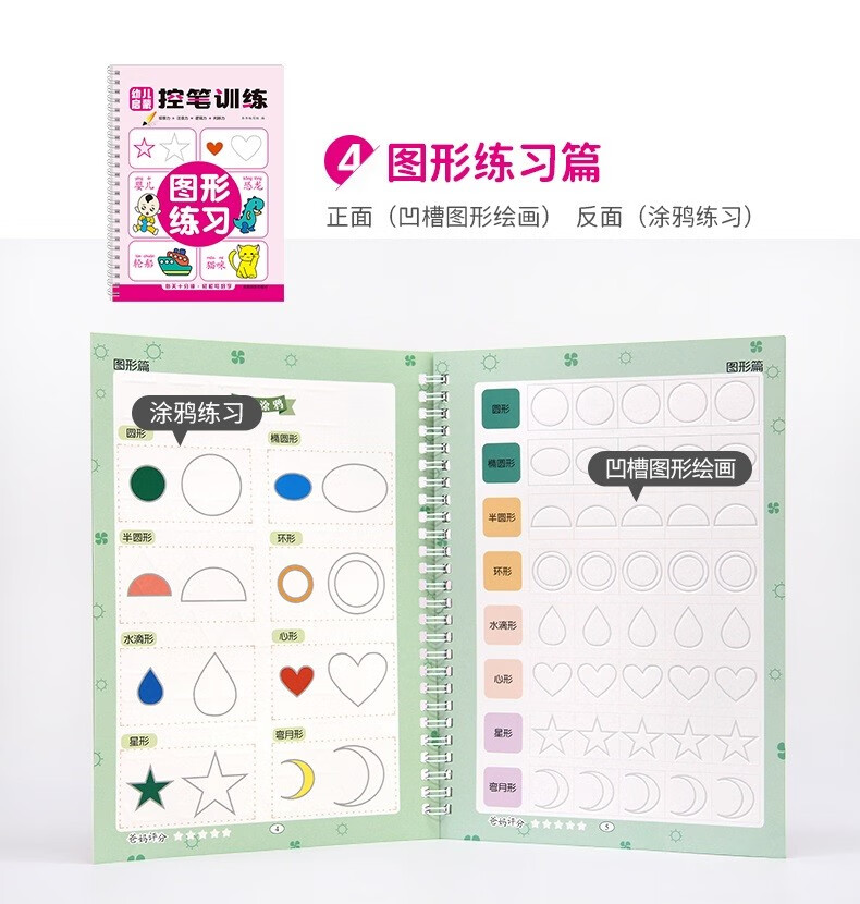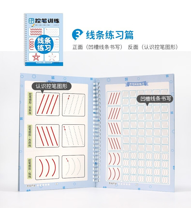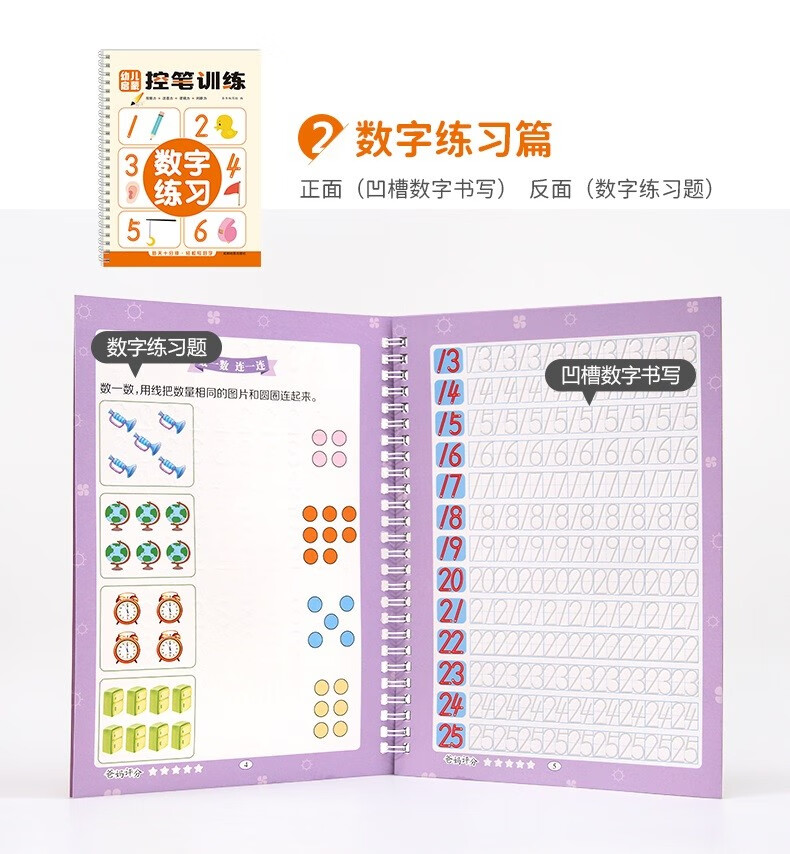 儿童凹槽练字贴幼儿园控笔训练宝宝3岁4-6幼小衔接设计孩子练字笔0基础练字根基系统幼儿练字入门数字练字帖控笔能力幼儿园练字本 【2本】笔画汉字+线条练习