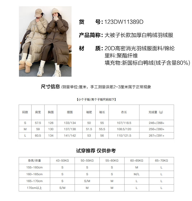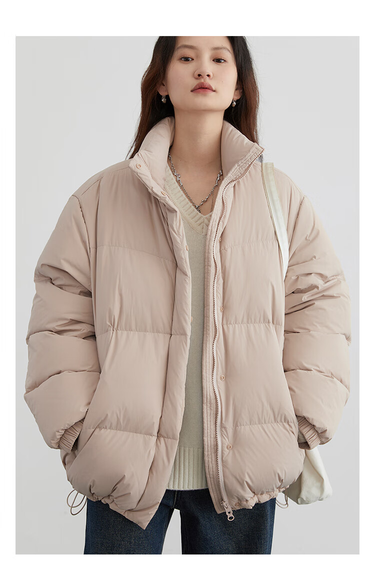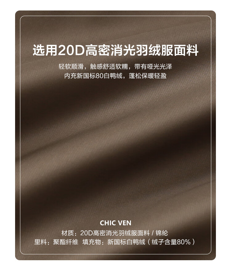 CHIC VEN 2025冬季新款80白鸭绒防风保暖连帽羽绒服外套女chicven 11389(小个子)-卡其(80白鸭绒) S 【尺码偏大,建议拍小一码】