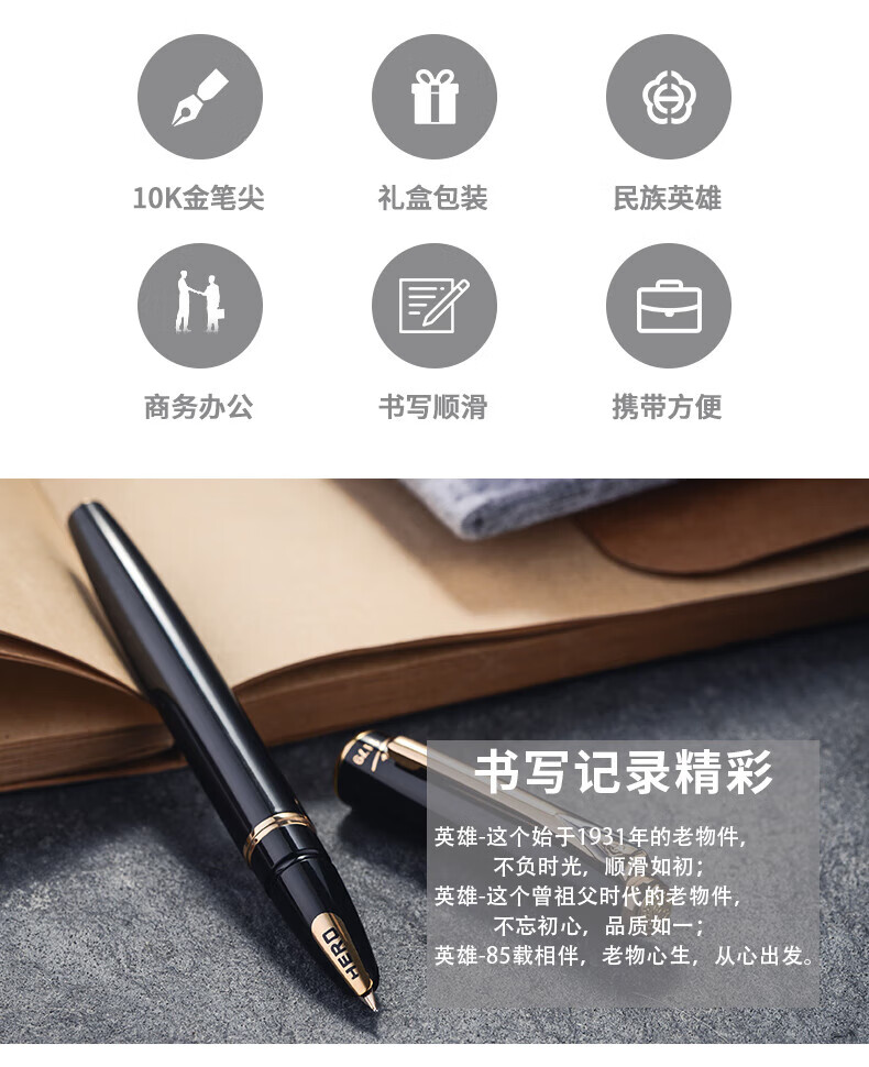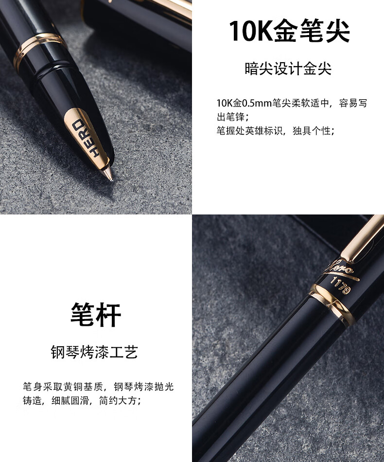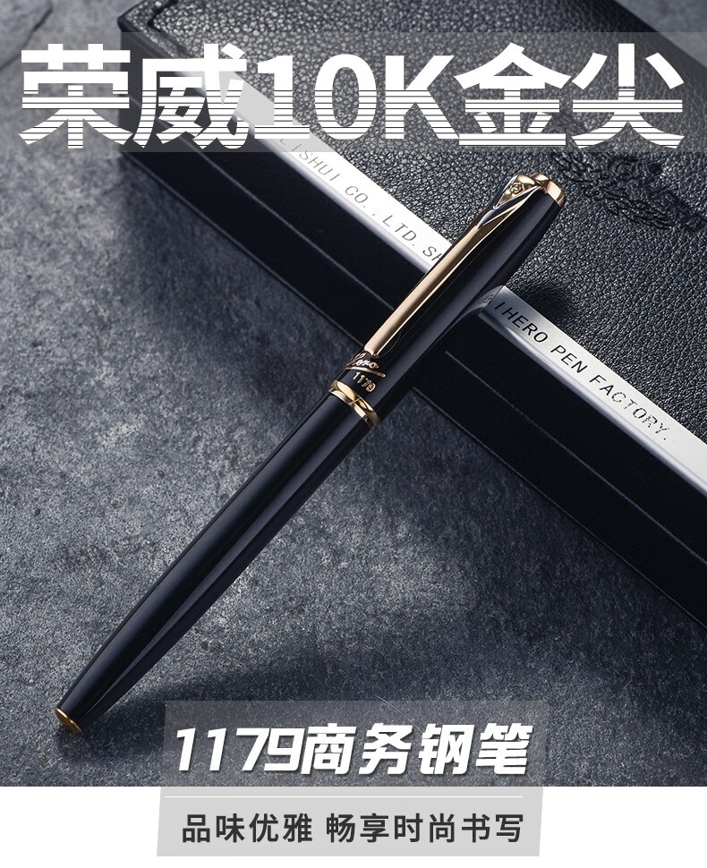 英雄(HERO)【10K金笔】钢笔1179荣威暗尖硬笔书法笔高端商务收藏级钢笔签字笔生日礼物钢笔礼盒可定制 1179荣威10K金笔