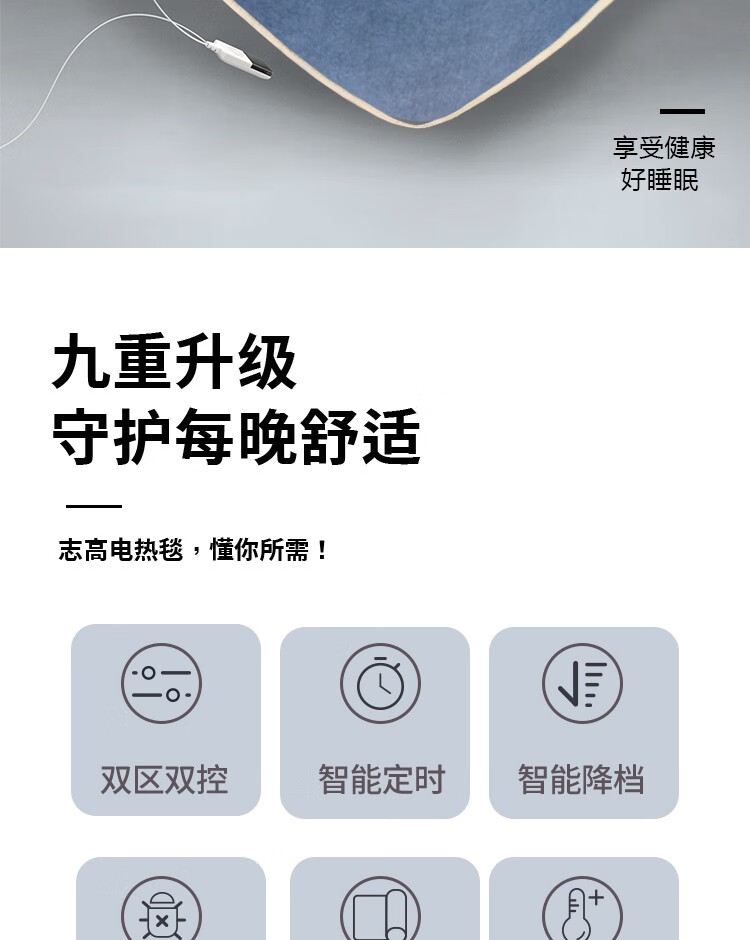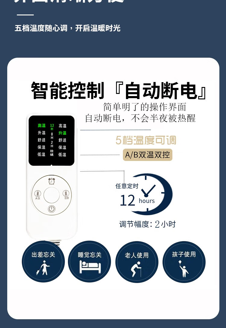 电热毯双人双控智能定时安全速热宿舍防潮除螨家用速热电褥子 高低档温-长2.0米宽1.8米