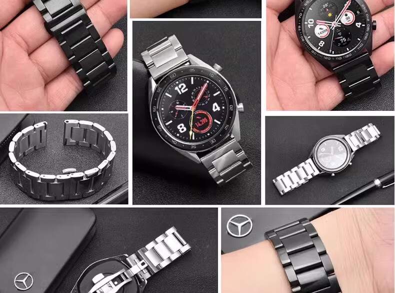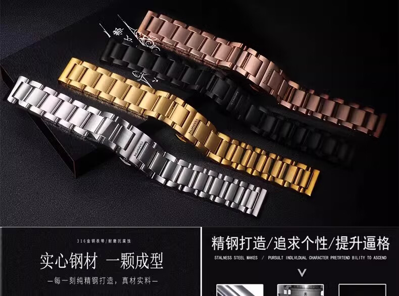 华为GT6/GT5精钢手表带GT4pro/GT3蝴蝶扣款watch3/4实心透气表链 新五铢-黑色 GT6/GT5【46表盘-22mm】新品爆款