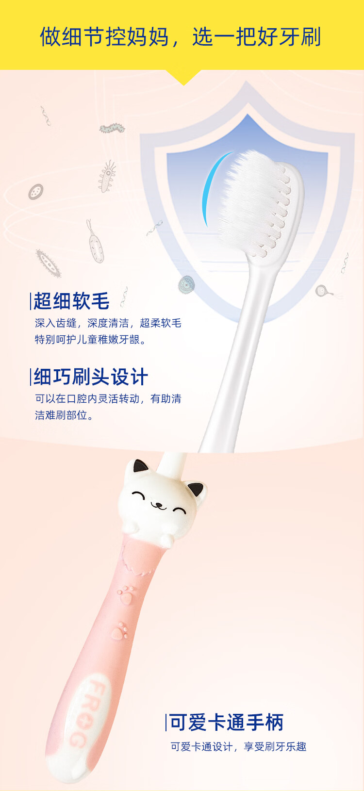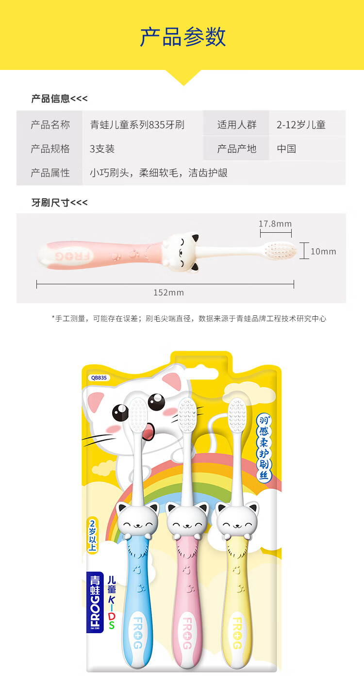 青蛙儿童万毛牙刷婴幼儿软毛超细训练牙刷 【2-6岁】柔软软毛儿童牙刷6支