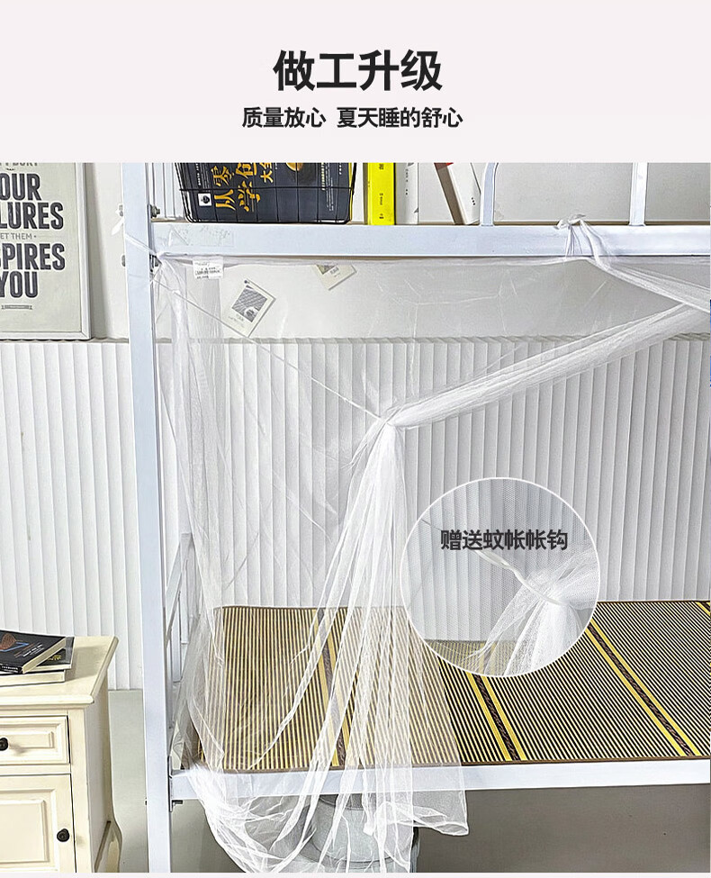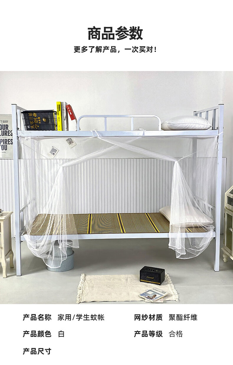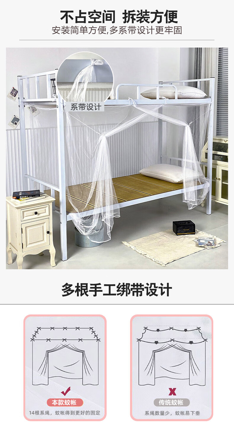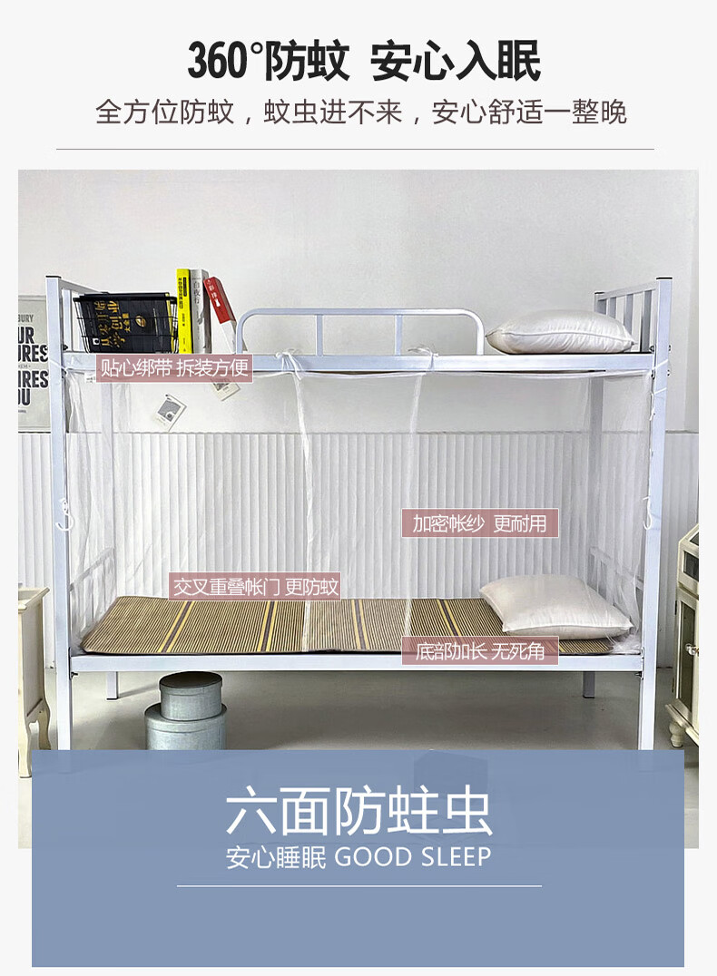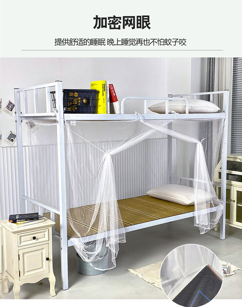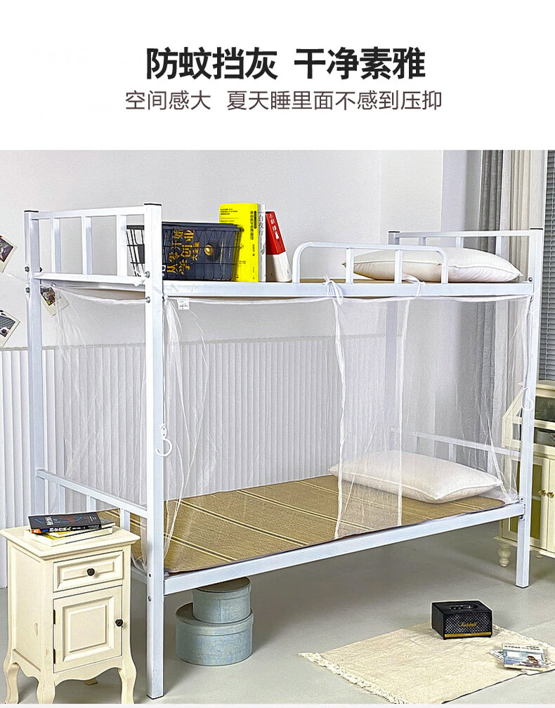 寝生活学生宿舍蚊帐 老式单开门复古蚊帐【加密网眼 上下铺】 白色 0.9m*2m*1.5m 【0.9米床适用】