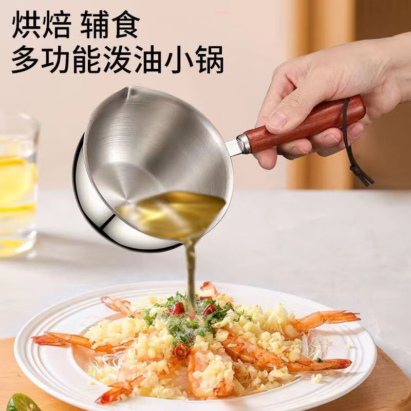 多功能热油小锅不锈钢迷你烧油浇油锅炝油淋油专用小勺泼油锅 410材质 120ml