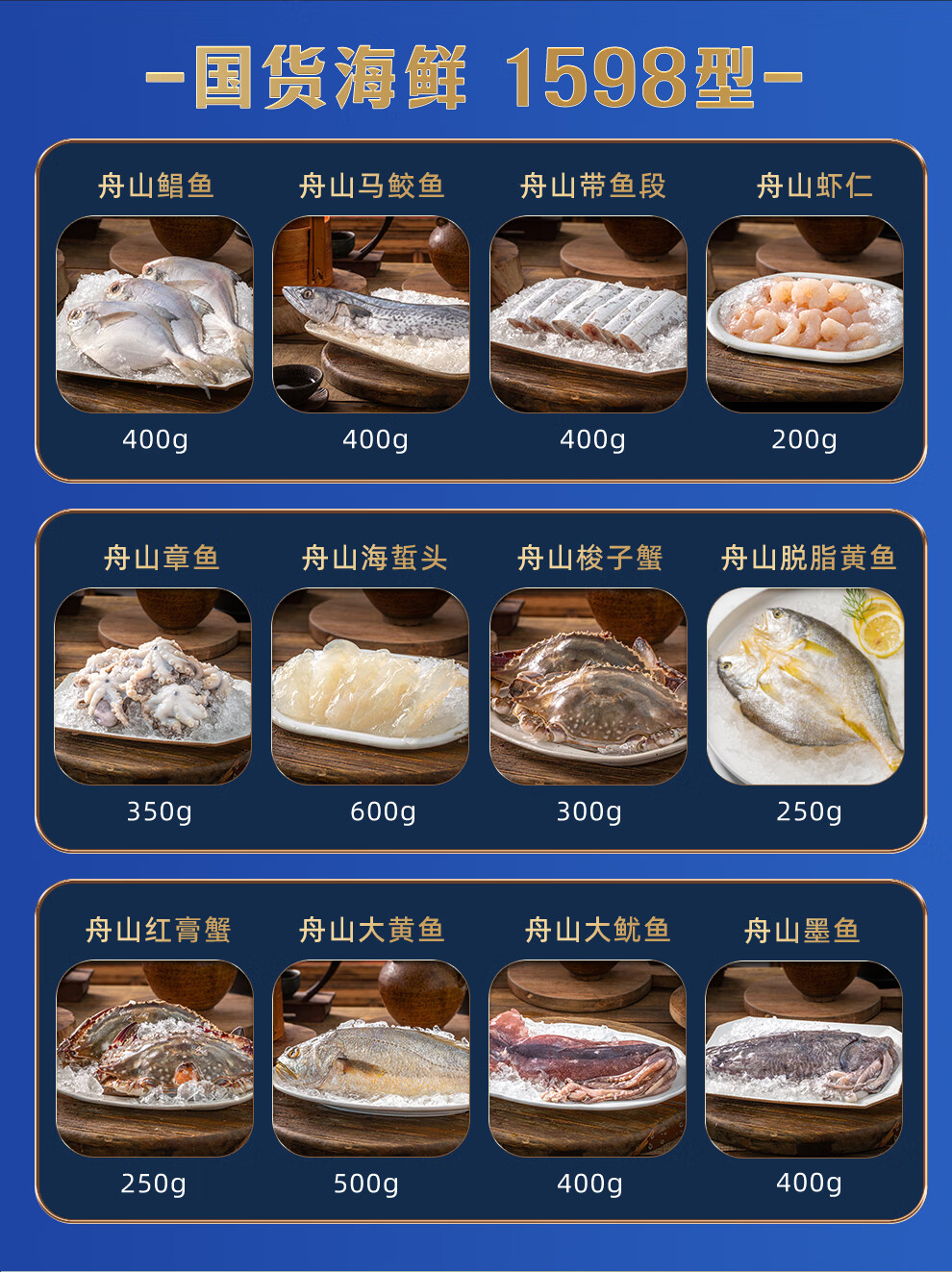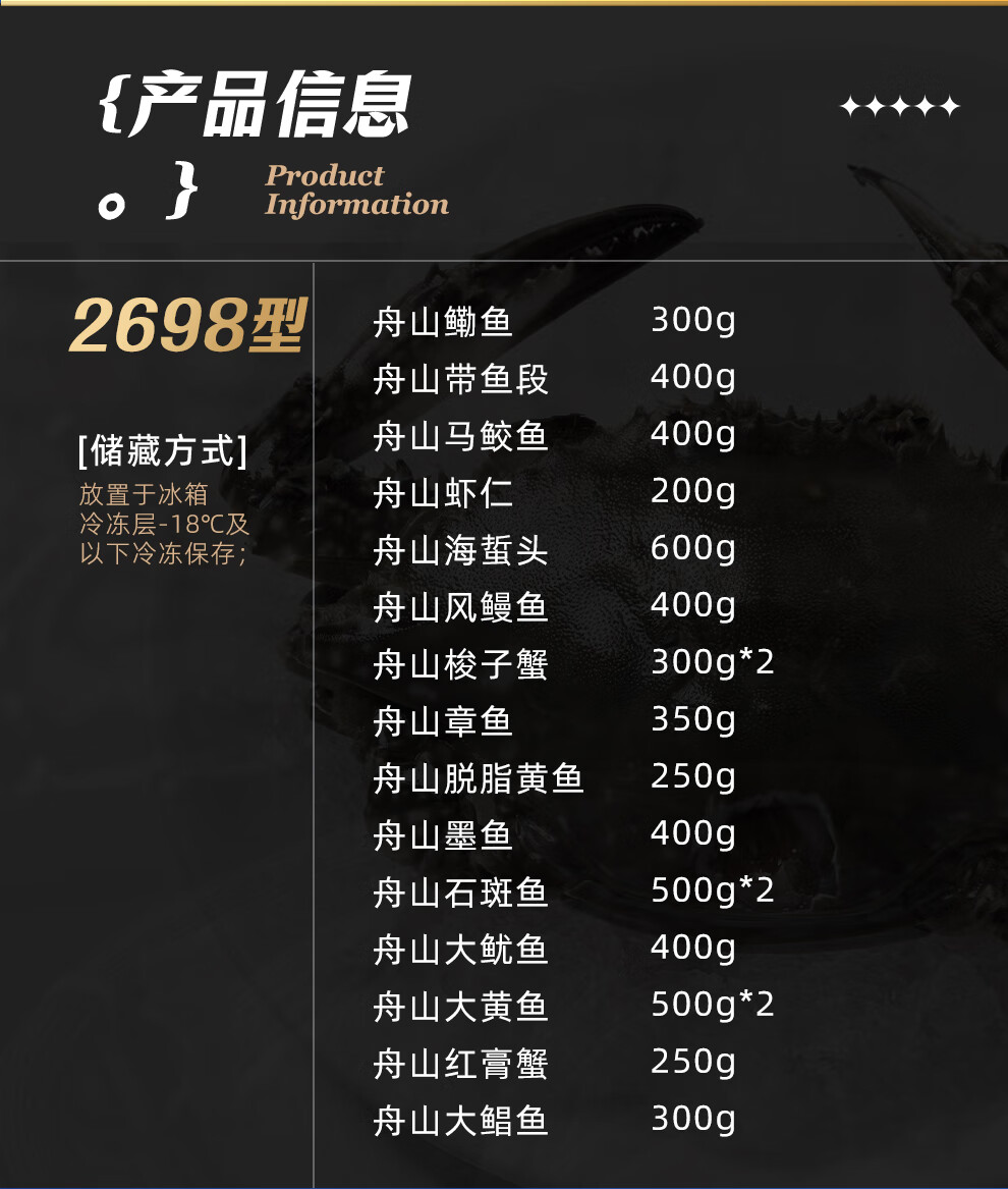 【礼券】蟹状元 国货海鲜礼券礼盒春节年货礼盒大礼包 1598型内含12件食材 4450g