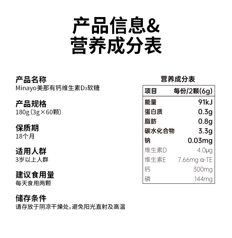 minayo美那有 钙维生素D3软糖儿童青少年成人适用骨质疏松钙维生素软糖 【钙维生素D3】 60粒*2瓶 生椰味