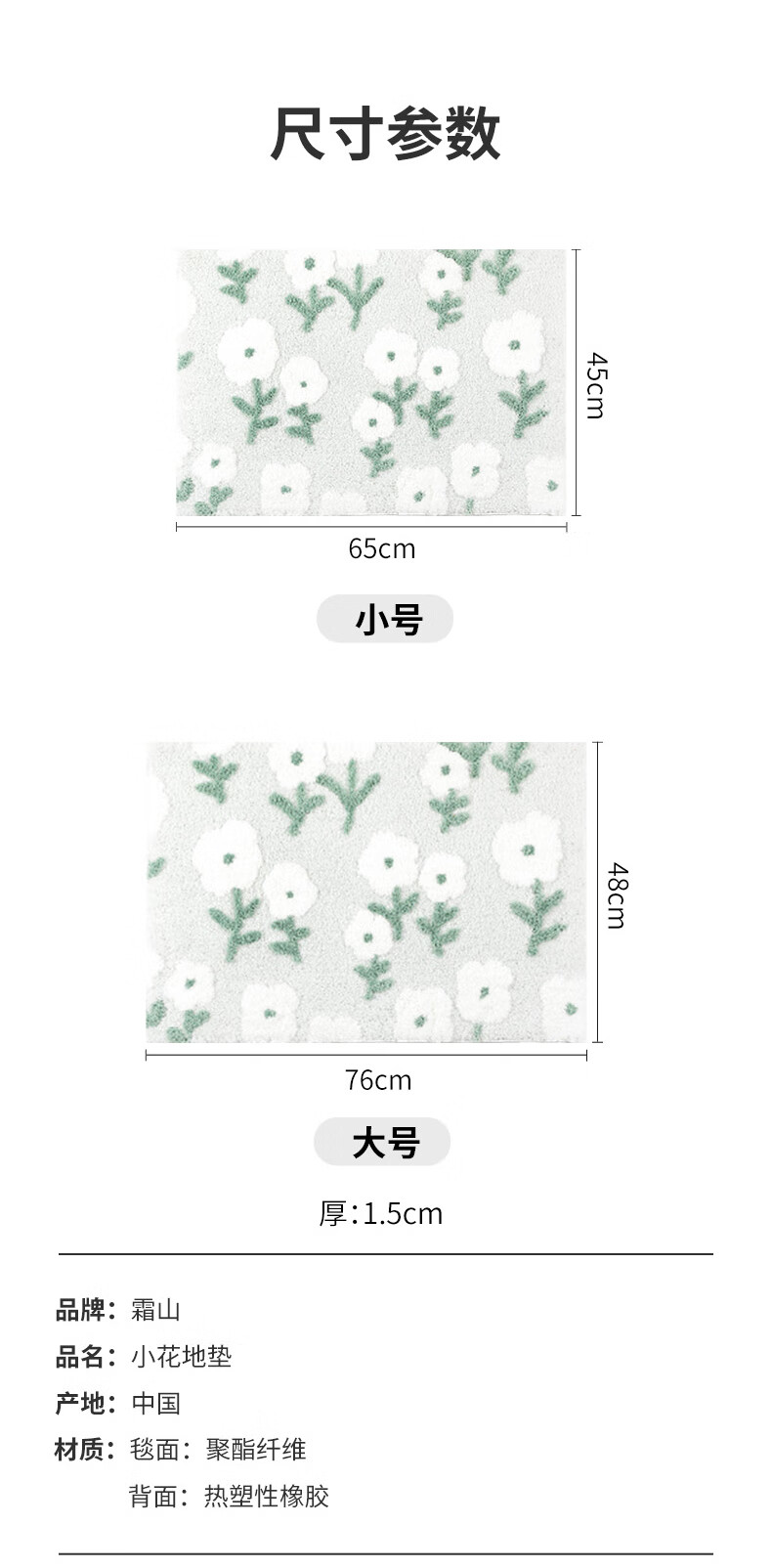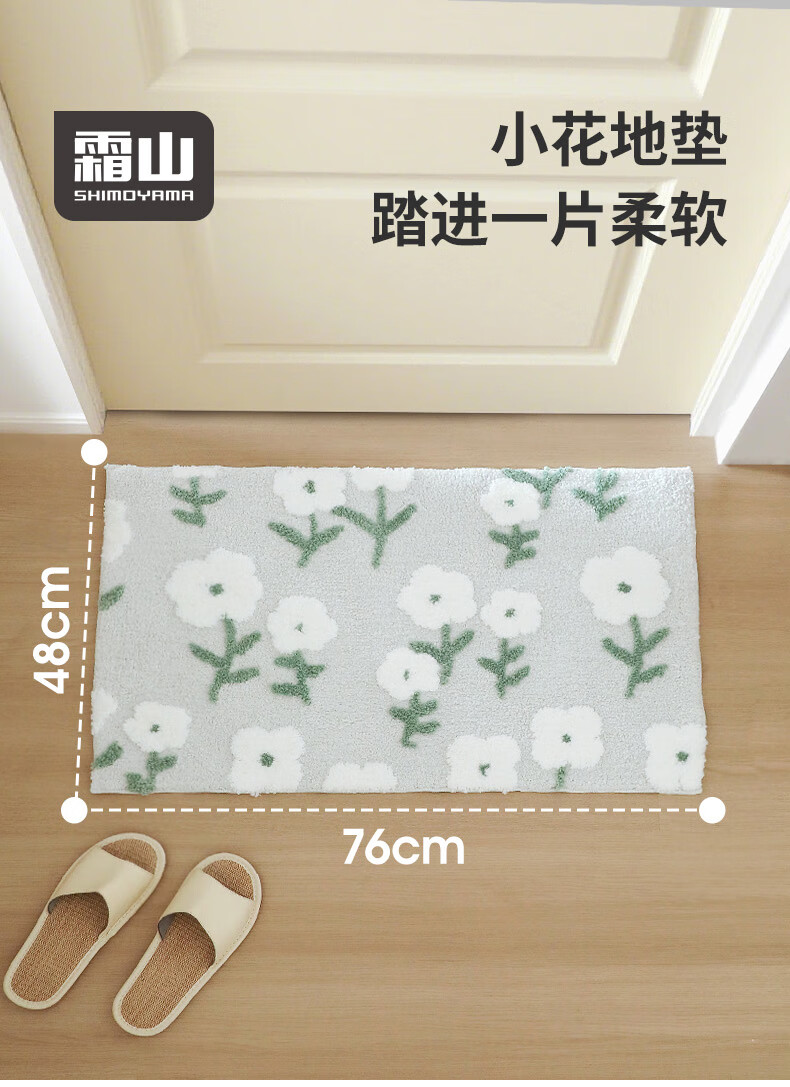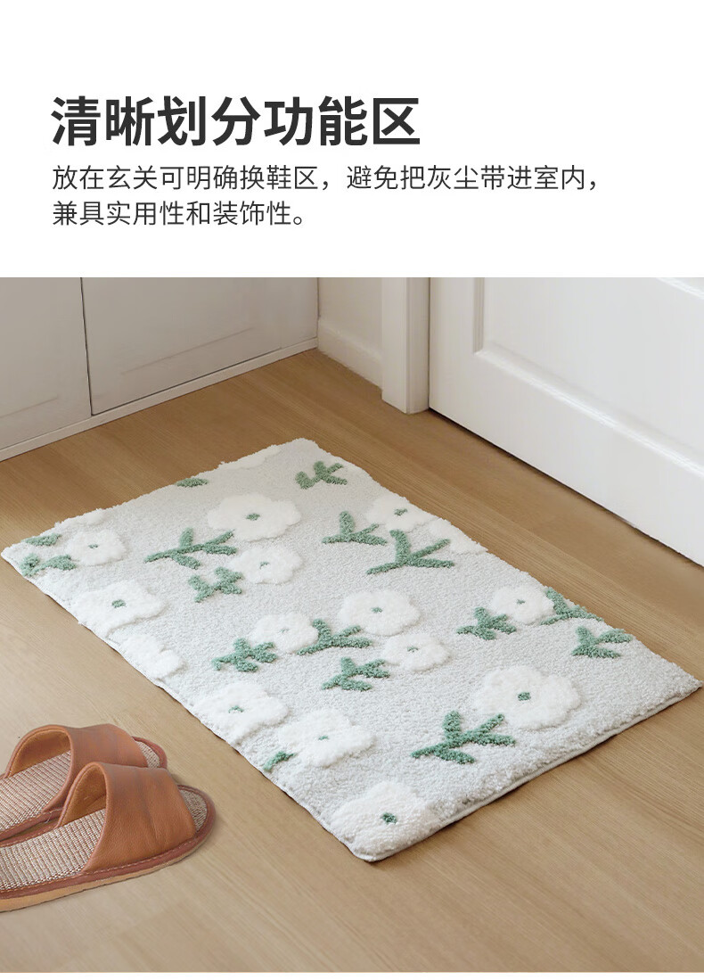 霜山脚垫入户门玄关换鞋垫家用簇绒防尘垫客厅卧室小清新防滑地垫 【格纹】大号(长76*宽48*厚1.5cm)