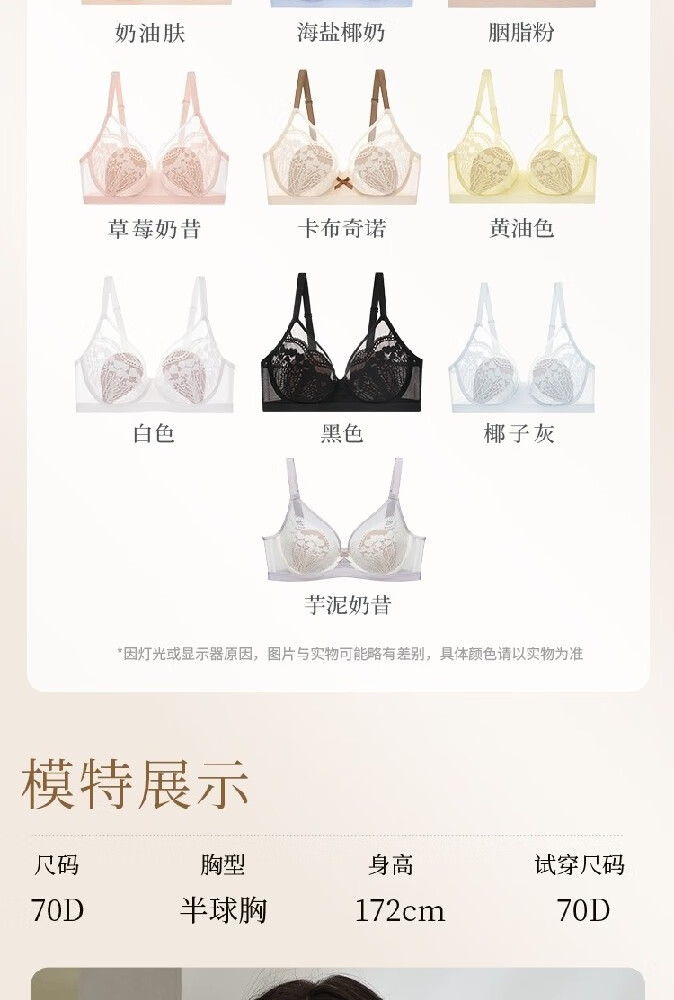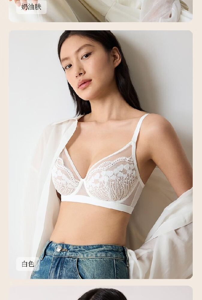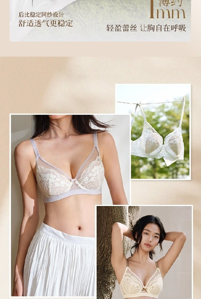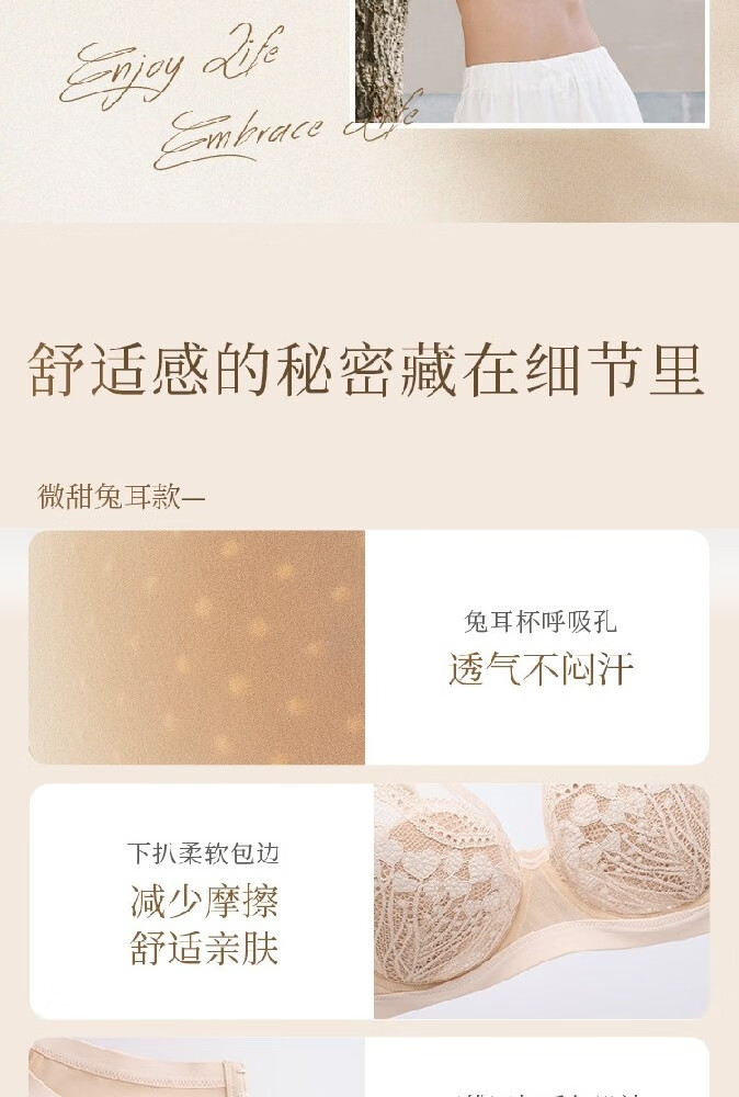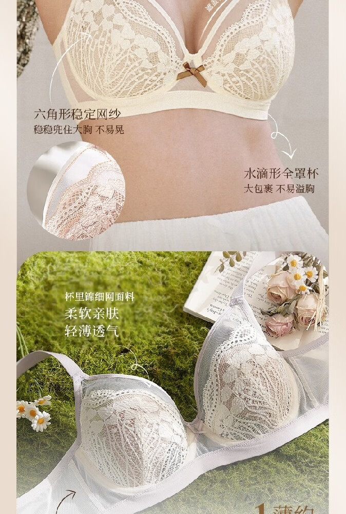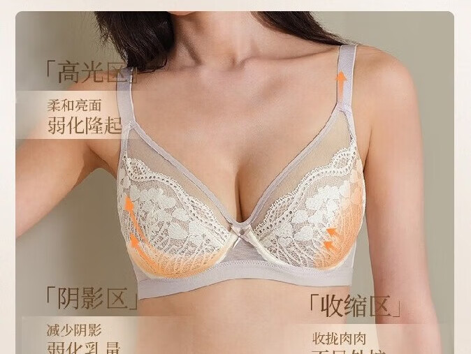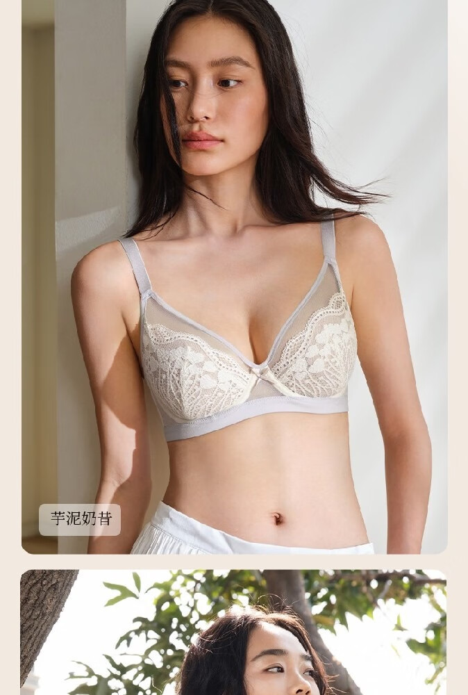 奶糖派微甜兔耳杯全罩杯超薄大胸显小聚拢显瘦文胸蕾丝大码内衣女送女友 芋泥奶昔 【秋冬新色】 75C
