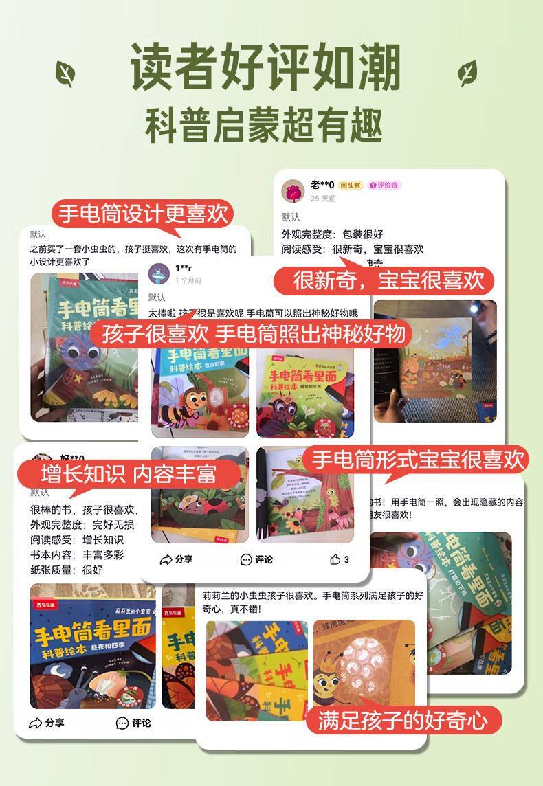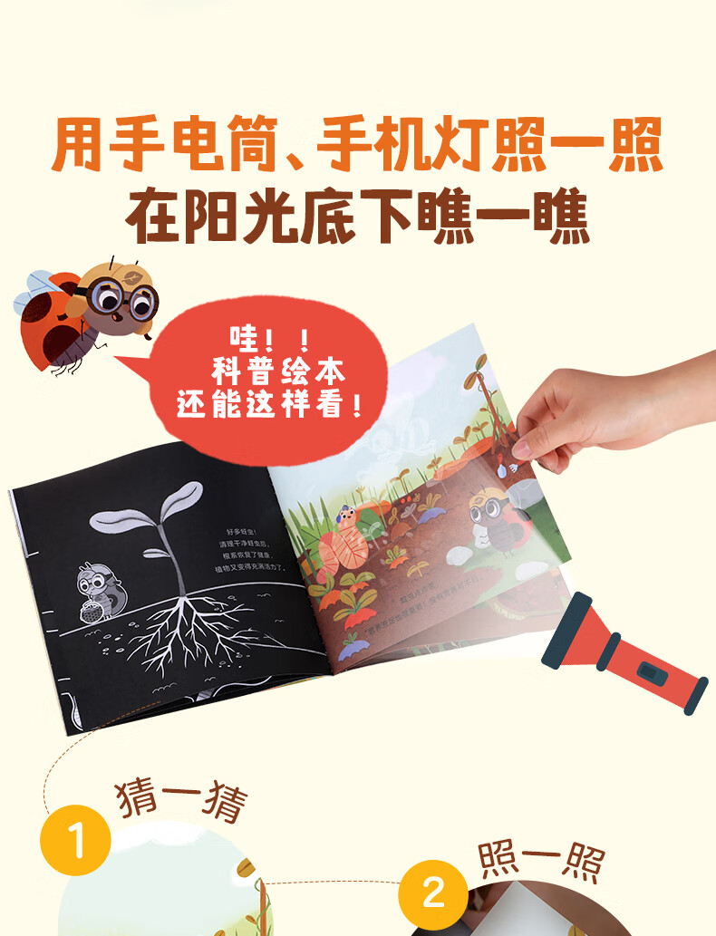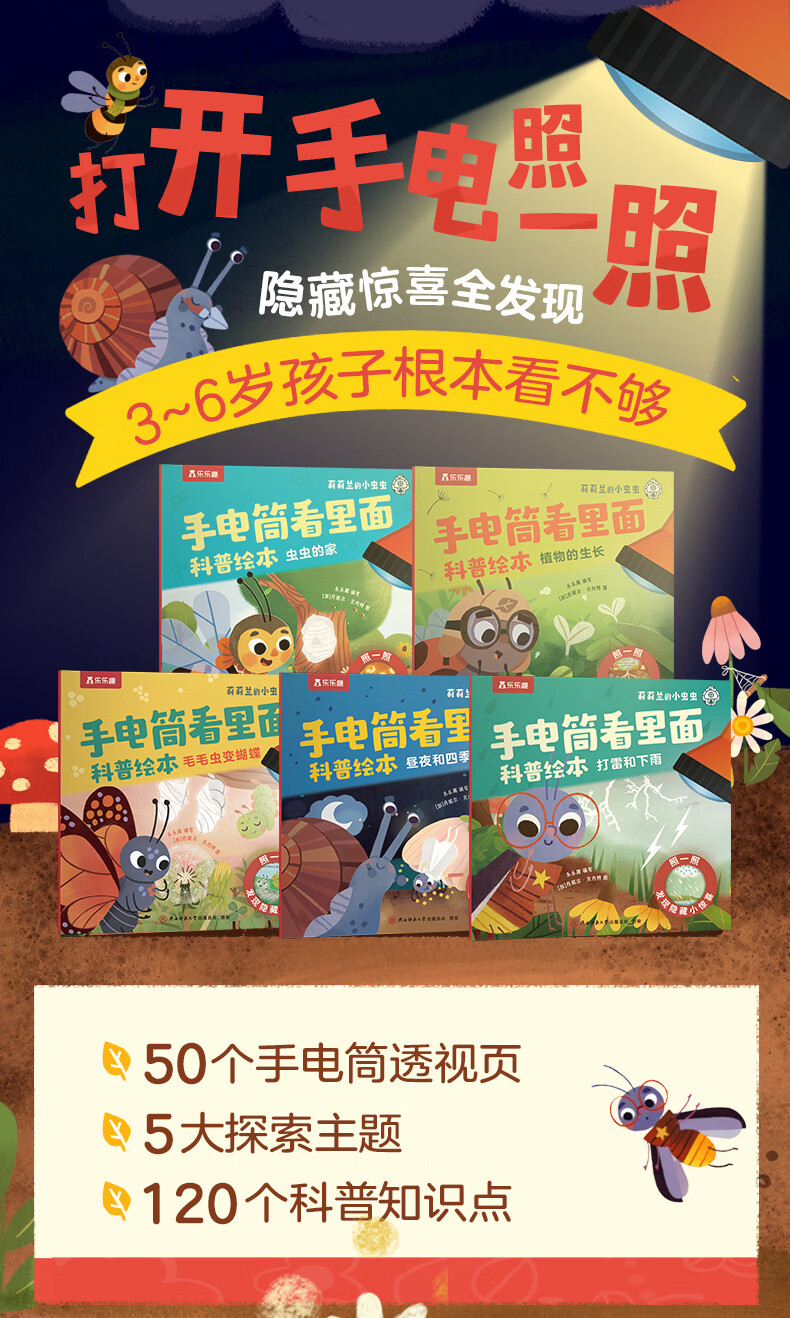 莉莉兰的小虫虫手电筒看里面科普绘本蒙氏早教绘本0到3岁宝宝绘本科普读物幼儿园阅读3到6岁宝宝早教书籍睡前启蒙故事绘本 莉莉兰的小虫虫 手电筒看里面科普绘本(全5册)