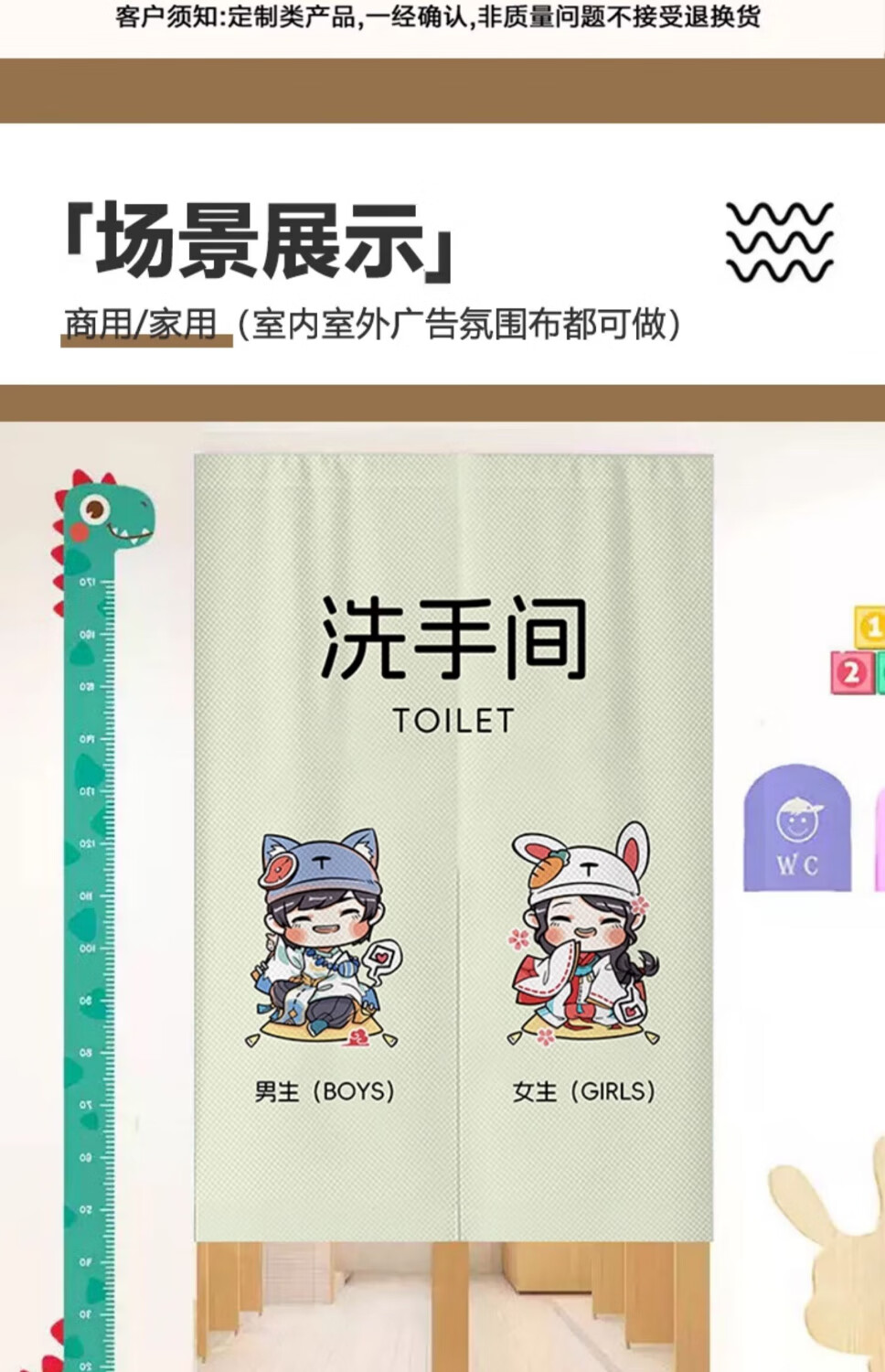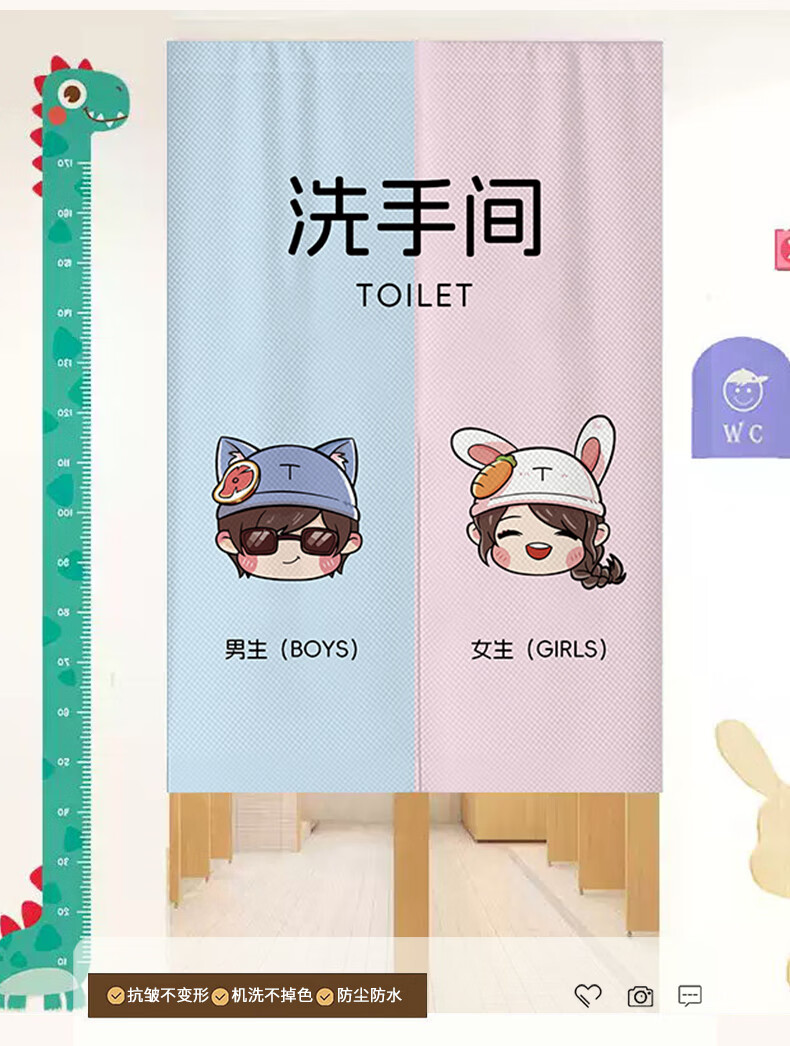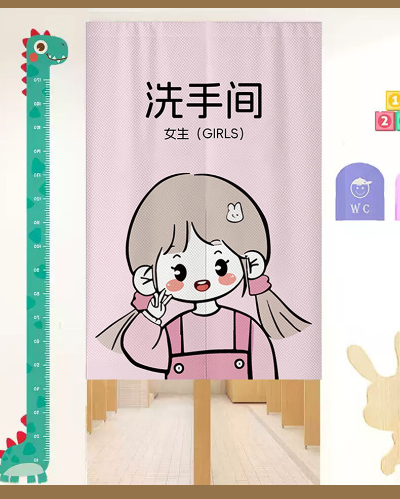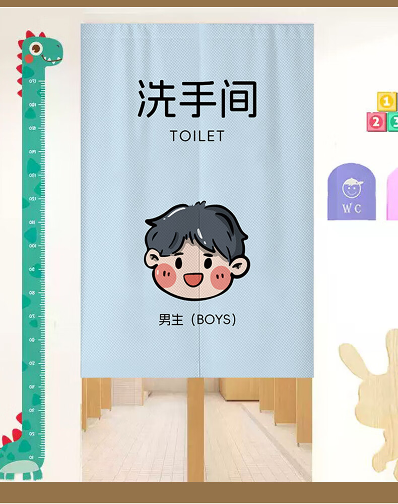 花剪语学校厕所门帘遮挡 卡通幼儿园男女卫生间隔断布门帘 免打孔挂帘 学校卫生间-28【耐脏防油】 宽120x高160 送磁铁+杆(对开)