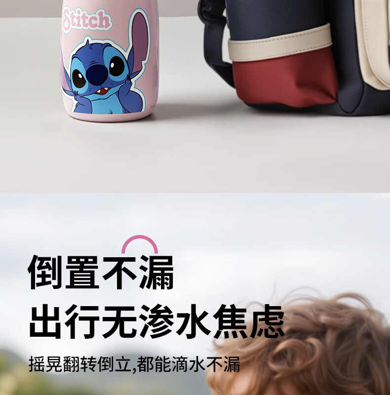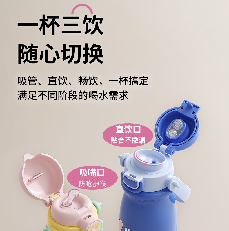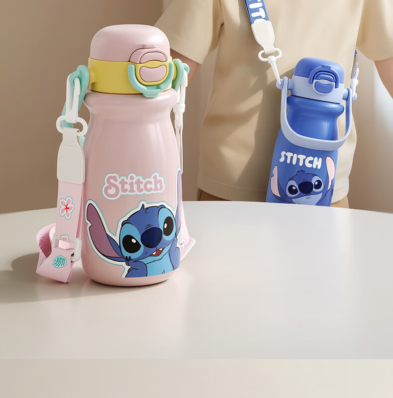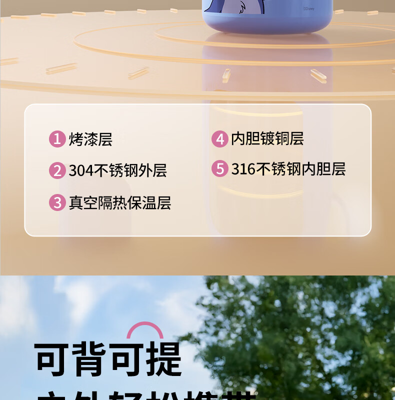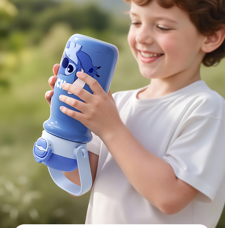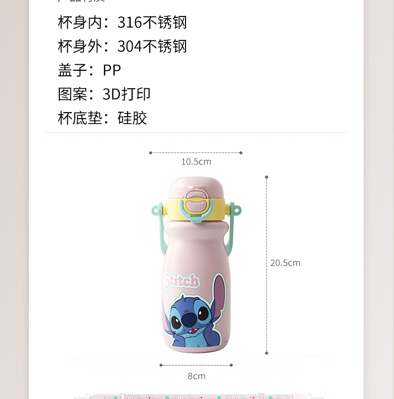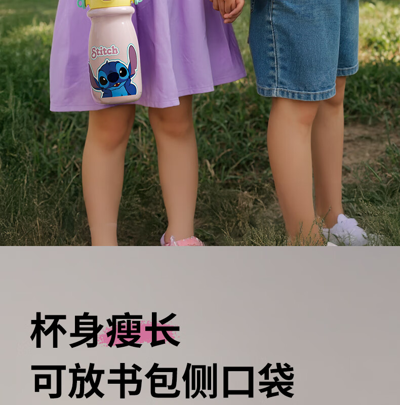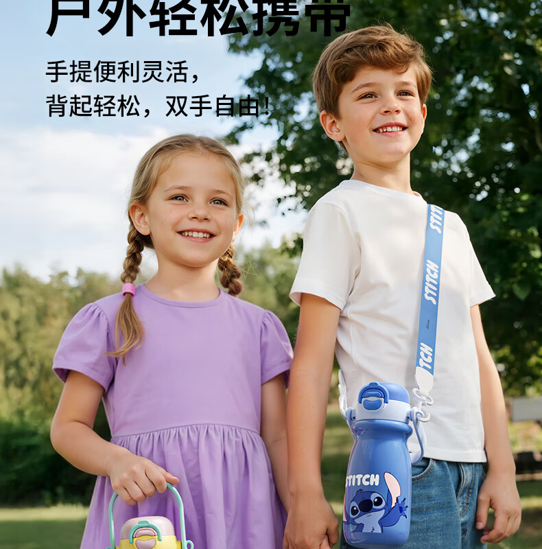 迪士尼(Disney)儿童保温杯男女孩外出幼儿园上学专用水杯3-6岁吸管直饮双口水壶 【双饮口杯盖+背带+提手】朱迪 600ml -紫白色