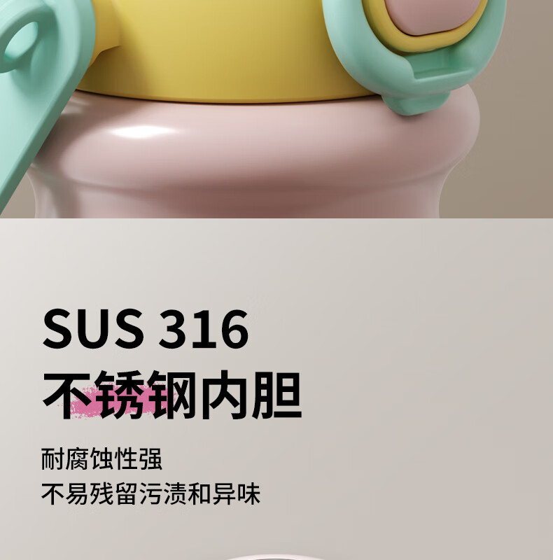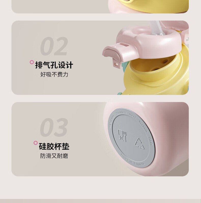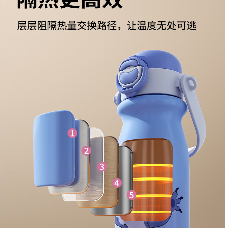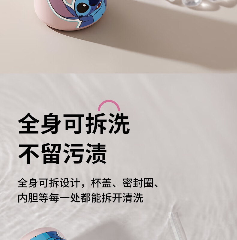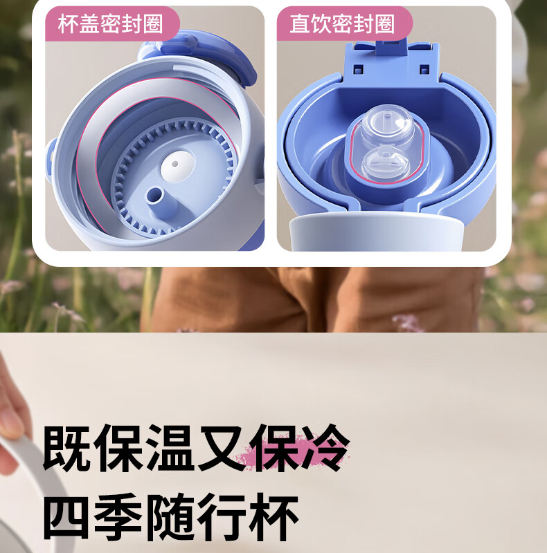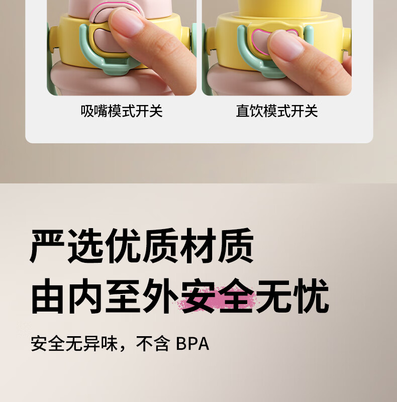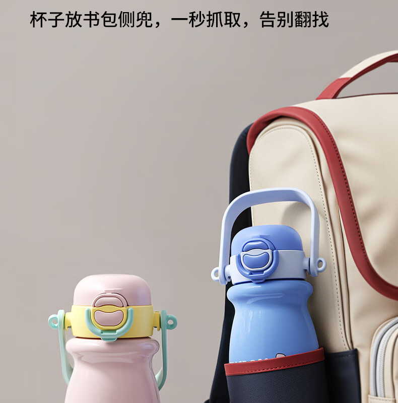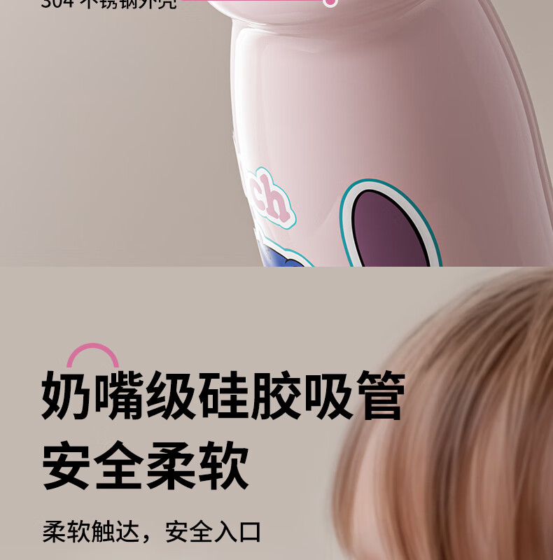 迪士尼(Disney)儿童保温杯男女孩外出幼儿园上学专用水杯3-6岁吸管直饮双口水壶 【双饮口杯盖+背带+提手】朱迪 600ml -紫白色