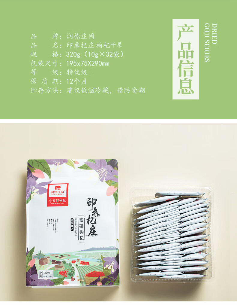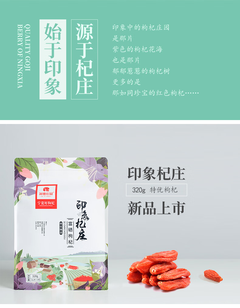 润德庄园宁夏印象杞庄有机枸杞干果礼盒特级免洗无硫熏枸杞320g 送礼礼盒