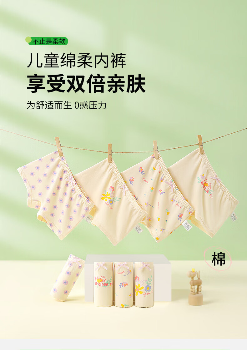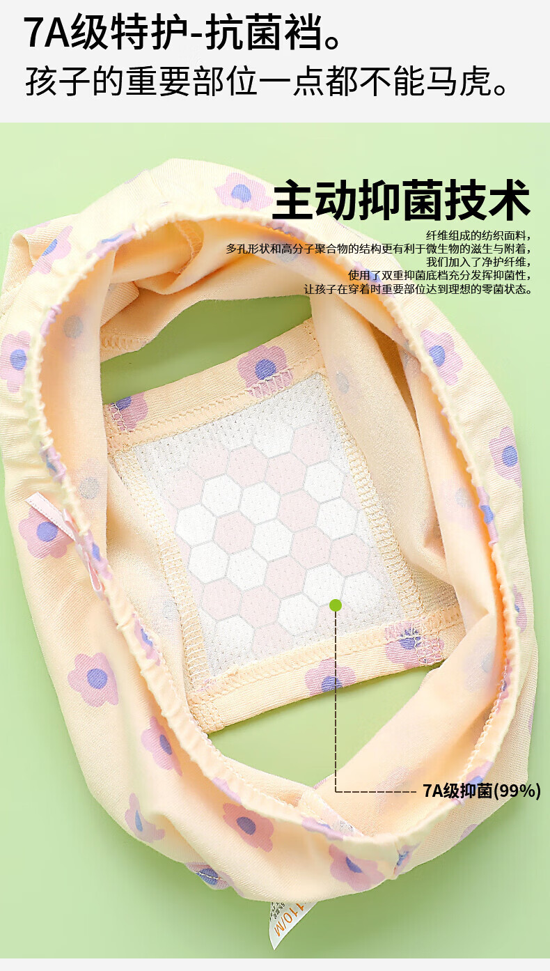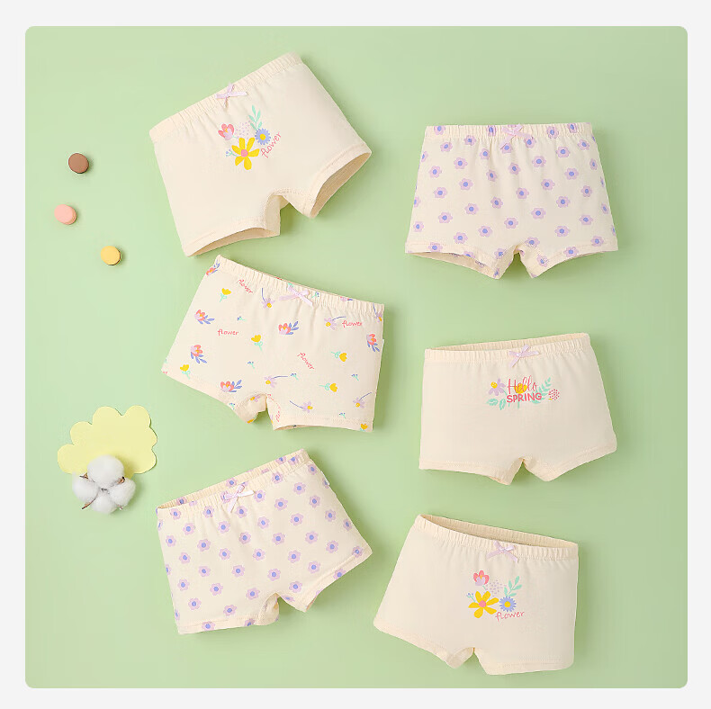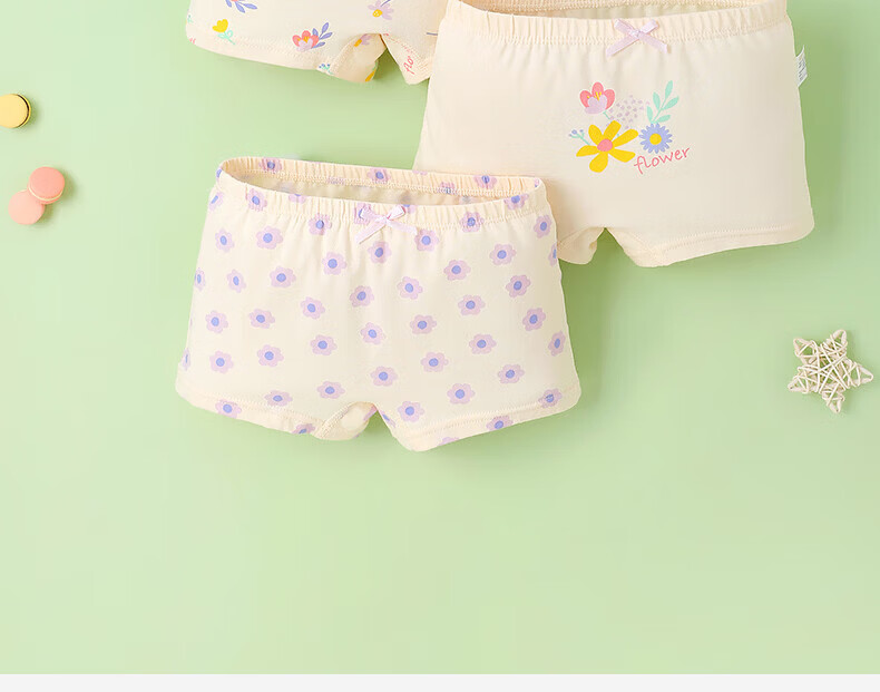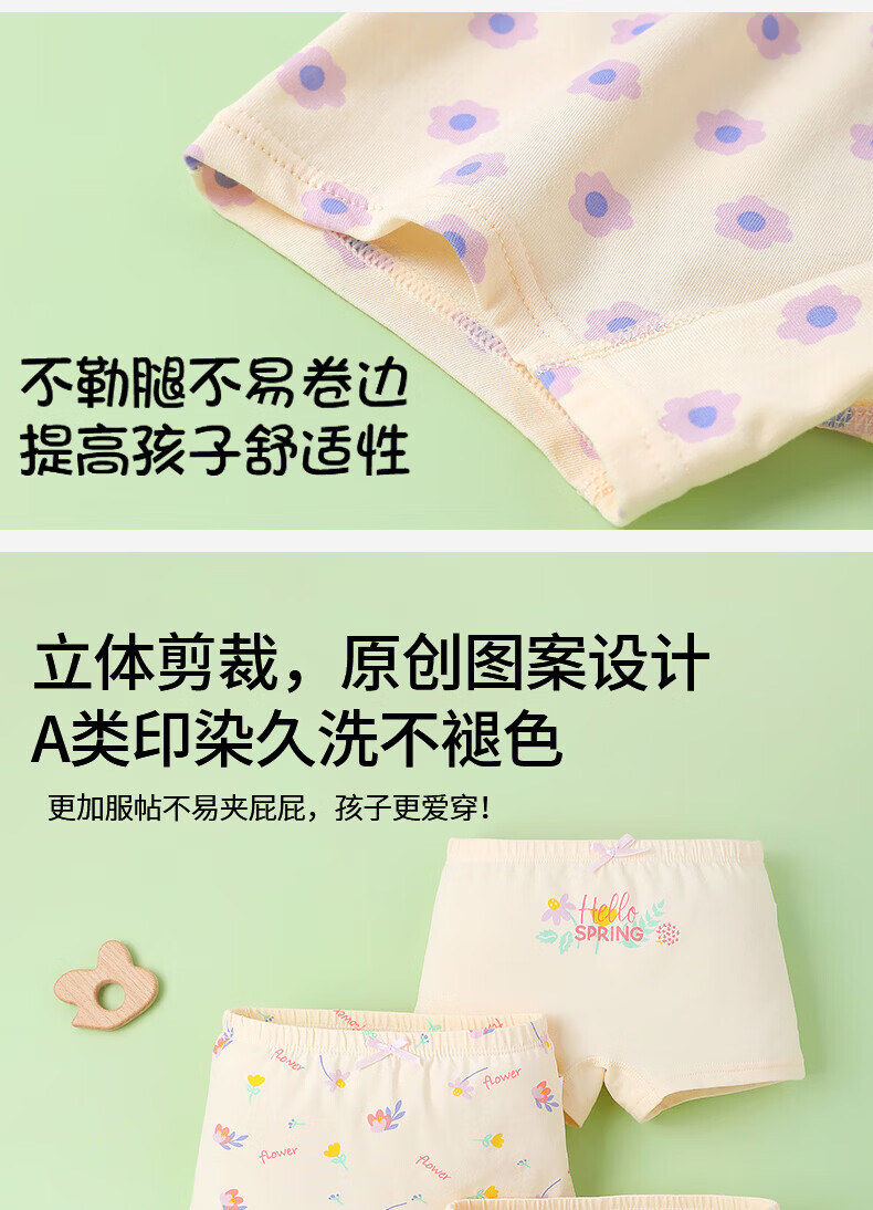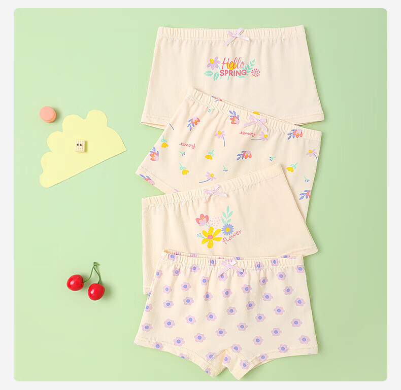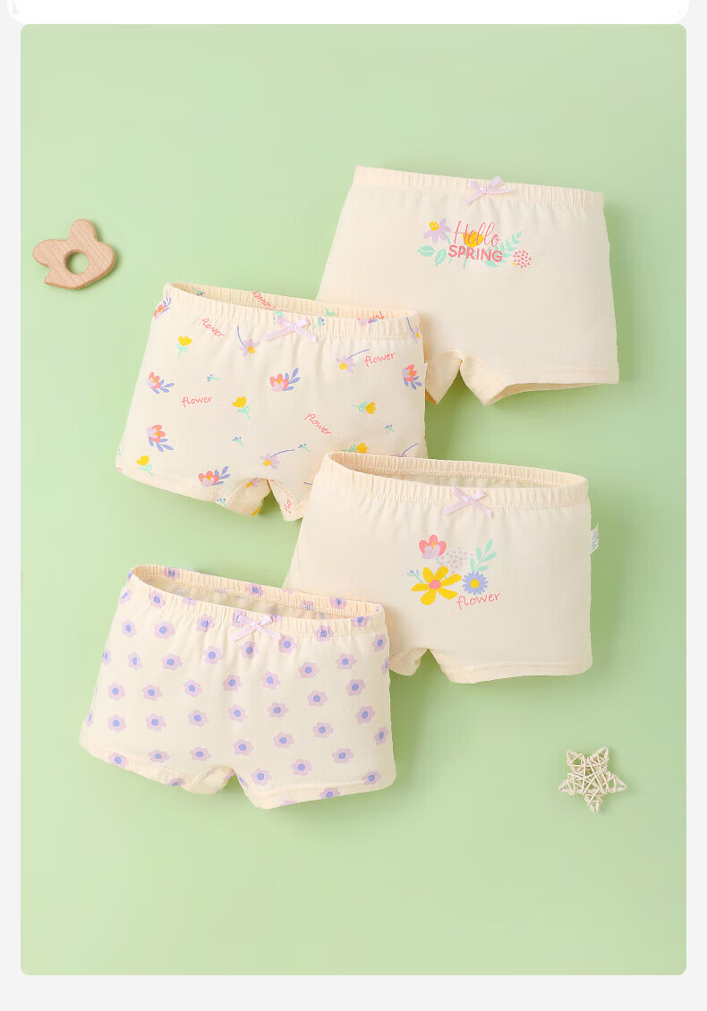 MQDMINI儿童内裤女童7A抗菌平角短裤透气中大童小女孩柔软四角底裤不夹PP 玉桂兔兔-4条装【7A抗菌纯棉】 均码 S码1-3岁15-25斤