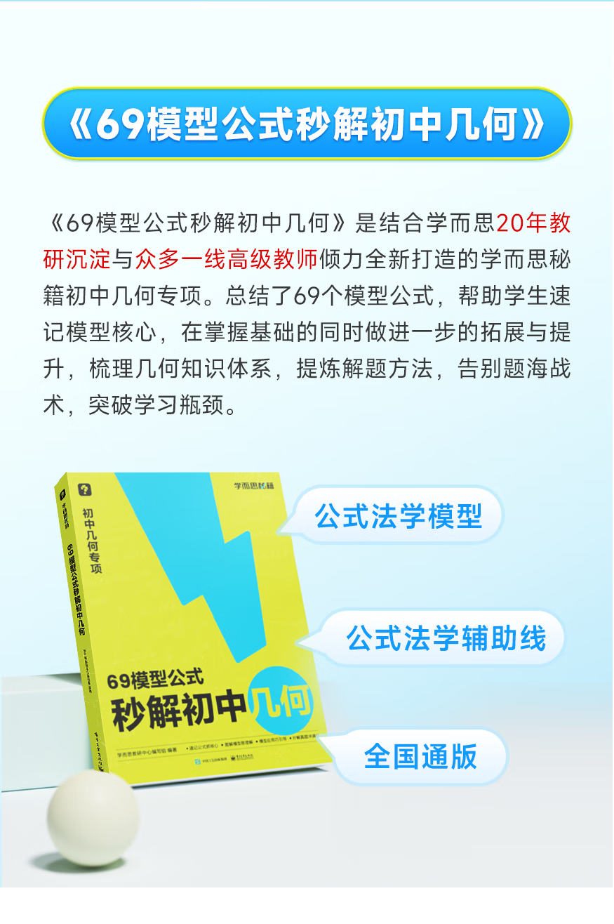 【初中数学】学而思 69模型公式秒解初中几何 一本书搞定初中三年的模型与辅助线初中数学函数(涵盖7-9年级)数学思维训练必刷题七八九年级函数常考知识题型真题专项训练 初中通用 附赠视频讲解权益卡,注意