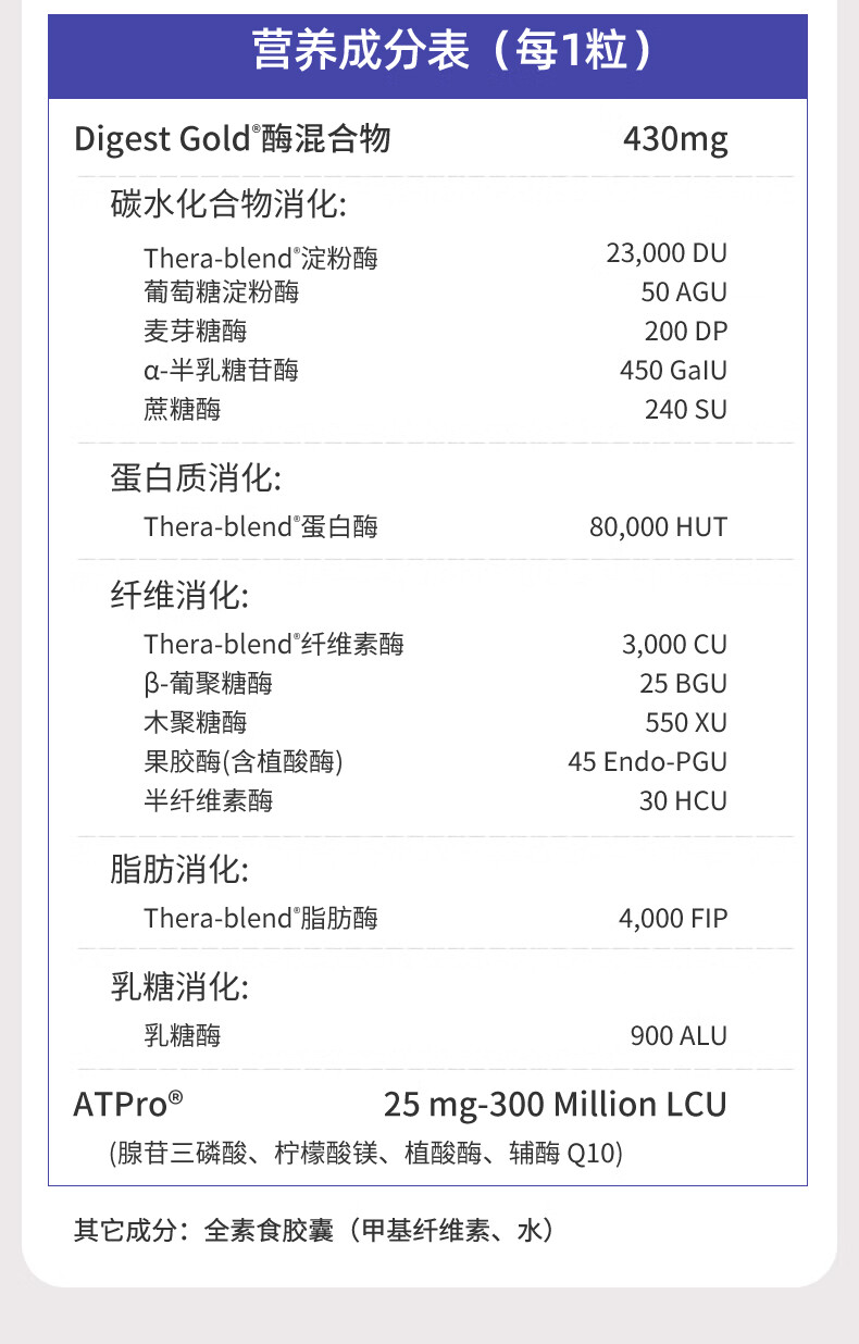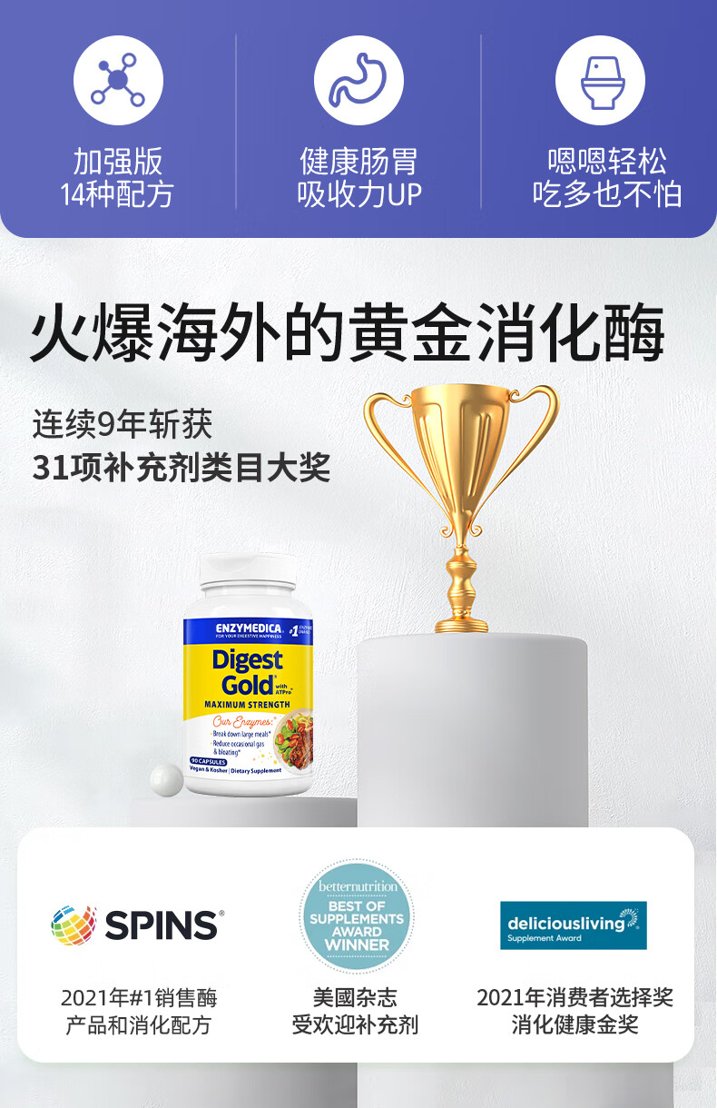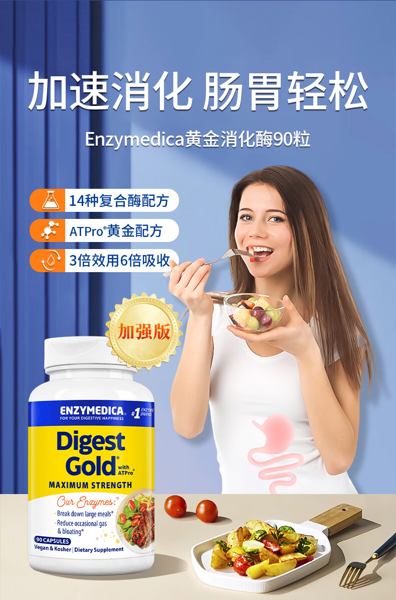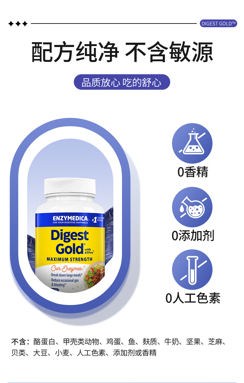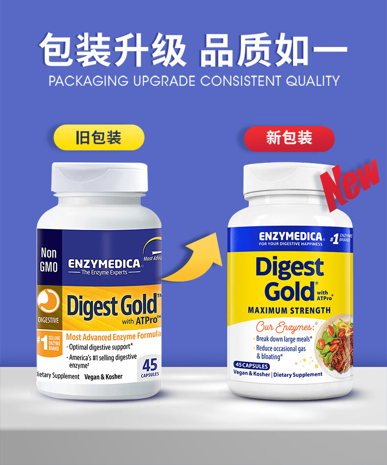 Enzymedica安森每康美国进口黄金复合消化酶成人助消化调理肠胃胀气消化不良 【热卖款】金级消化酶(含ATPro) 45粒*1瓶