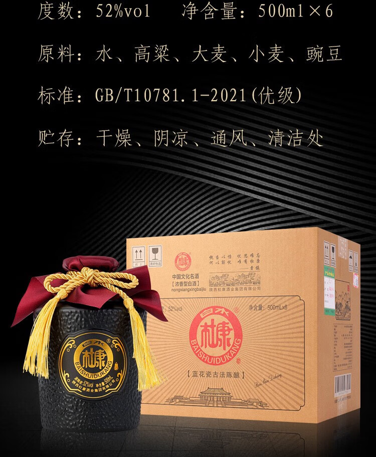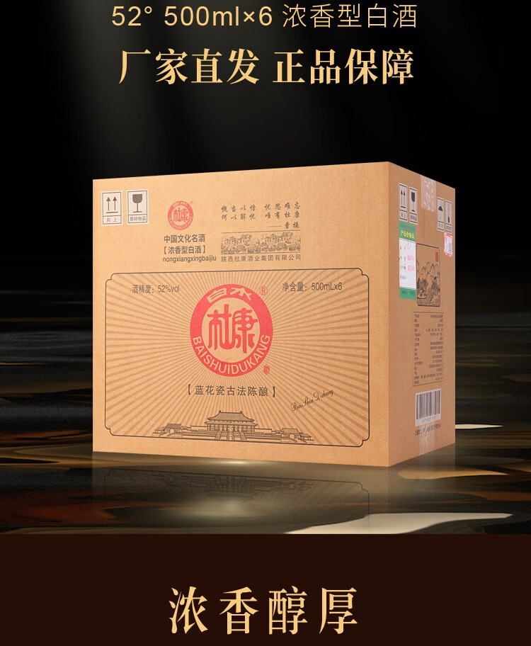 白水杜康(BAISHUIDUKANG)蓝花瓷古法陈酿52度500ml*6瓶整箱纯粮酿造请客送礼宴请 52度 500mL 6瓶