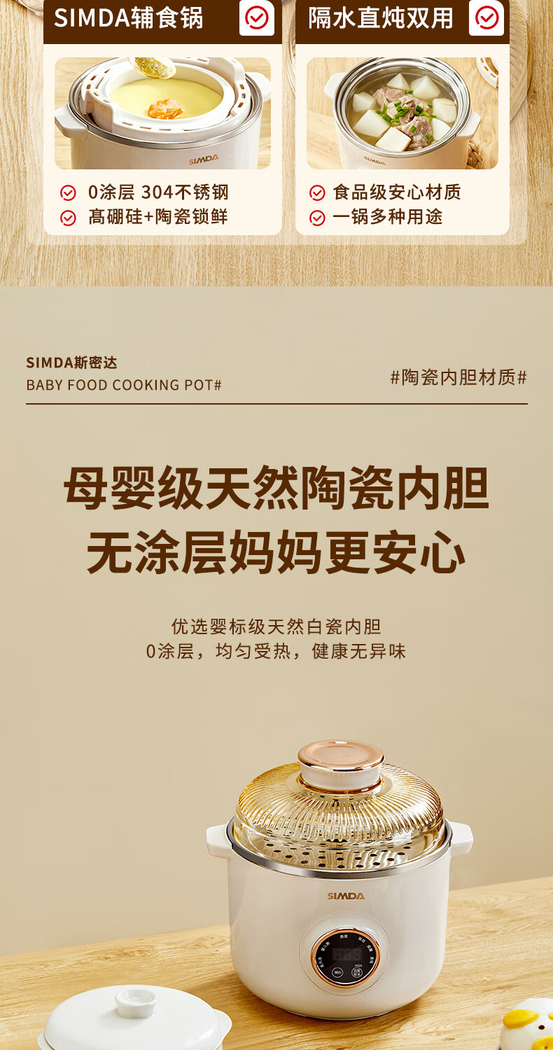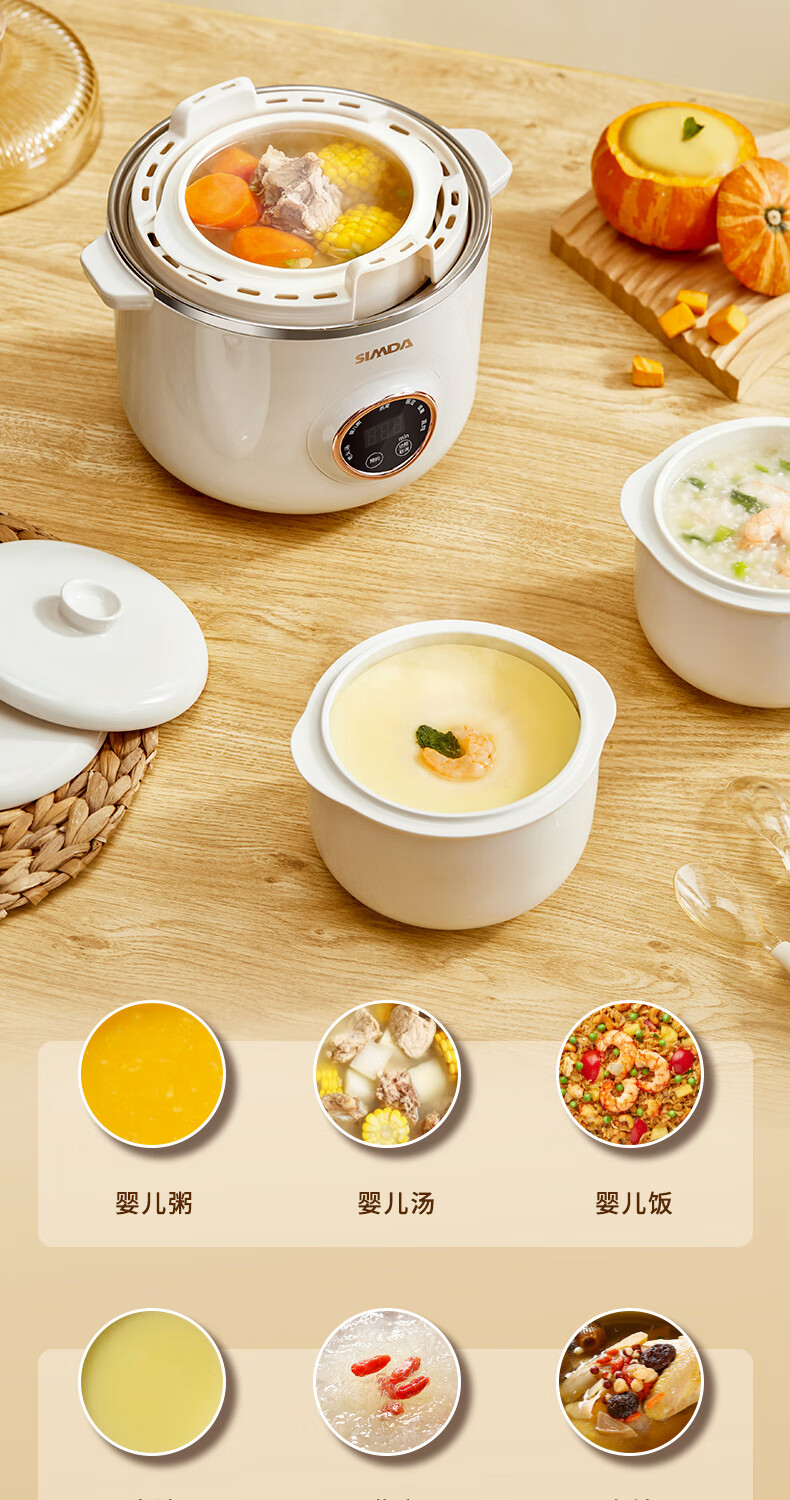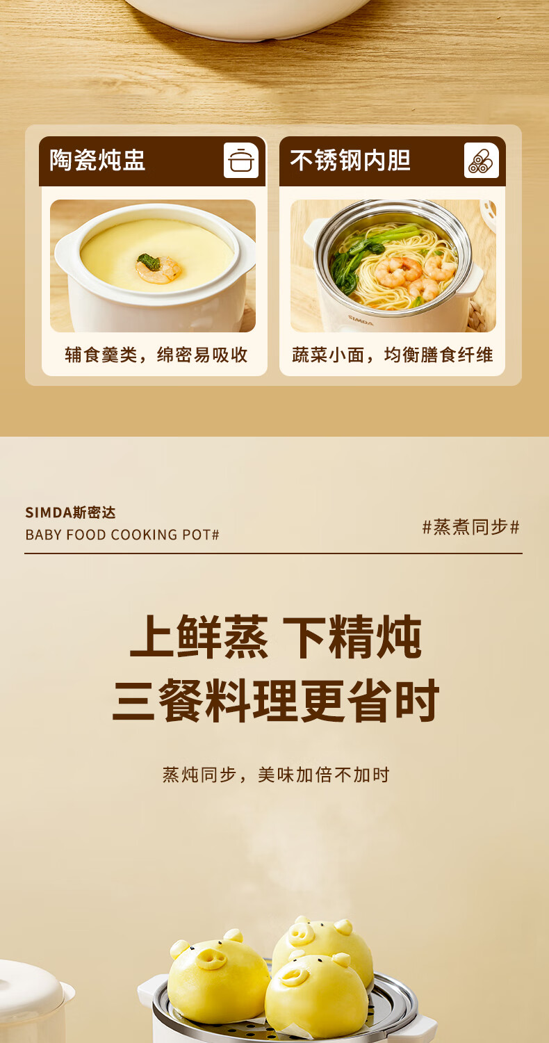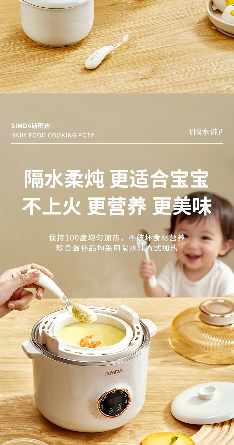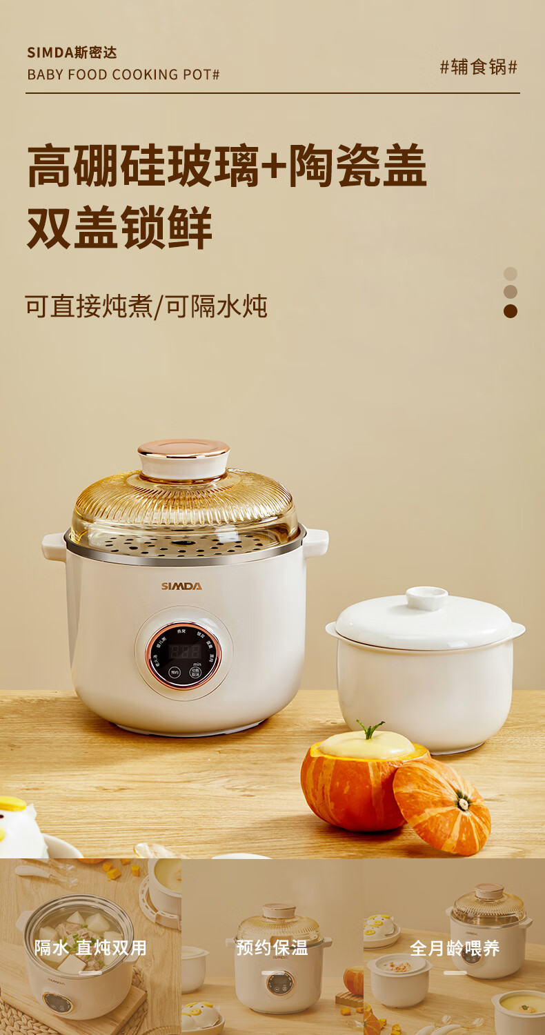 SIMDA斯密达电炖锅燕窝炖盅BB煲粥汤饭锅婴儿专用隔水炖盅宝宝辅食锅 隔水炖/直炖两用【辅食/燕窝】+蒸盘 0.8L