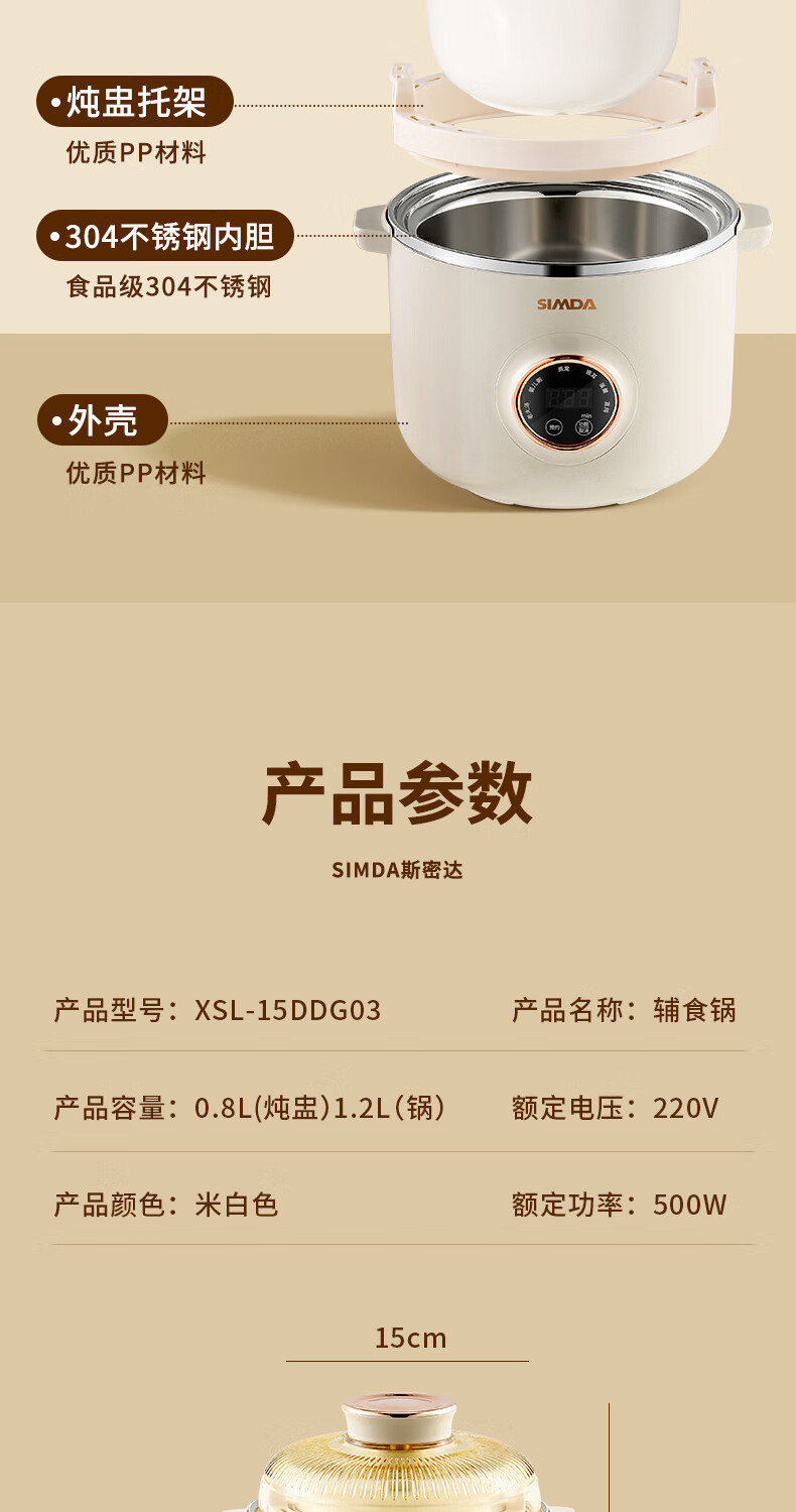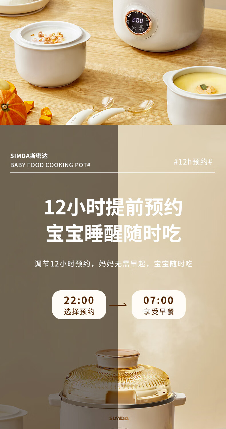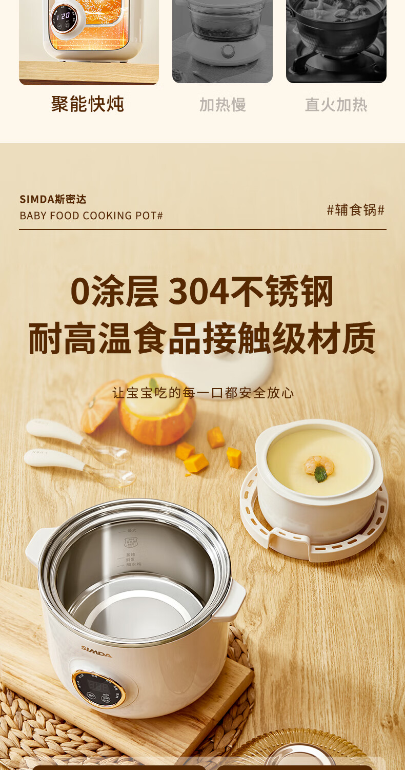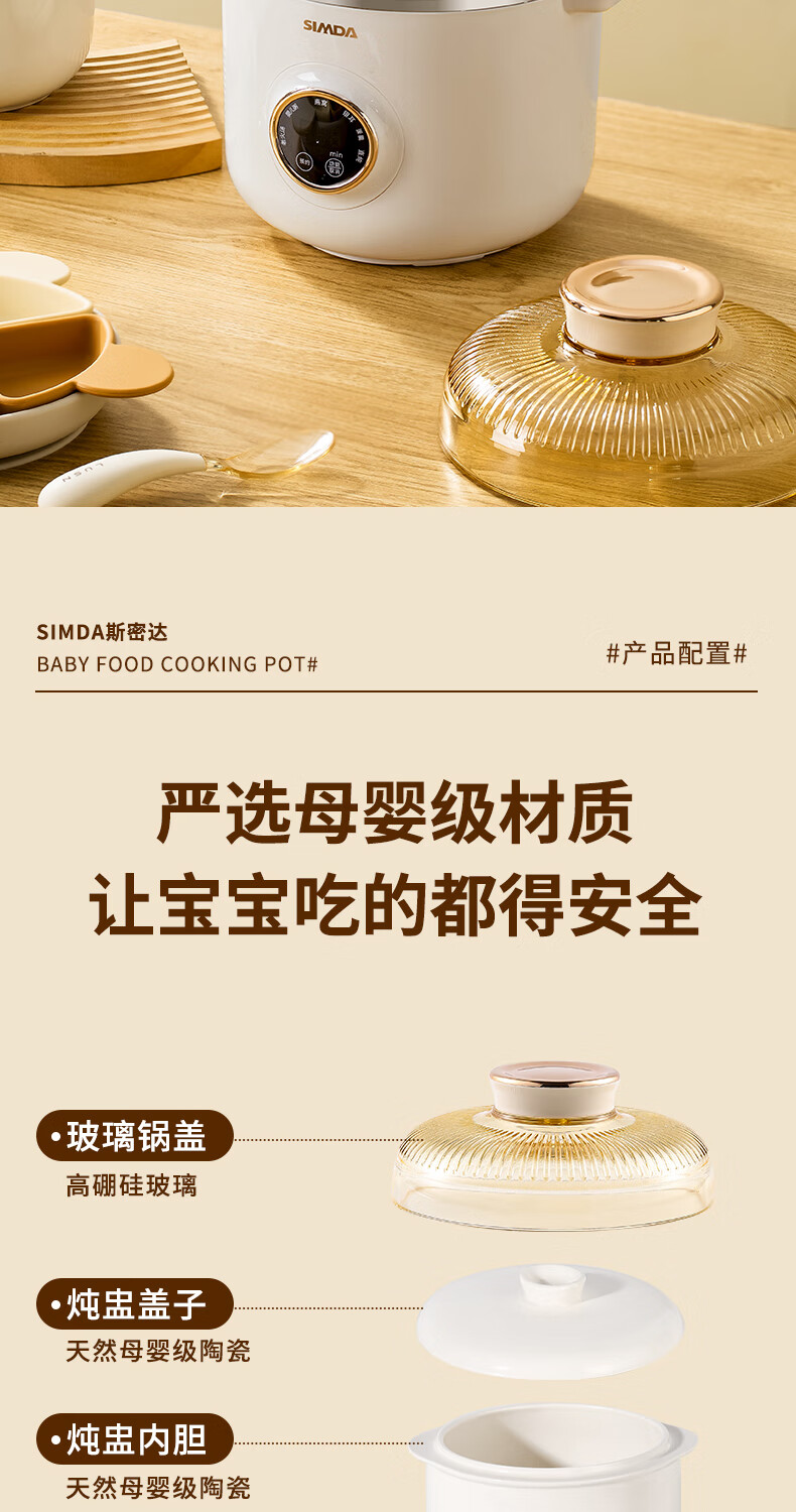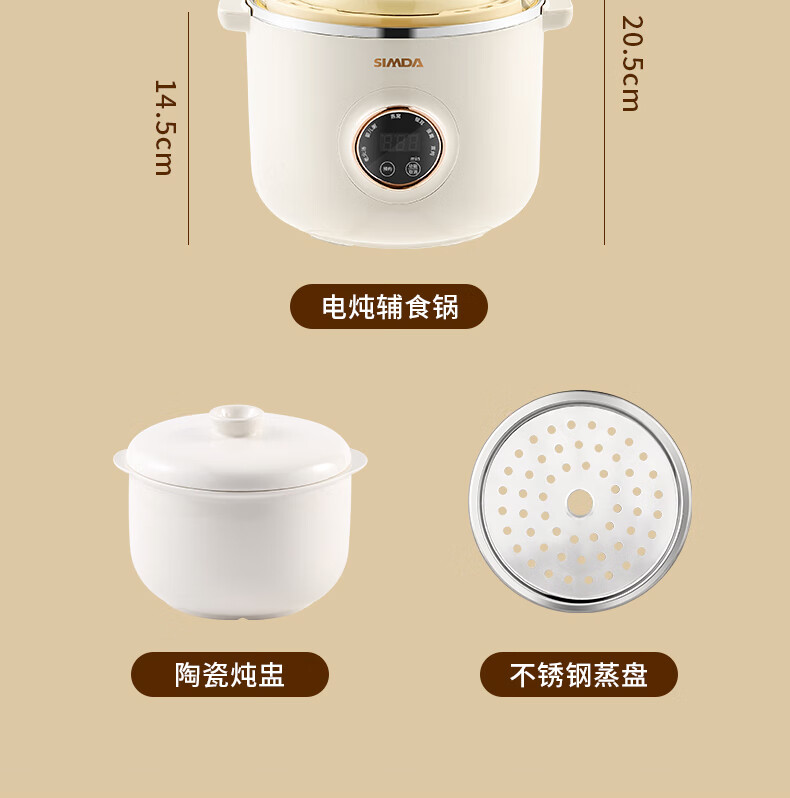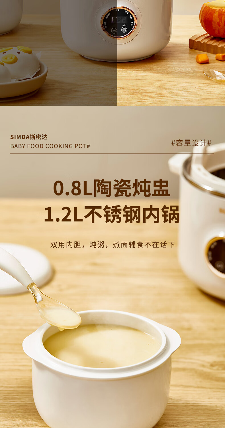 SIMDA斯密达电炖锅燕窝炖盅BB煲粥汤饭锅婴儿专用隔水炖盅宝宝辅食锅 隔水炖/直炖两用【辅食/燕窝】+蒸盘 0.8L