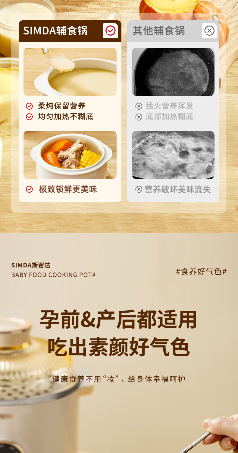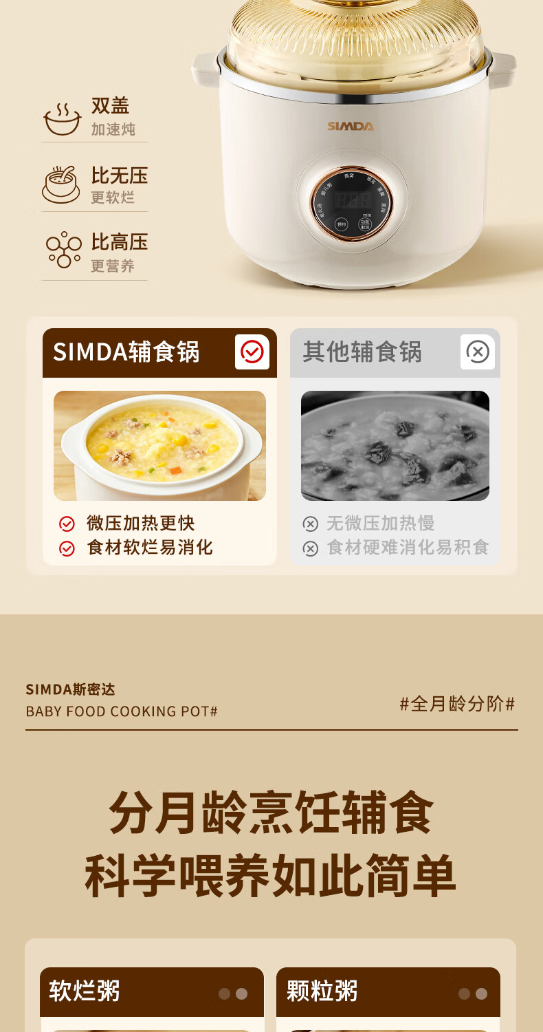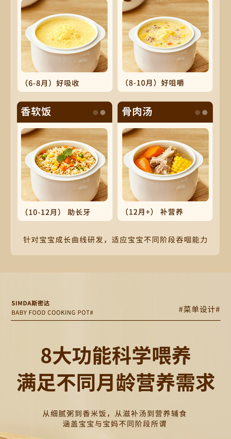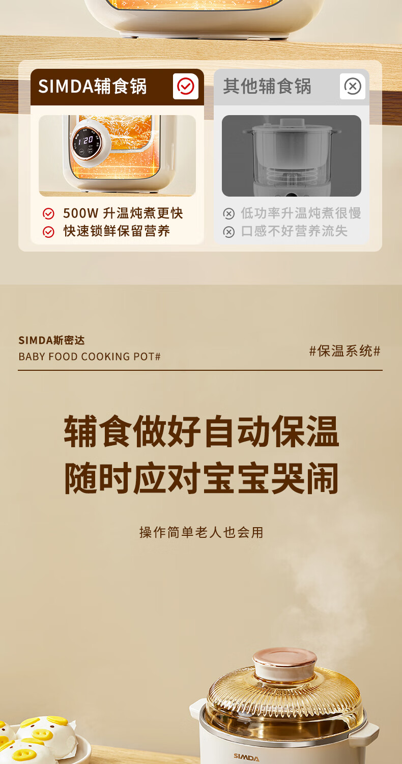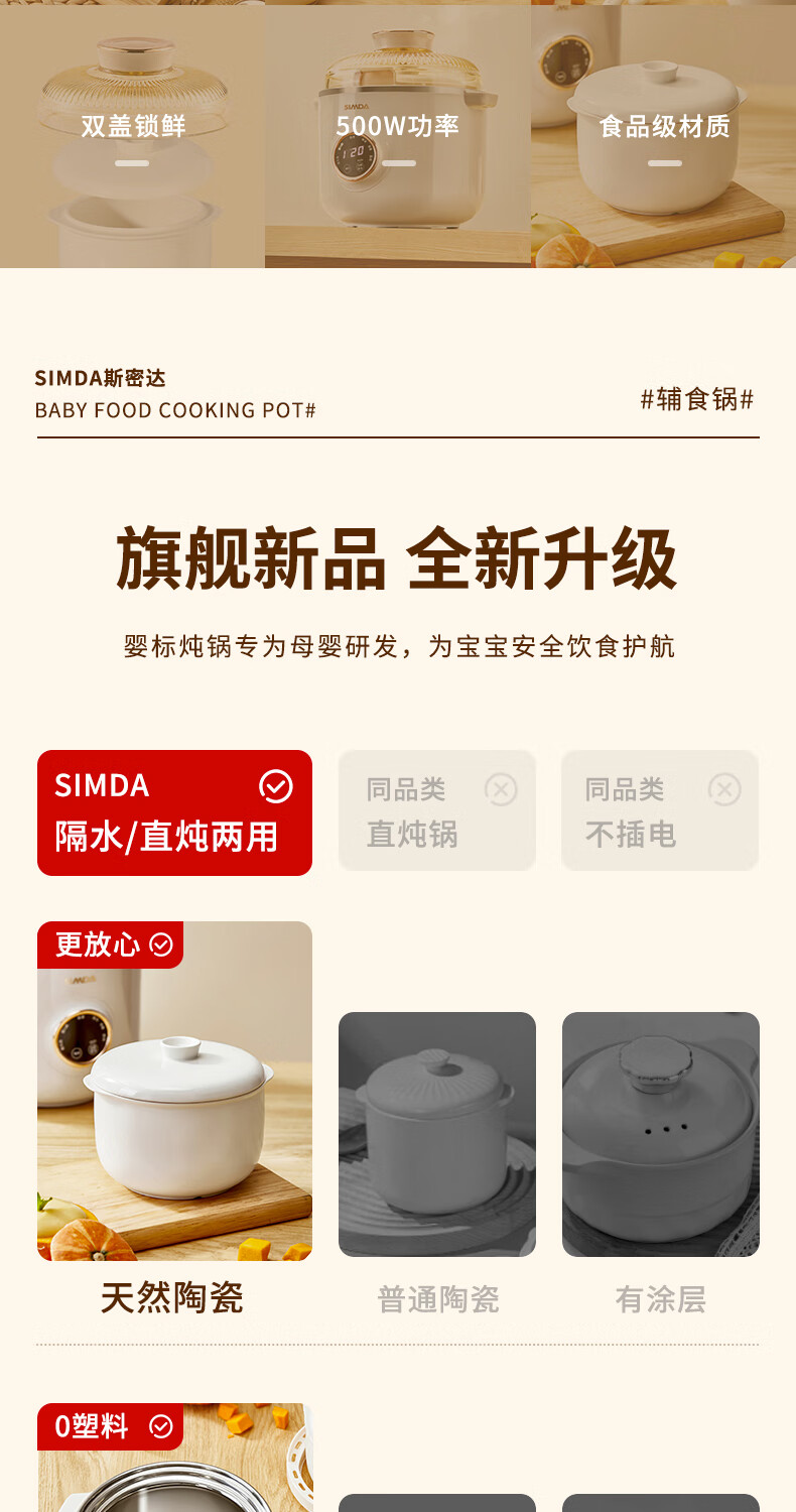 SIMDA斯密达电炖锅燕窝炖盅BB煲粥汤饭锅婴儿专用隔水炖盅宝宝辅食锅 隔水炖/直炖两用【辅食/燕窝】+蒸盘 0.8L
