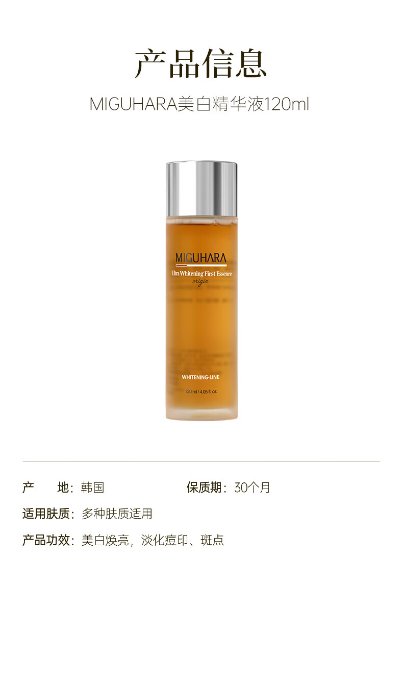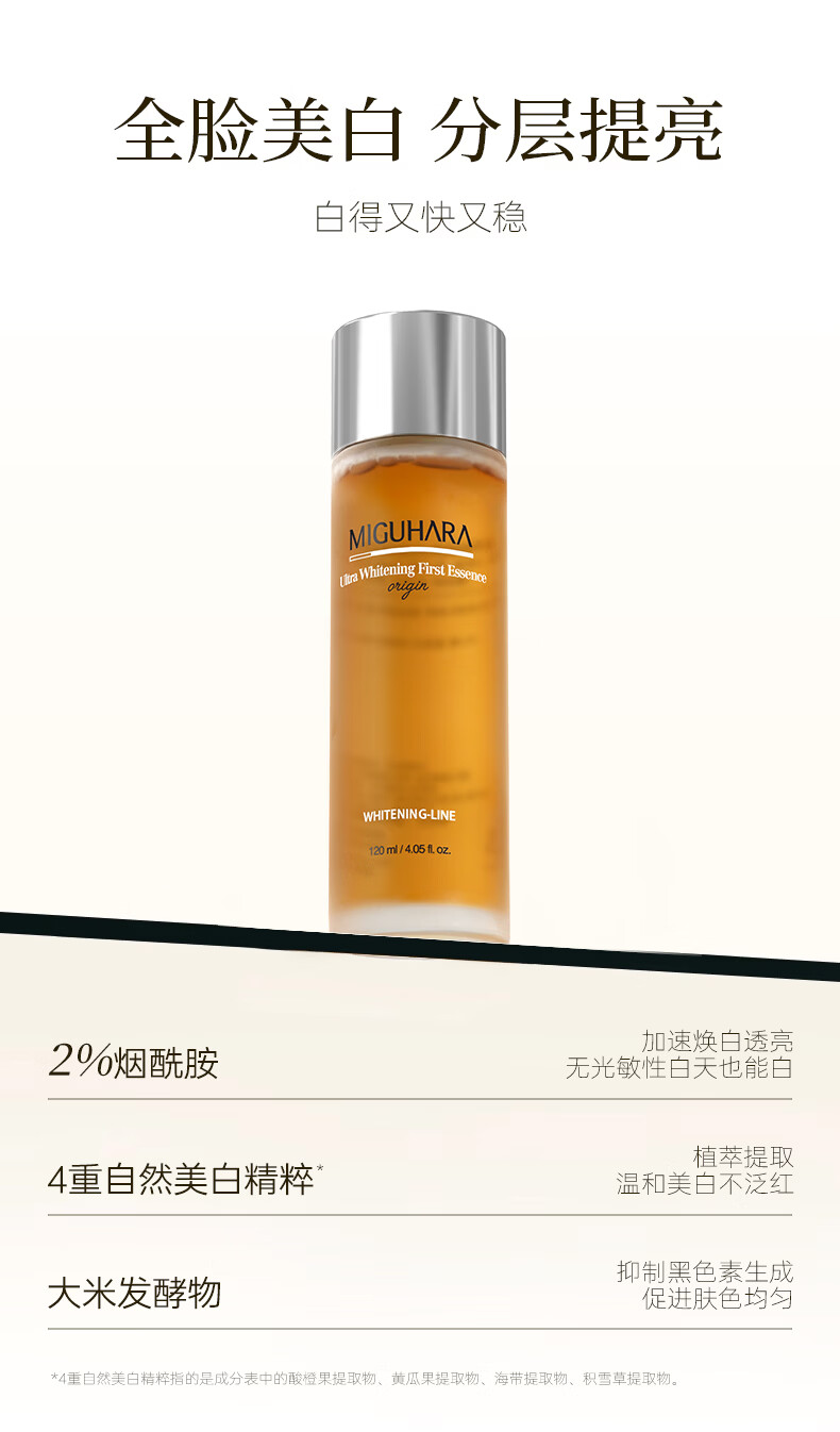 MIGUHARA咪咕哈啦精华水保湿水祛斑美白去黄提亮补水滋润120ml新年礼物 美白淡斑提亮精华水120ml