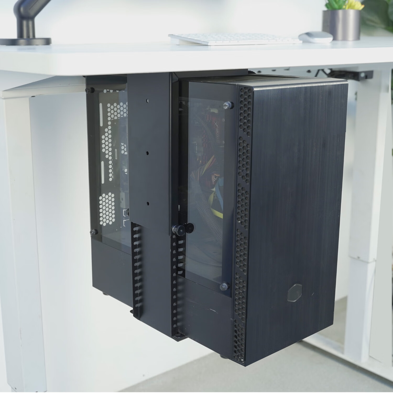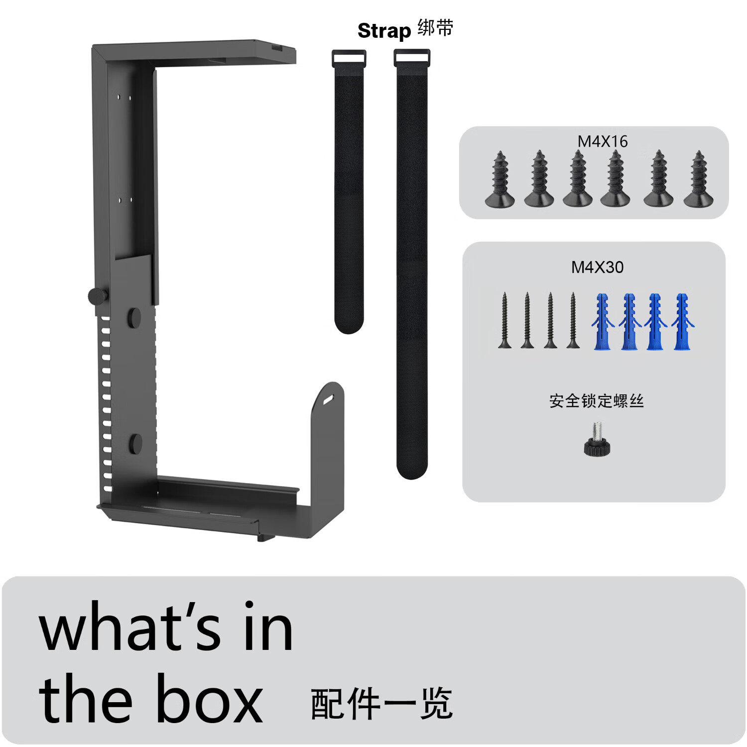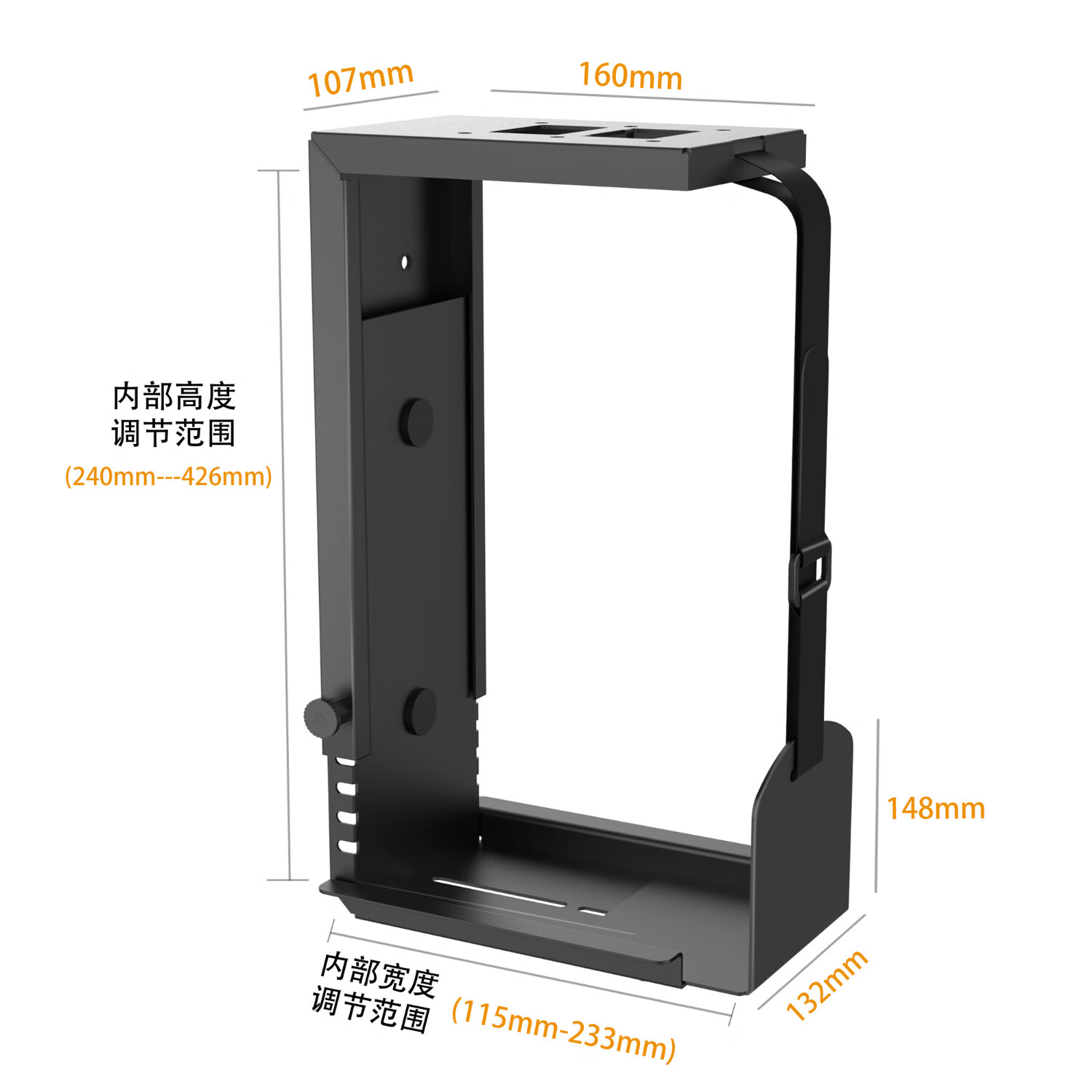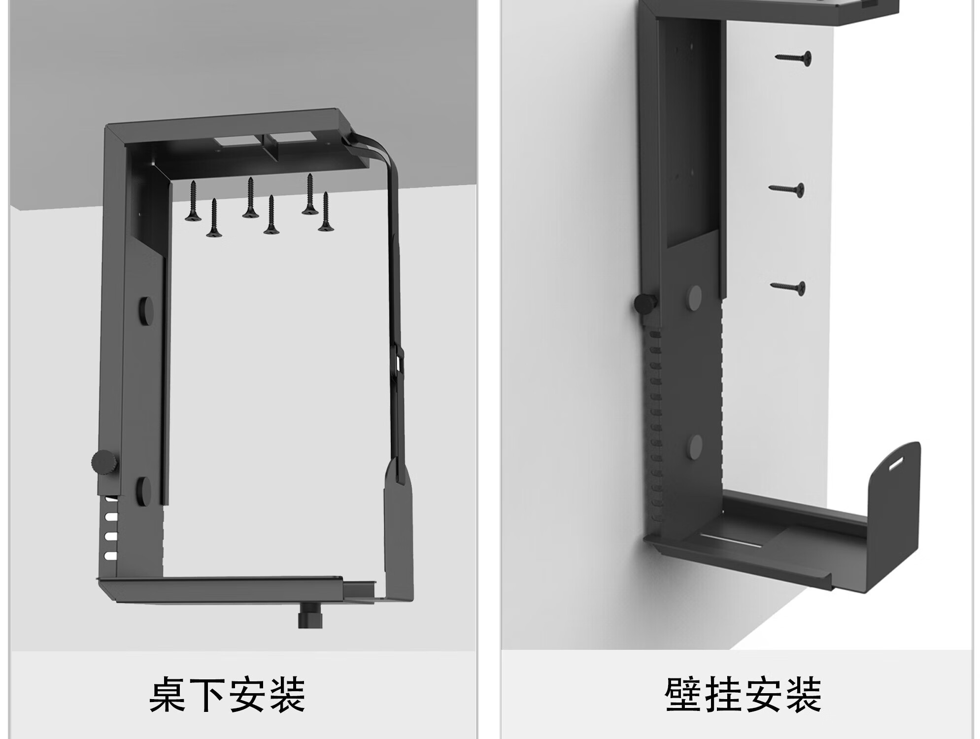 美易支台式电脑主机托架可升降调节收纳金属支架节约空间桌下中小型电脑壁挂两用