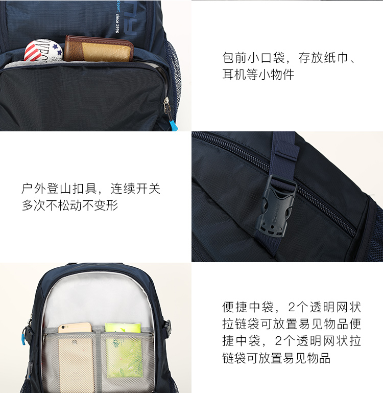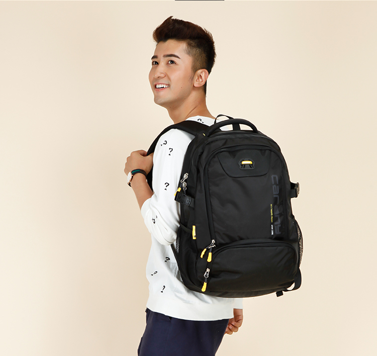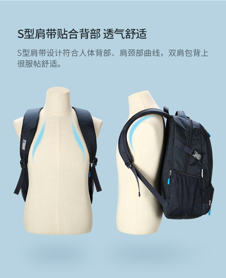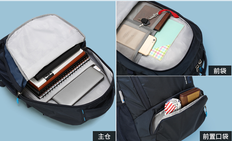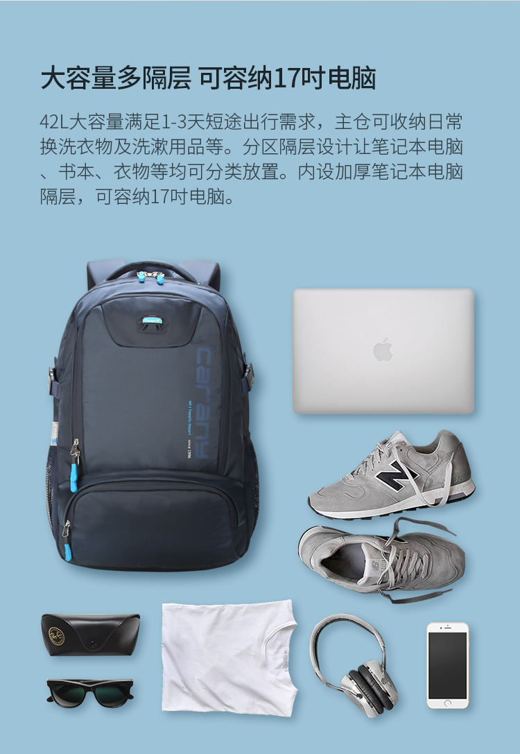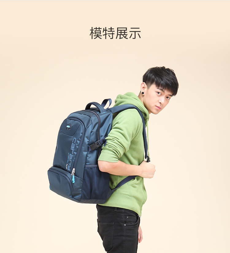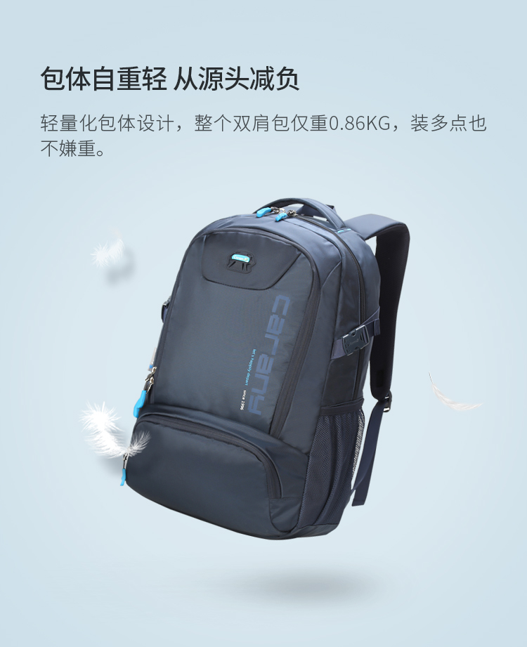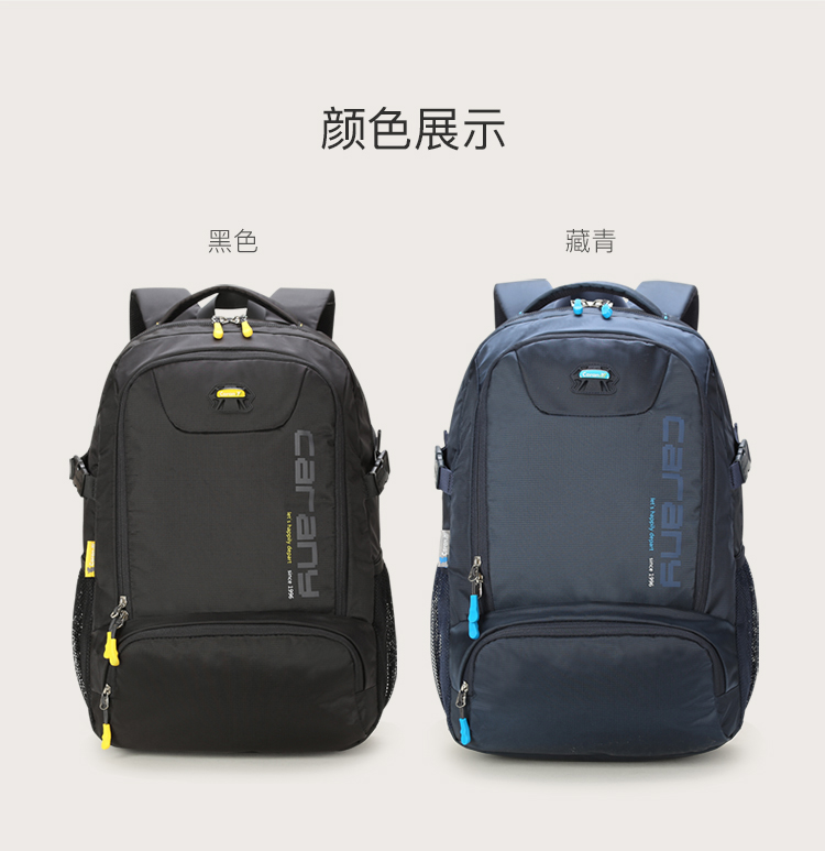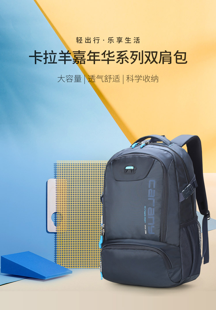 卡拉羊休闲双肩背包电脑包男包大中学生书包韩版潮大容量旅行登山包 藏青